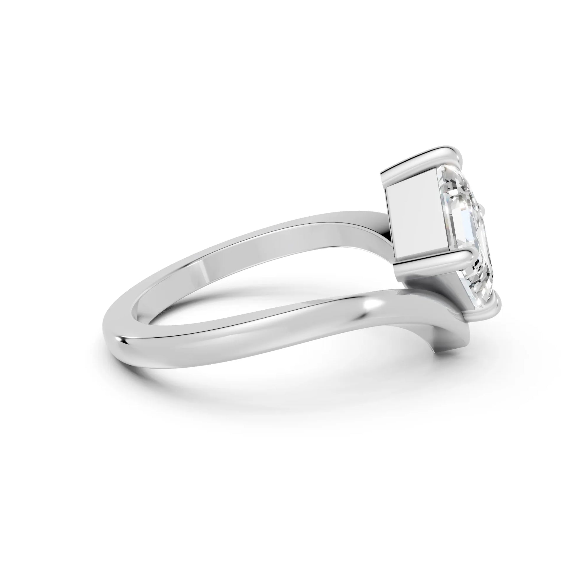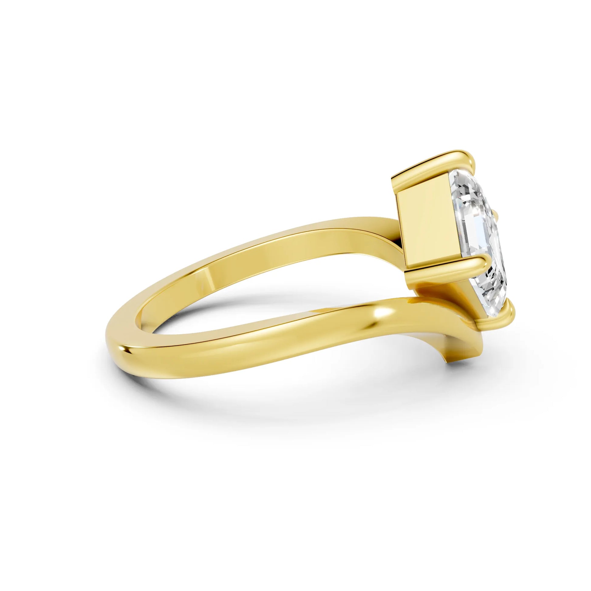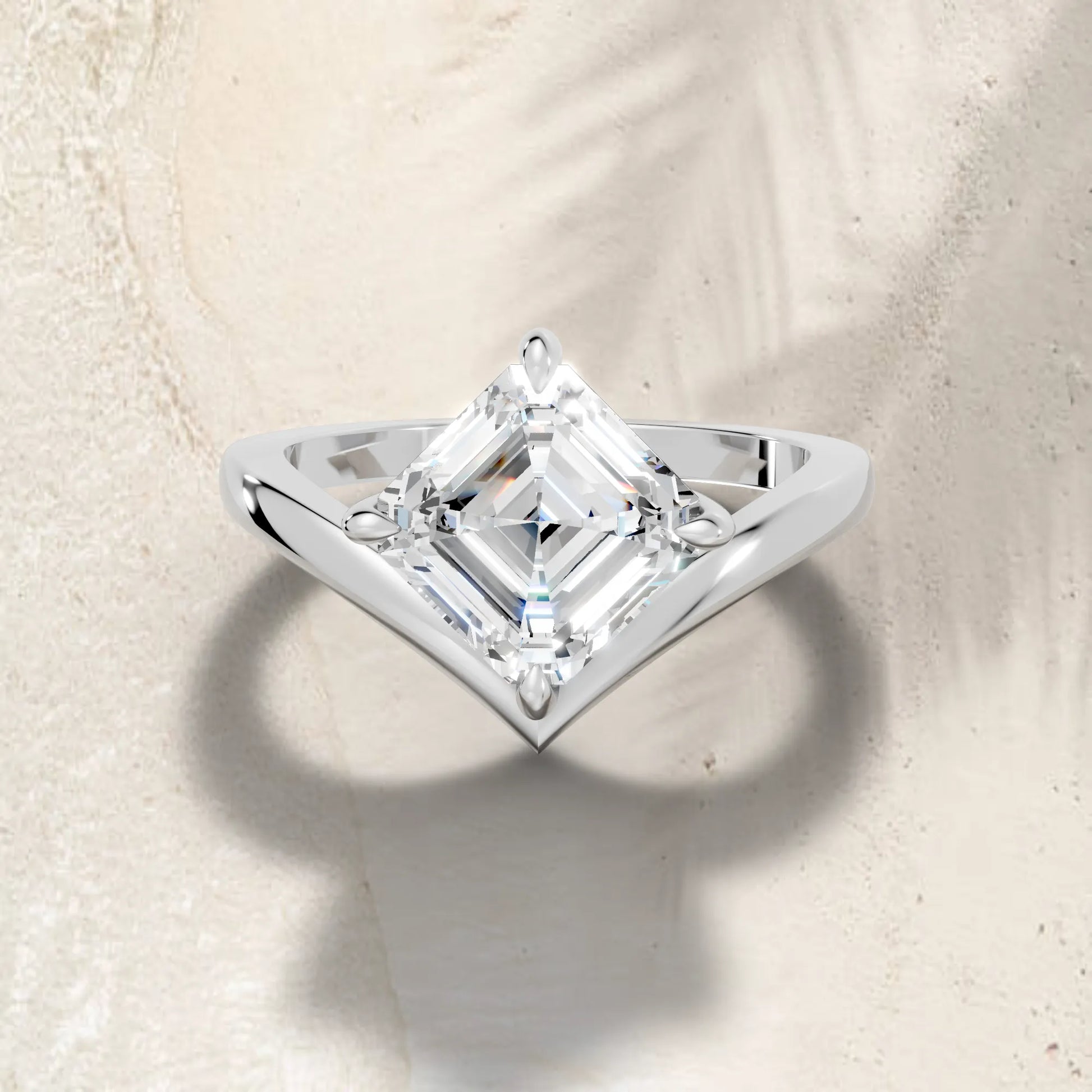 This engagement ring, crafted in solid 14k gold, showcases a captivating Asscher cut lab-grown diamond in a refined V-shaped design. A timeless piece that symbolizes unity, brilliance, and enduring love.