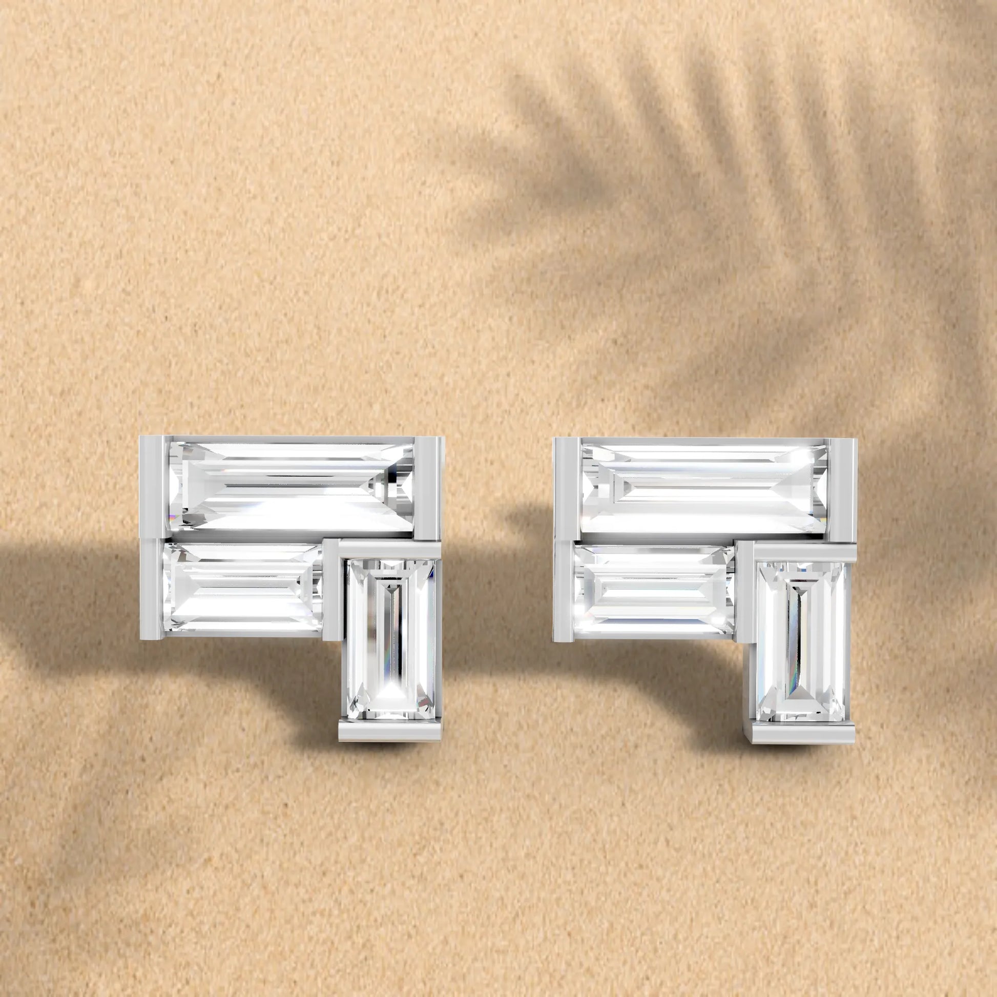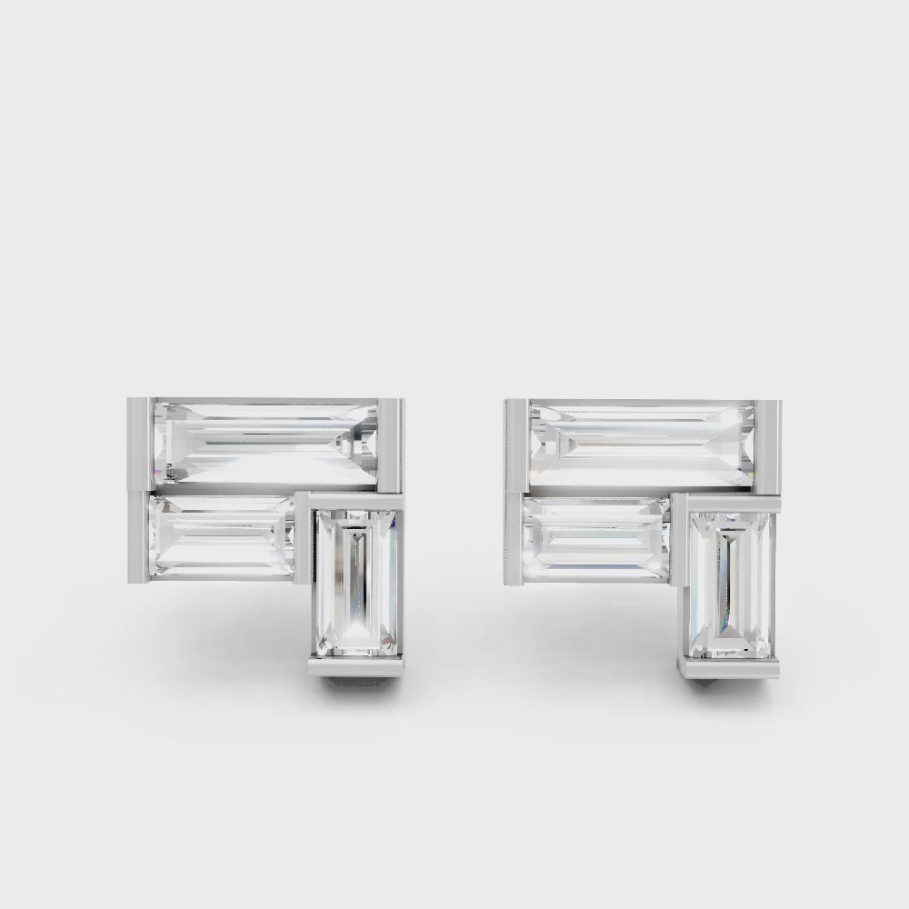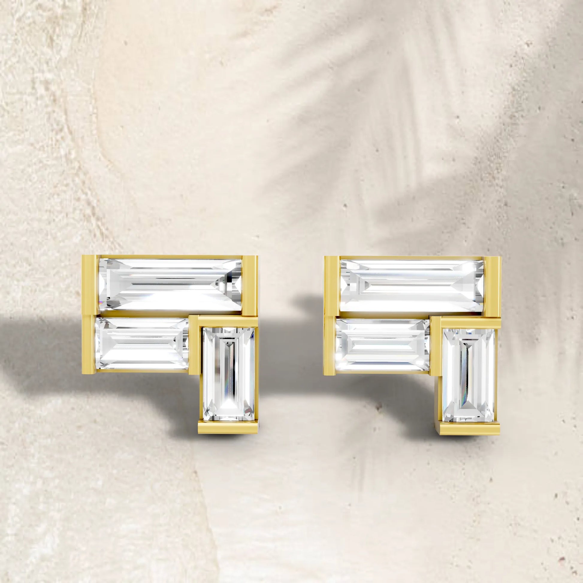 Crafted in solid 14k gold, this stud earring features baguette cut lab-grown diamonds arranged in a sleek corner cluster design. A modern geometric style that adds radiant sparkle with contemporary edge.