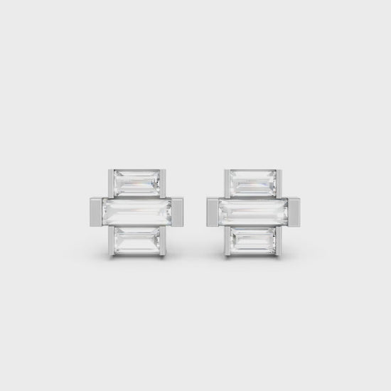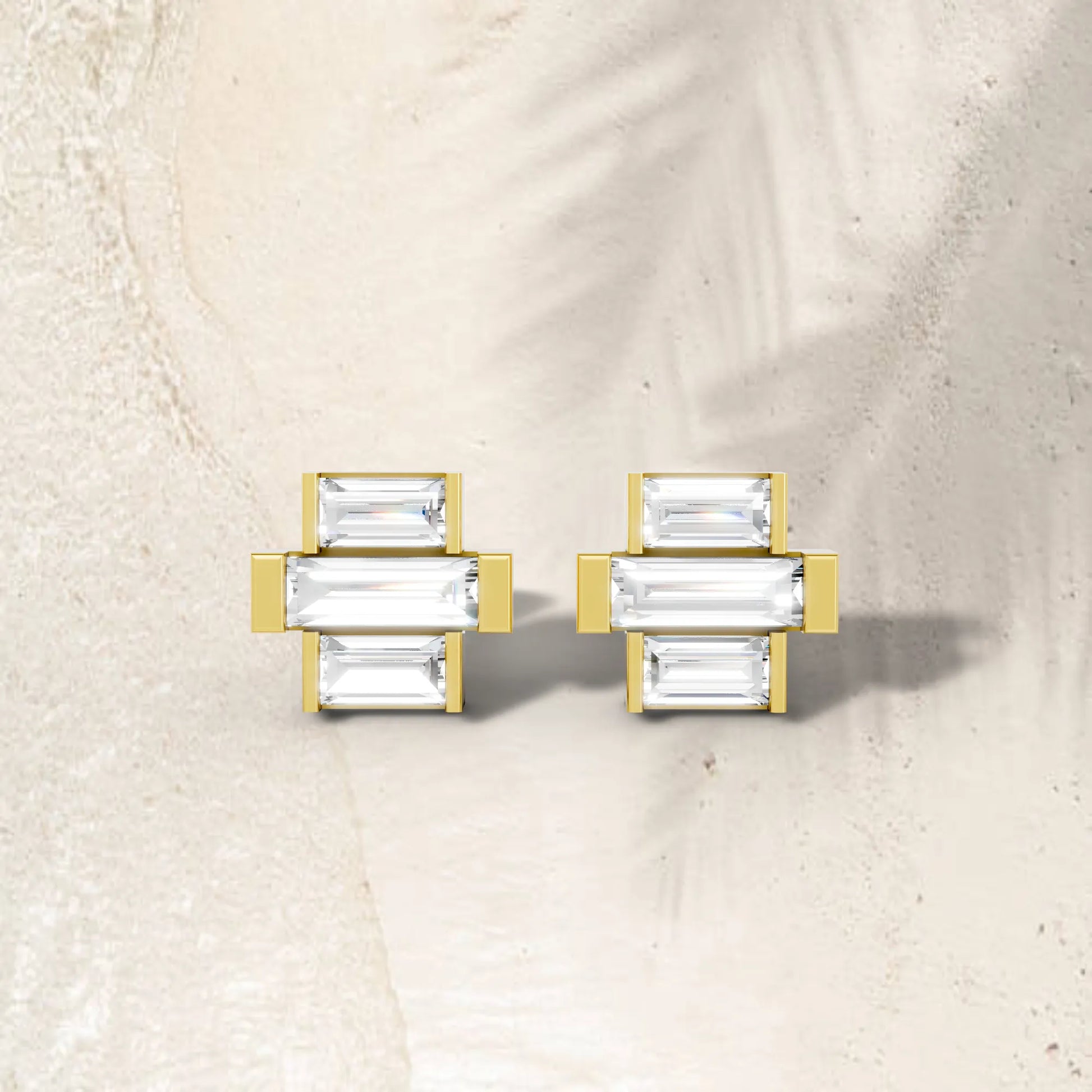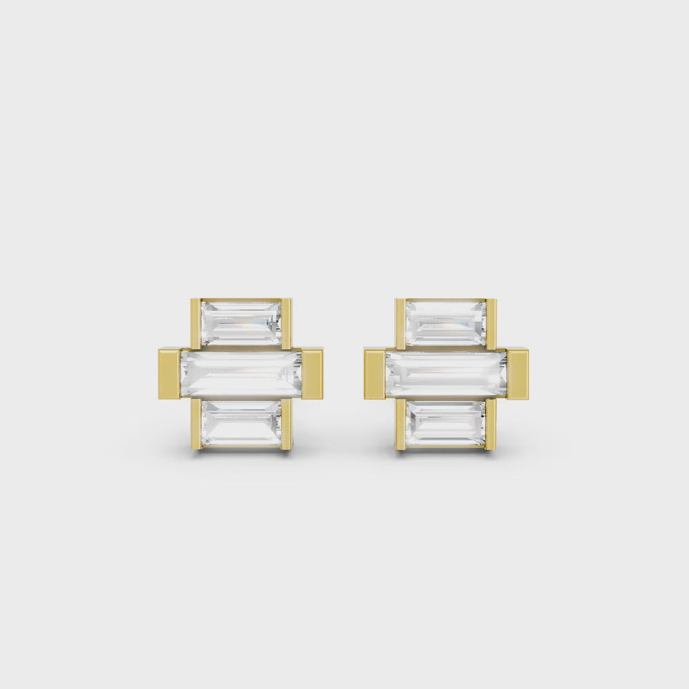 Crafted in solid 14k gold, this stud earring features baguette cut lab-grown diamonds arranged in a radiant cross cluster design. A meaningful piece that blends modern geometry with timeless sparkle and faith-inspired elegance.