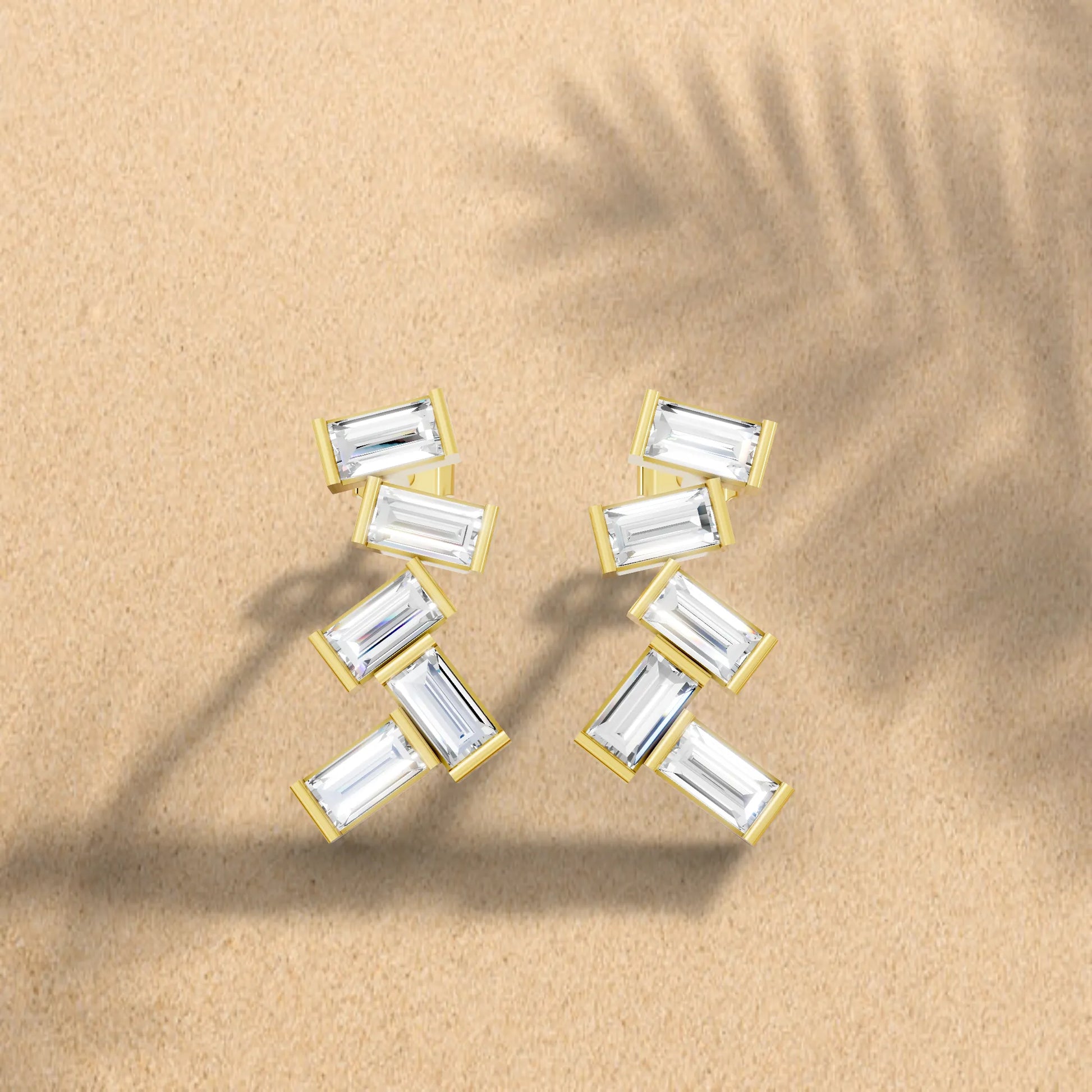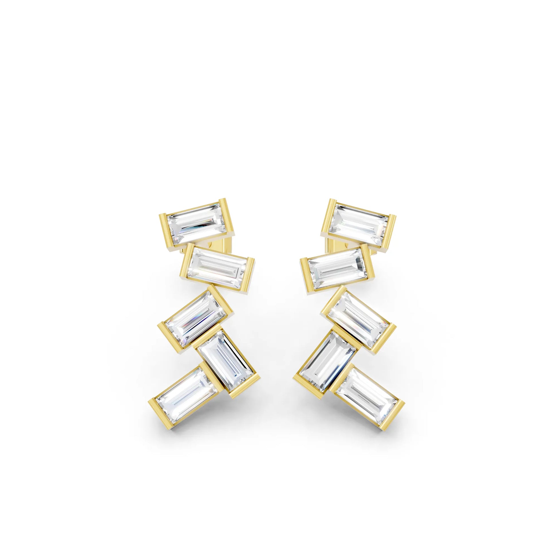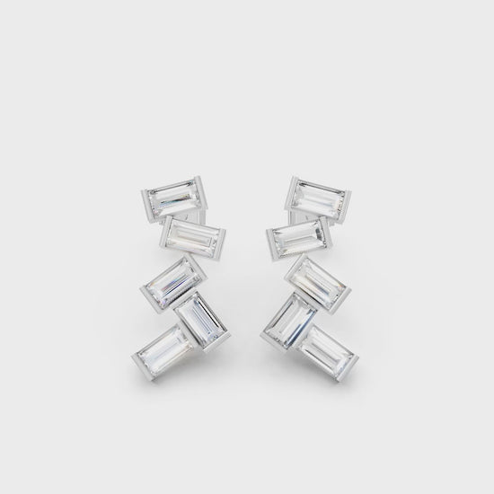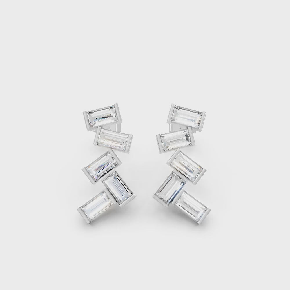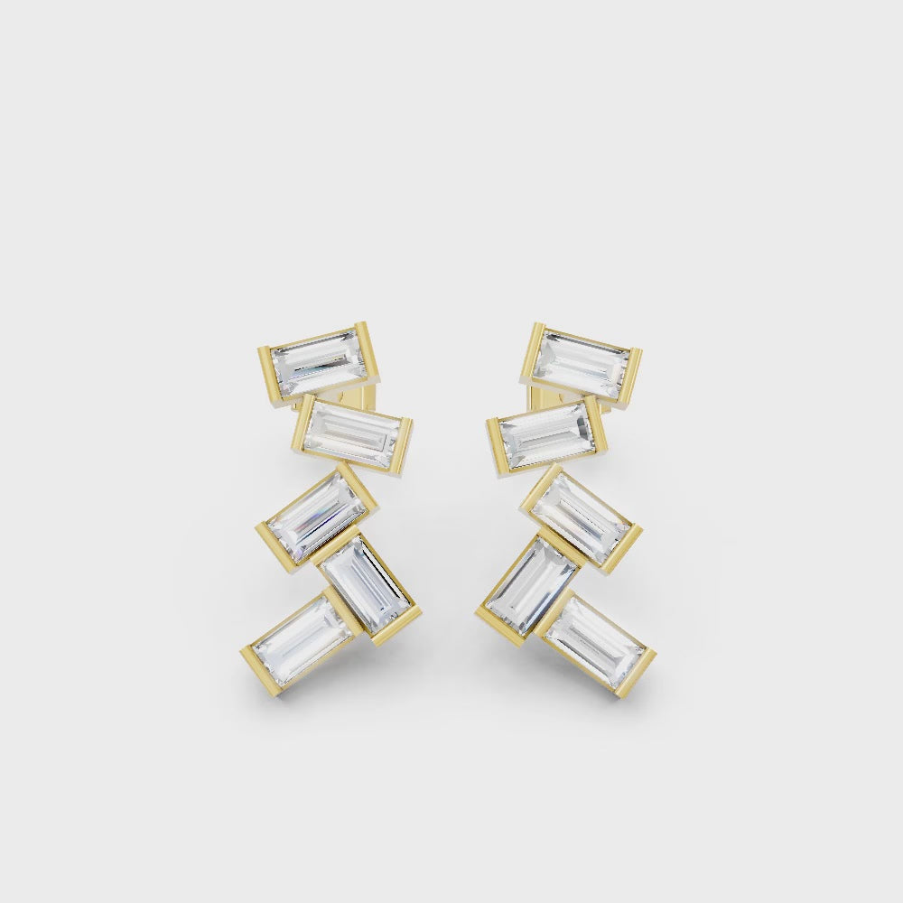 Crafted in solid 14k gold, this stud earring features baguette cut lab-grown diamonds arranged in a zig zag cluster drop design. A bold and modern style that adds geometric brilliance with radiant sparkle.