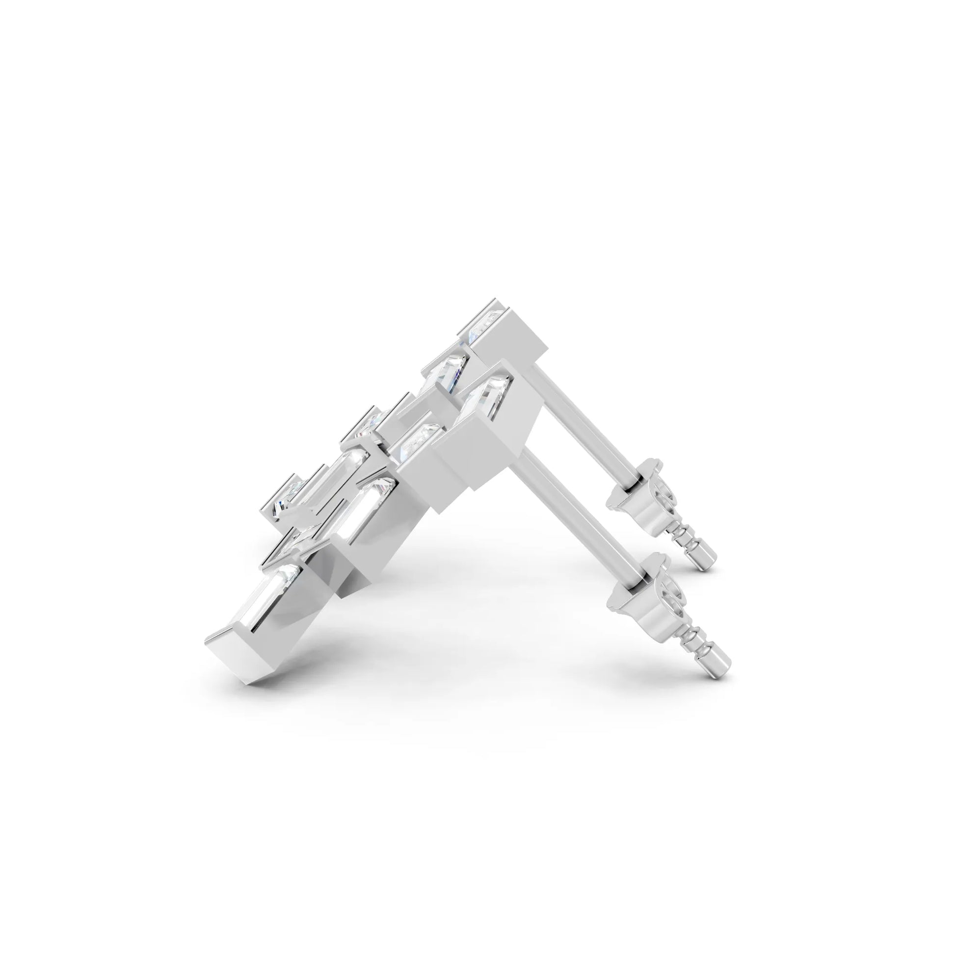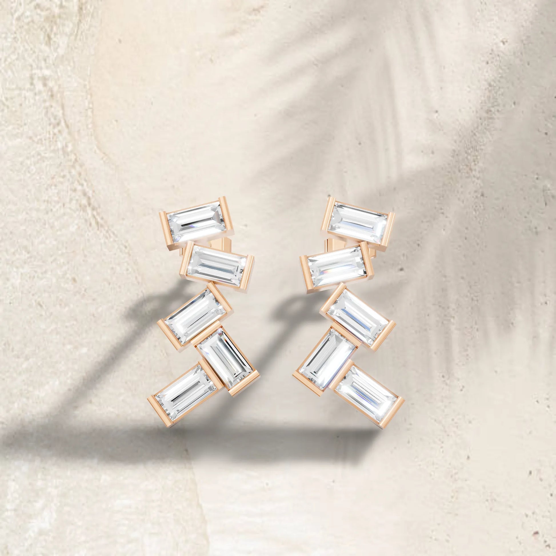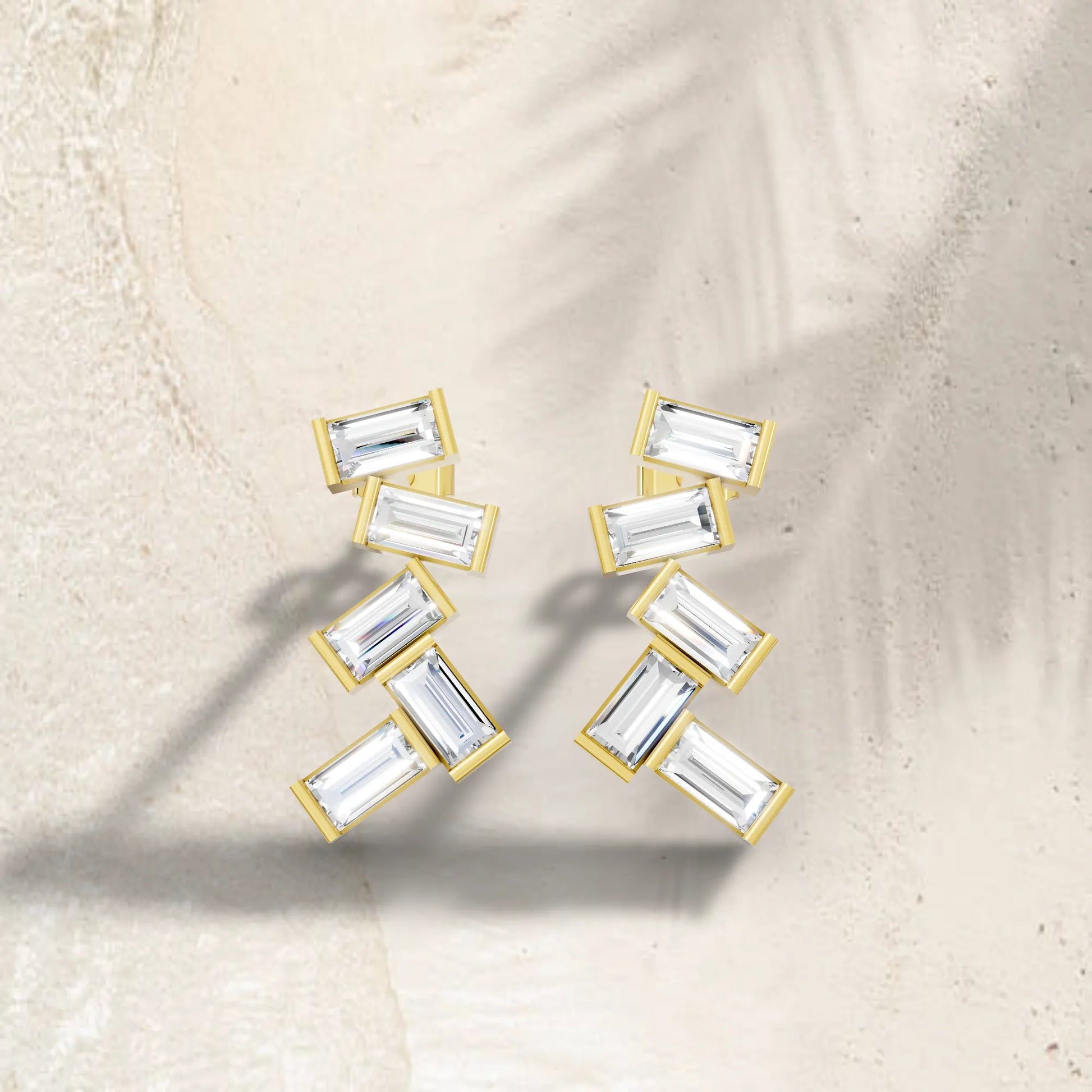 Crafted in solid 14k gold, this stud earring features baguette cut lab-grown diamonds arranged in a zig zag cluster drop design. A bold and modern style that adds geometric brilliance with radiant sparkle.