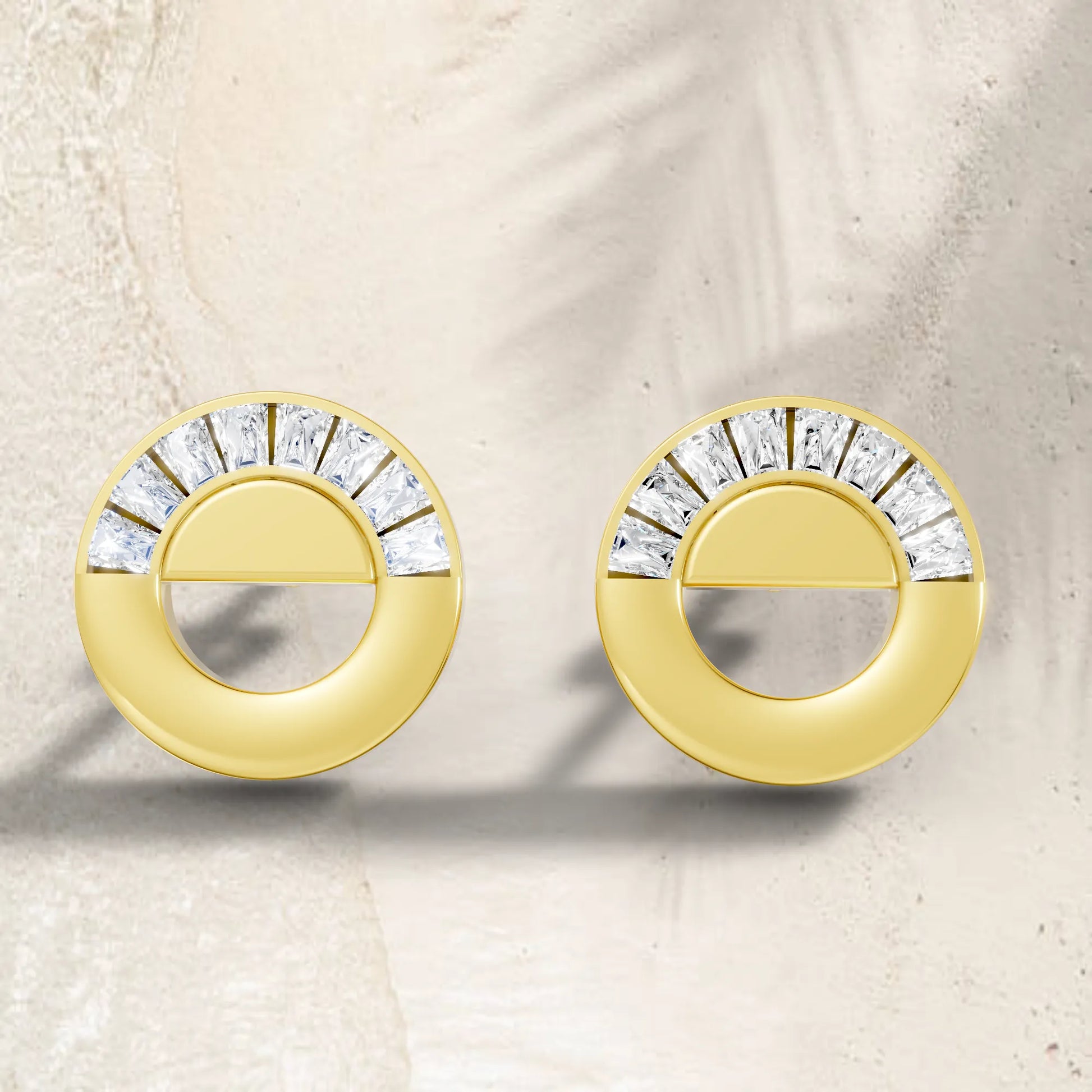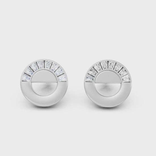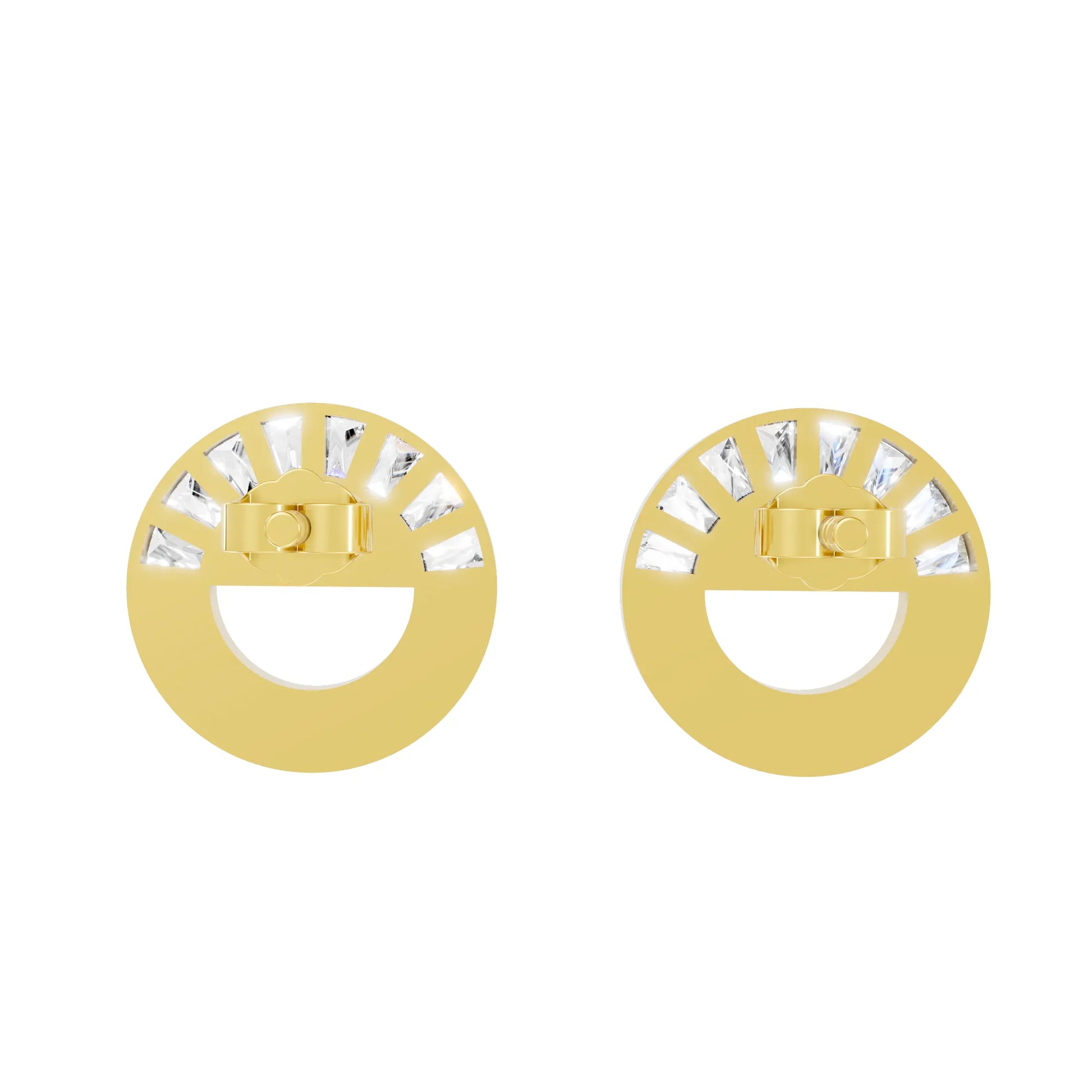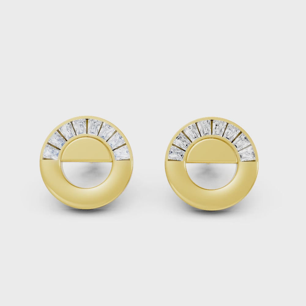 Crafted in solid 14k gold, this stud earring features baguette cut lab-grown diamonds arranged in a radiant full moon halo. A celestial-inspired design that adds luminous sparkle and modern elegance to any look.