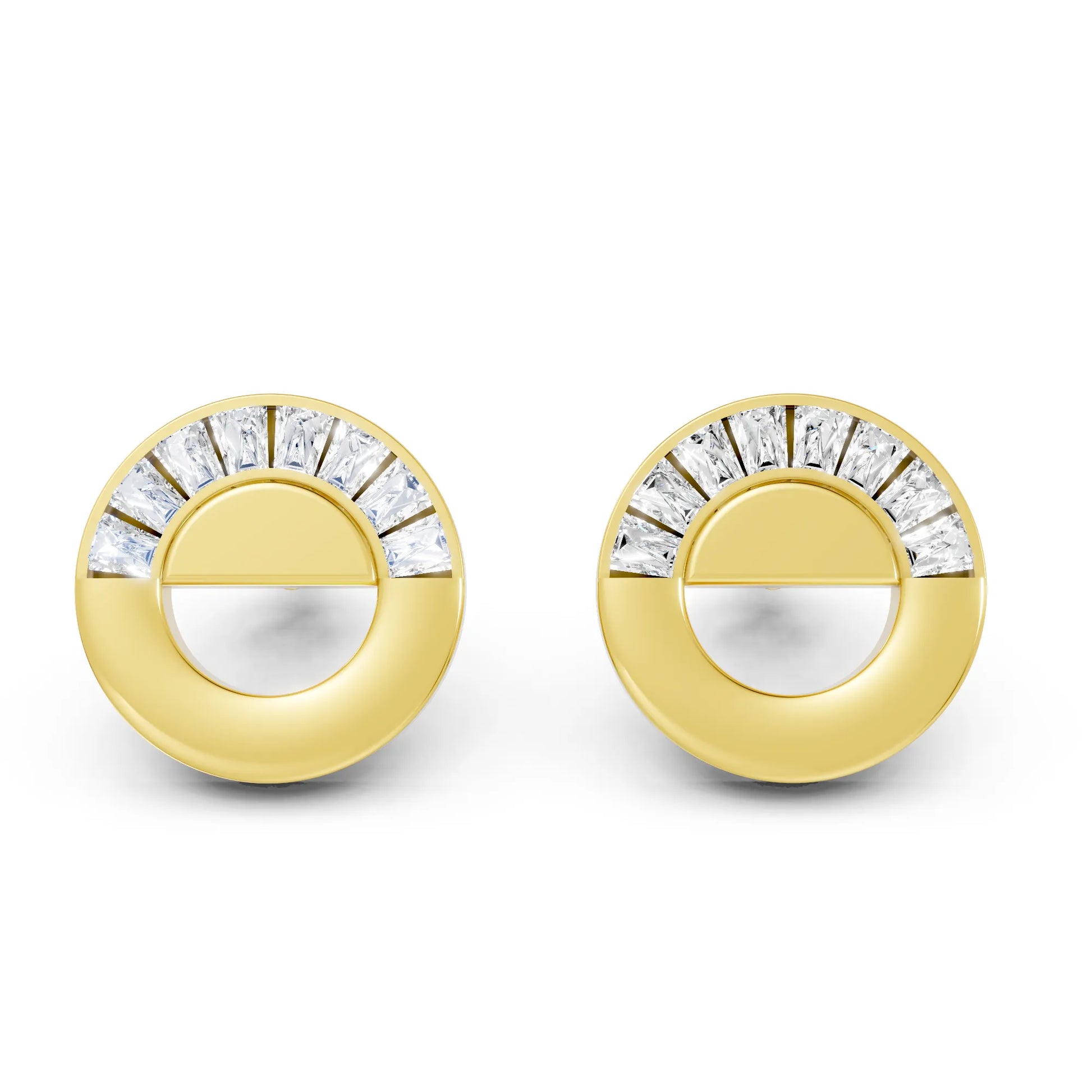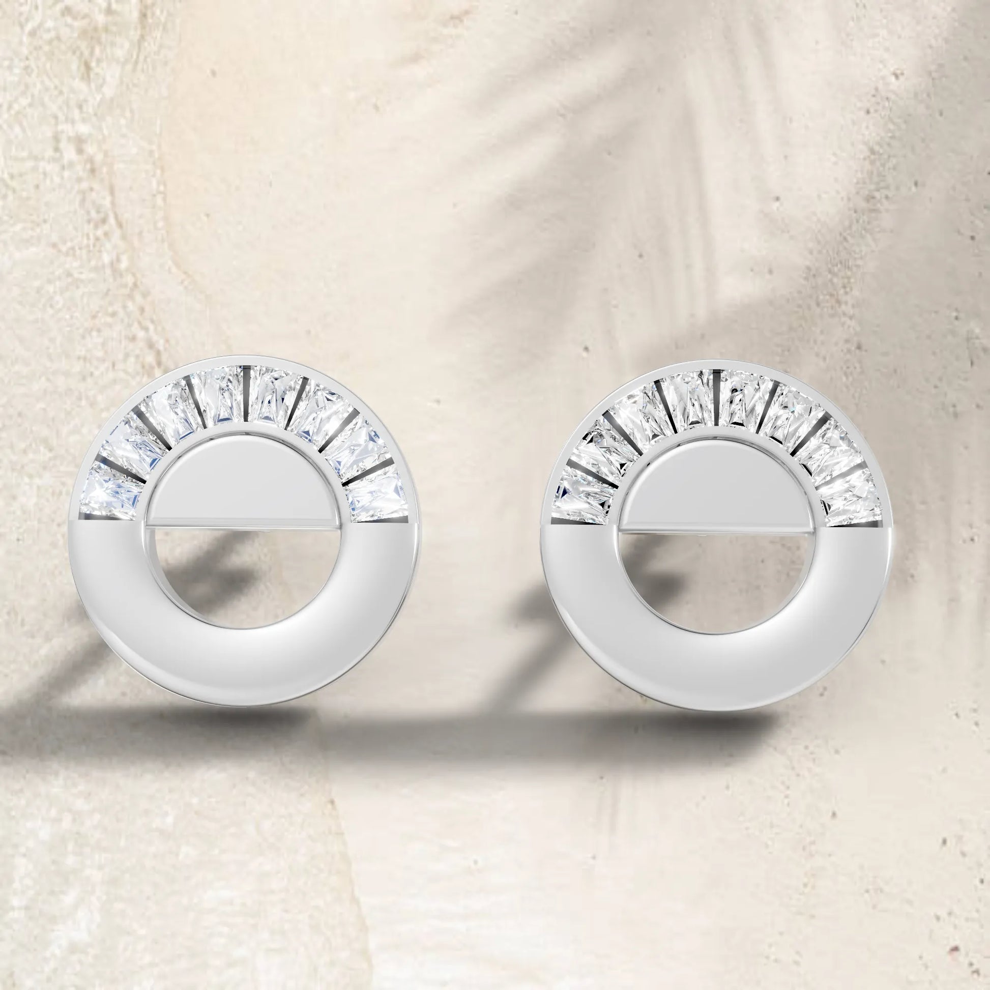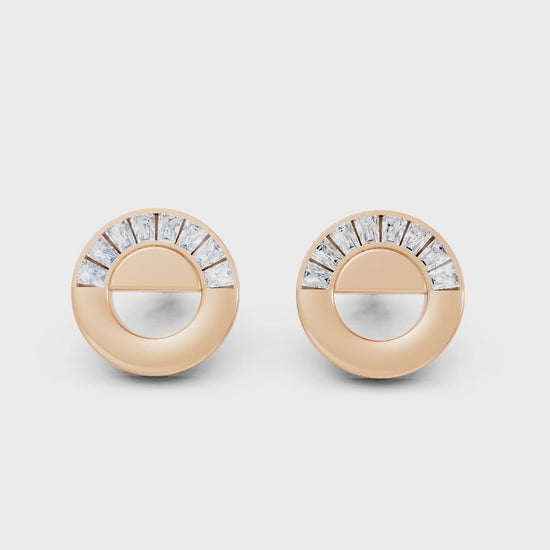 Crafted in solid 14k gold, this stud earring features baguette cut lab-grown diamonds arranged in a radiant full moon halo. A celestial-inspired design that adds luminous sparkle and modern elegance to any look.