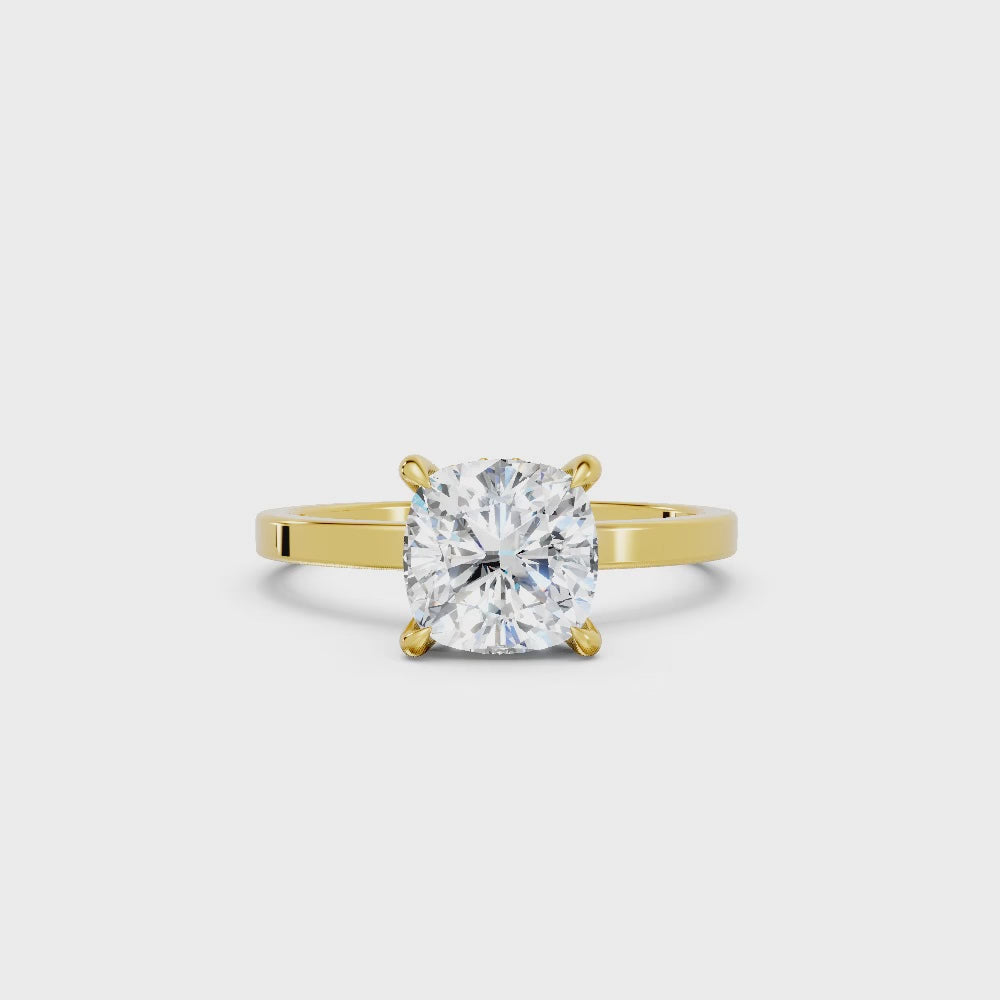 Celebrate your love with this timeless cushion cut lab-grown diamond ring, crafted in solid 14k gold. A hidden halo adds extra sparkle, while its ethical, eco-friendly design symbolizes everlasting beauty and commitment.