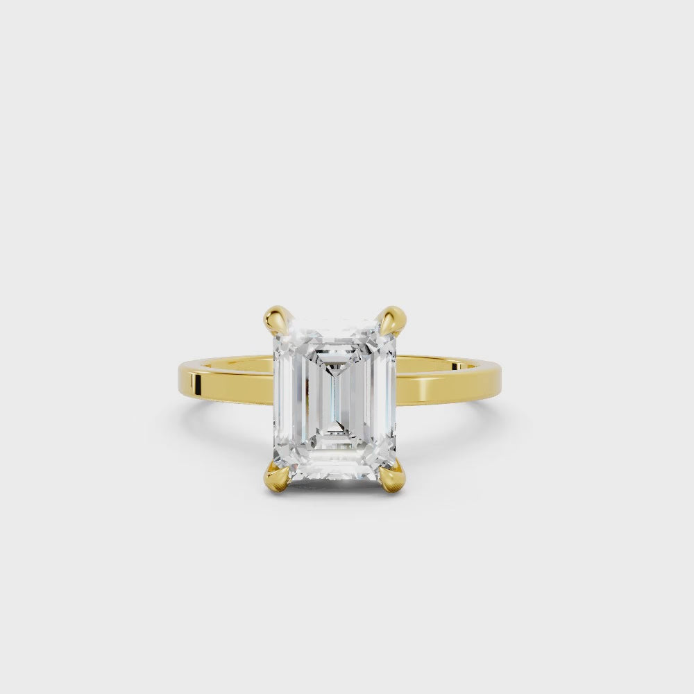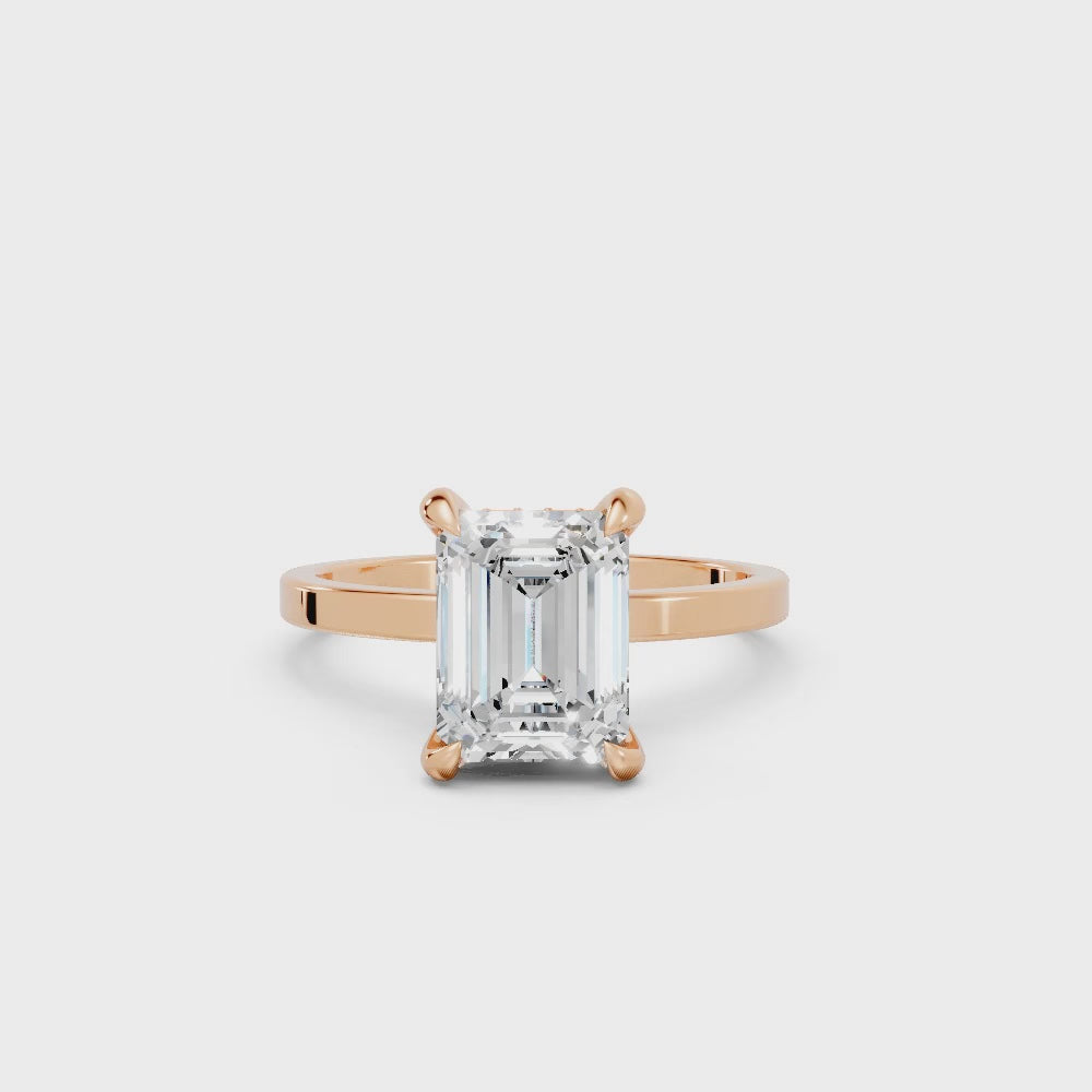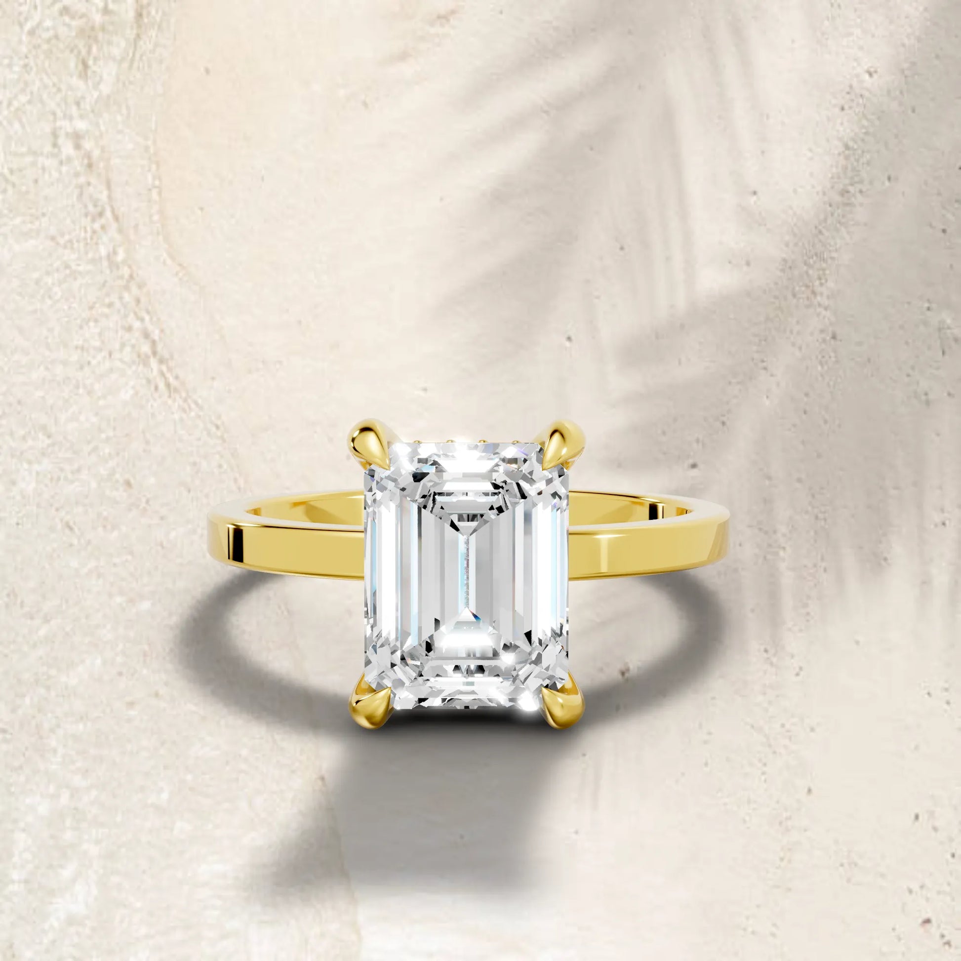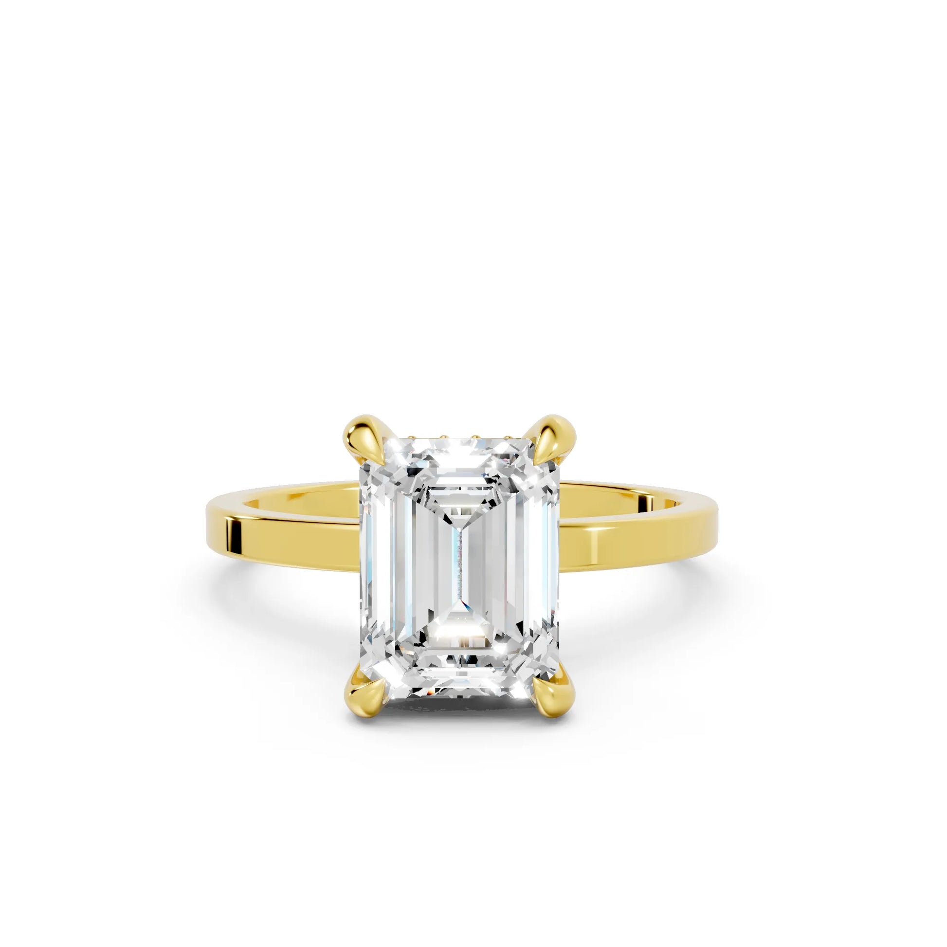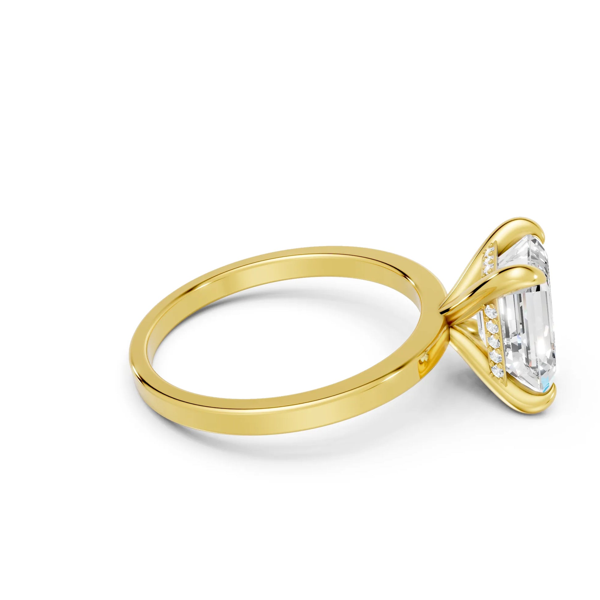 Elevate your love story with this emerald cut lab-grown diamond ring, crafted in solid 14k gold. A hidden halo adds subtle sparkle and elegance, creating a timeless symbol of commitment and love.