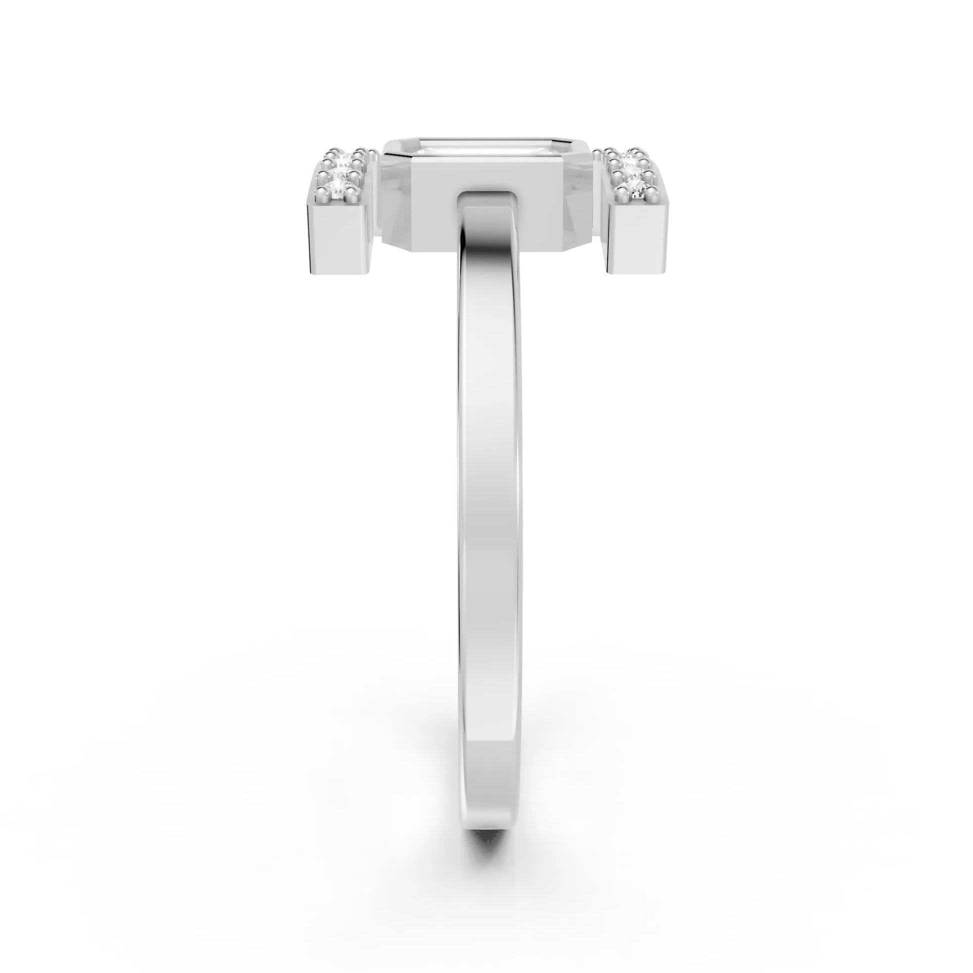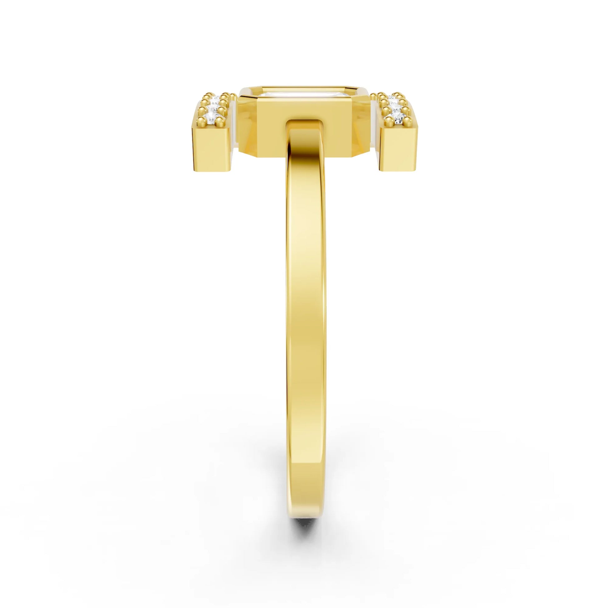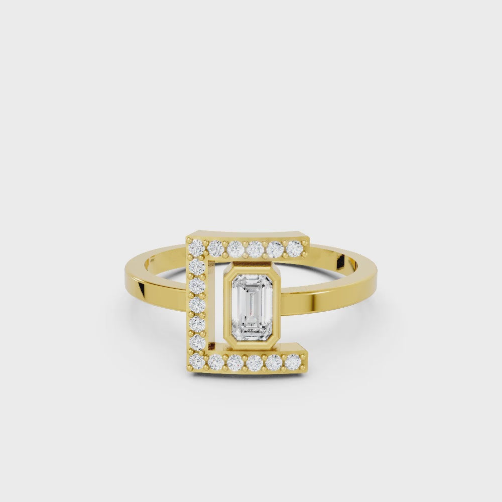 Crafted in solid 14k gold, this engagement ring showcases a sleek emerald cut lab-grown diamond in a refined bezel setting. Sparkling side accents add brilliance, blending modern elegance with timeless romance.