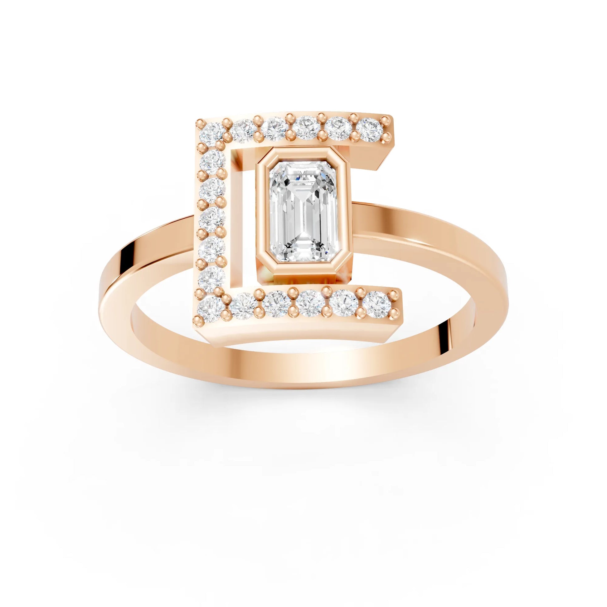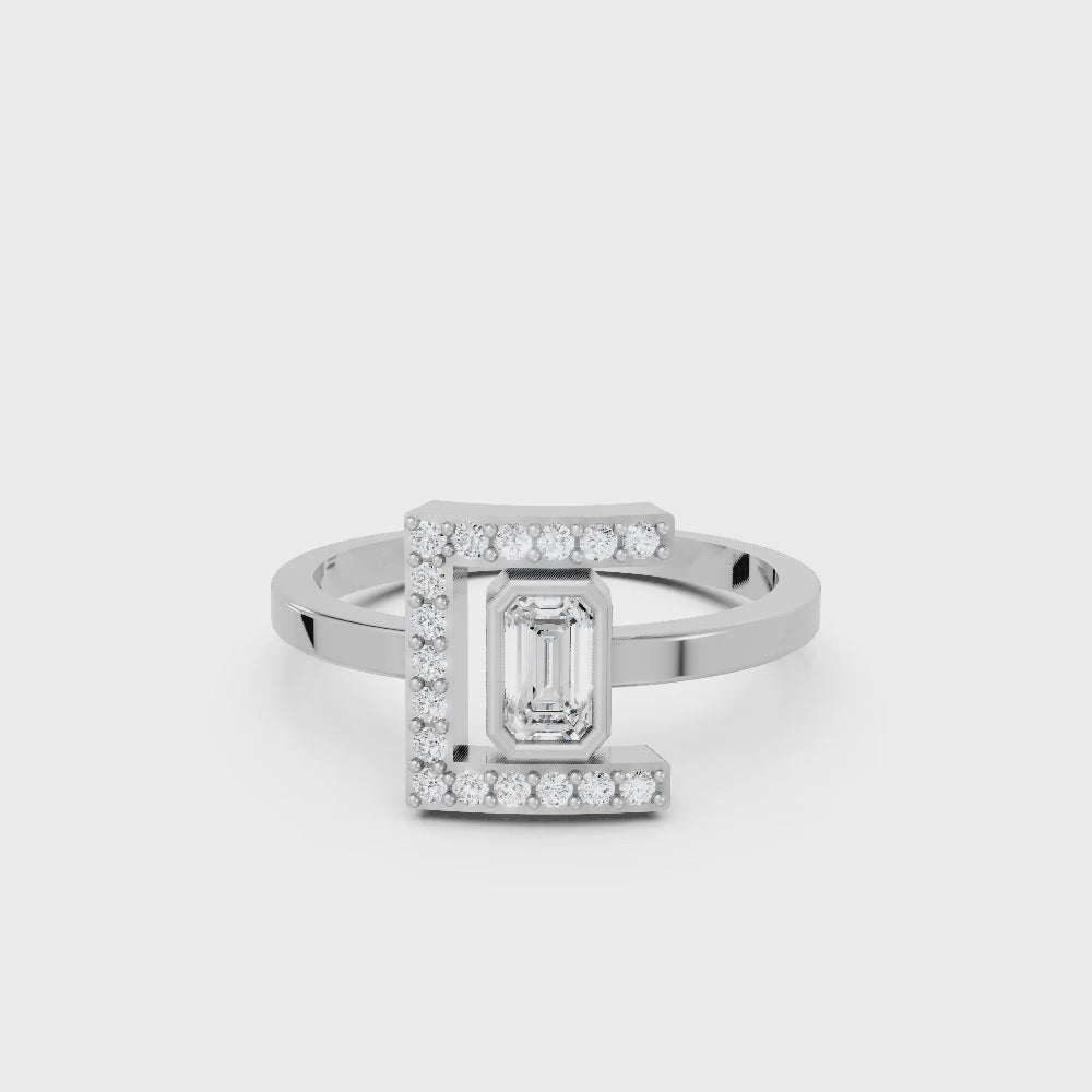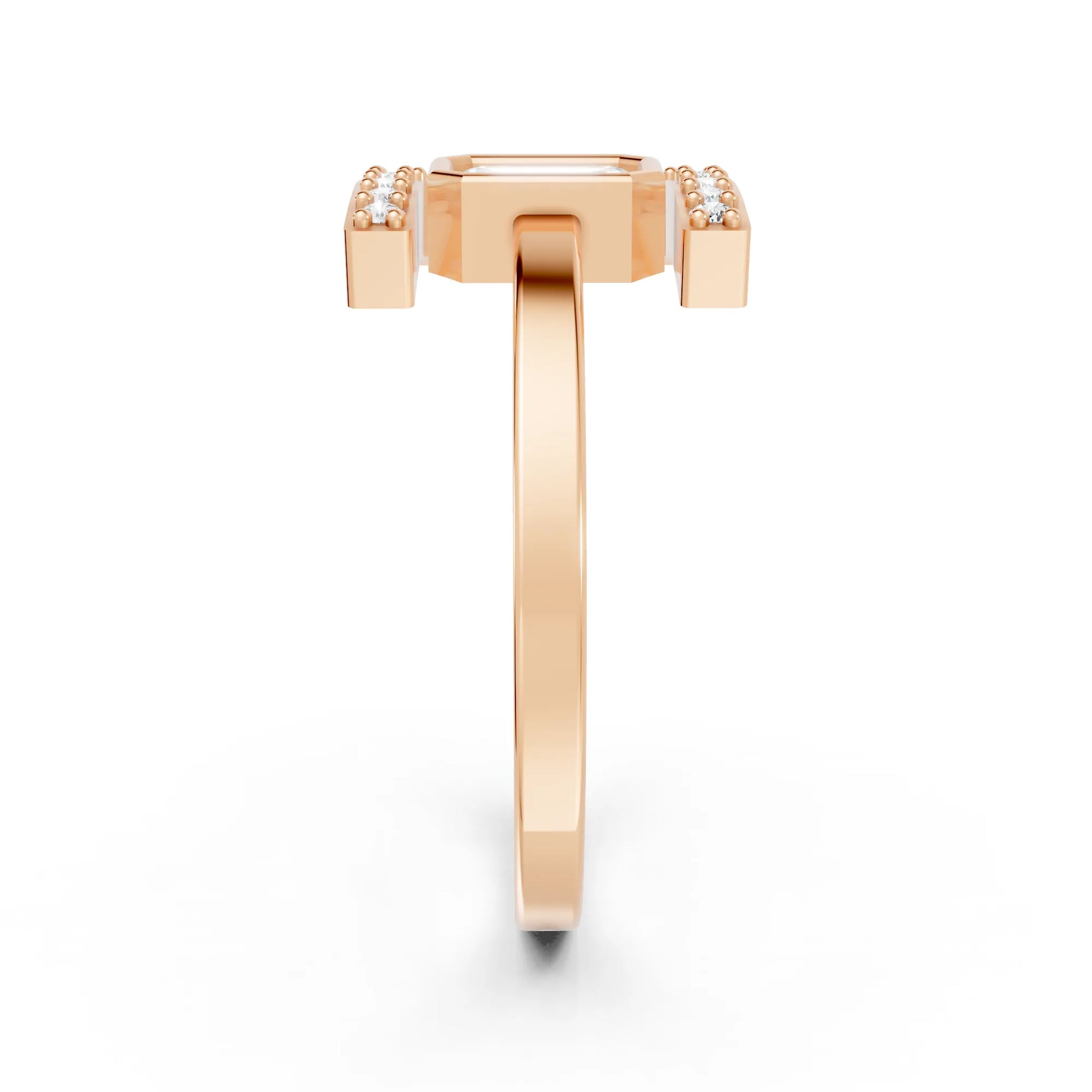 Crafted in solid 14k gold, this engagement ring showcases a sleek emerald cut lab-grown diamond in a refined bezel setting. Sparkling side accents add brilliance, blending modern elegance with timeless romance.