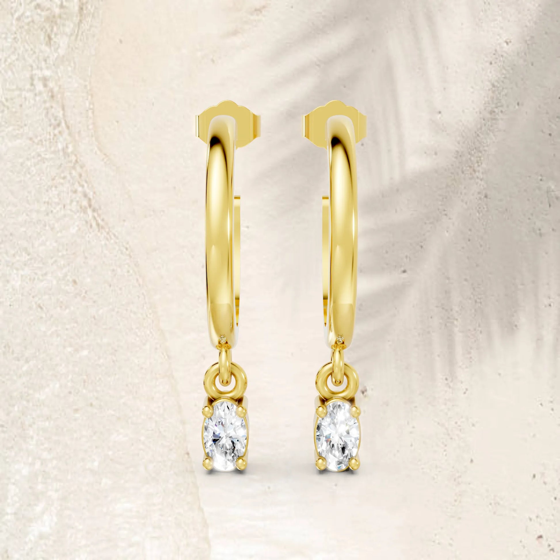 Crafted in solid 14k gold, this hoop earring showcases two princess cut lab-grown diamonds in sleek bezel settings. A chic twin-stone design that combines sharp brilliance with modern minimalism for everyday elegance.