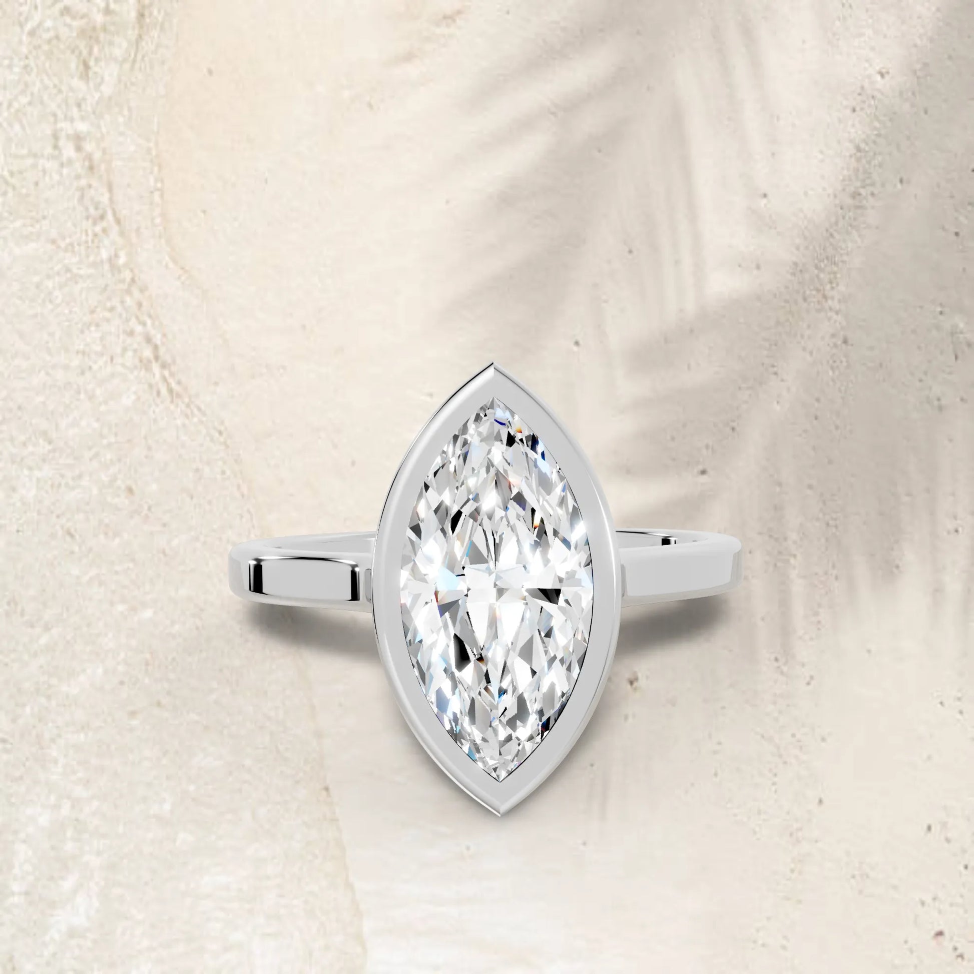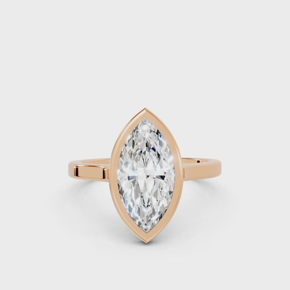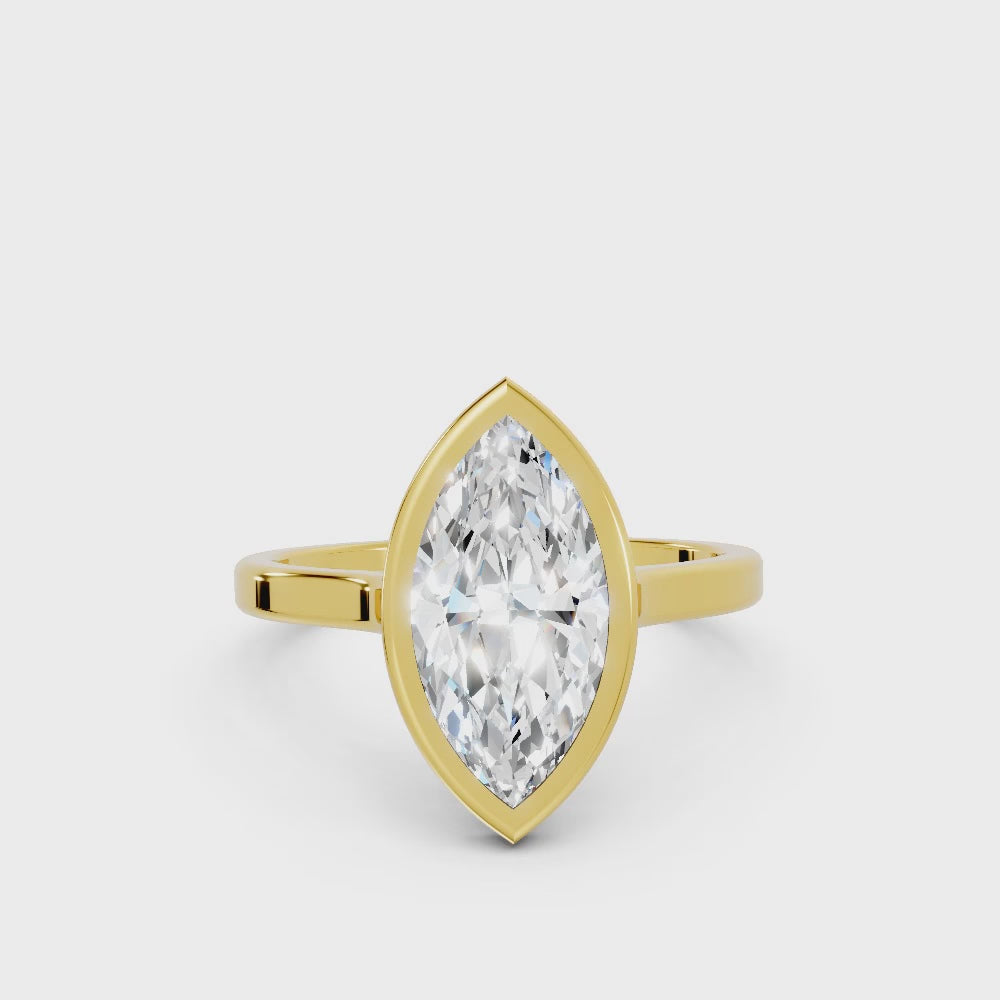 Crafted in solid 14k gold, this engagement ring features a graceful marquise cut lab-grown diamond set in a smooth bezel. A sleek and modern design that offers bold brilliance with timeless sophistication.