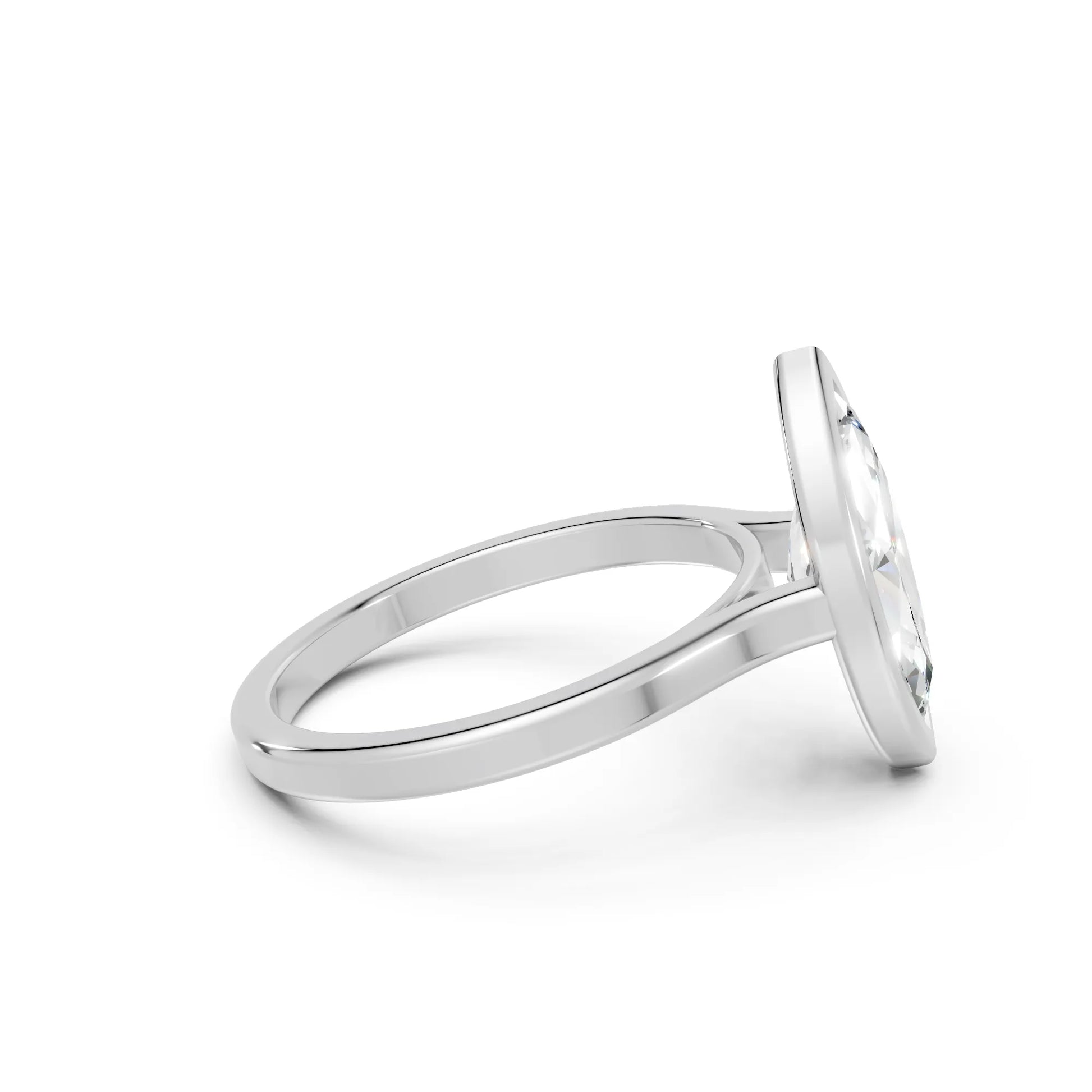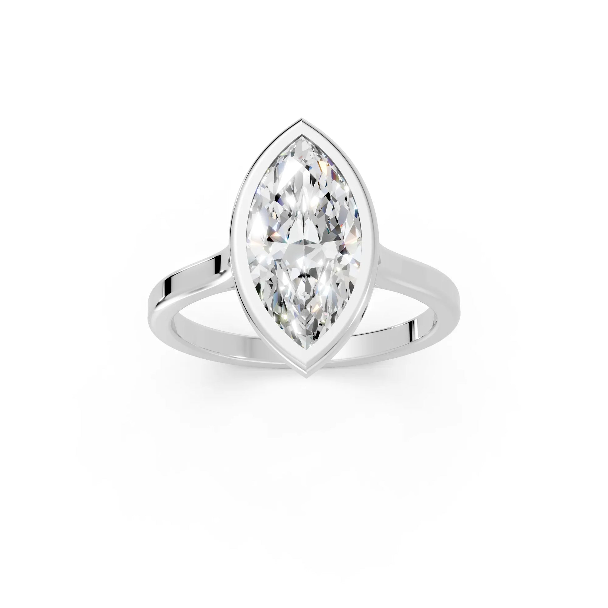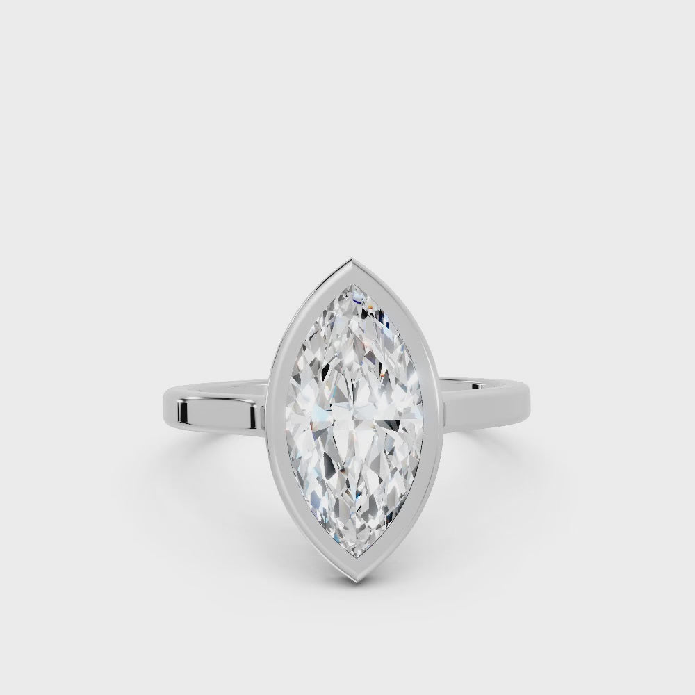 Crafted in solid 14k gold, this engagement ring features a graceful marquise cut lab-grown diamond set in a smooth bezel. A sleek and modern design that offers bold brilliance with timeless sophistication.