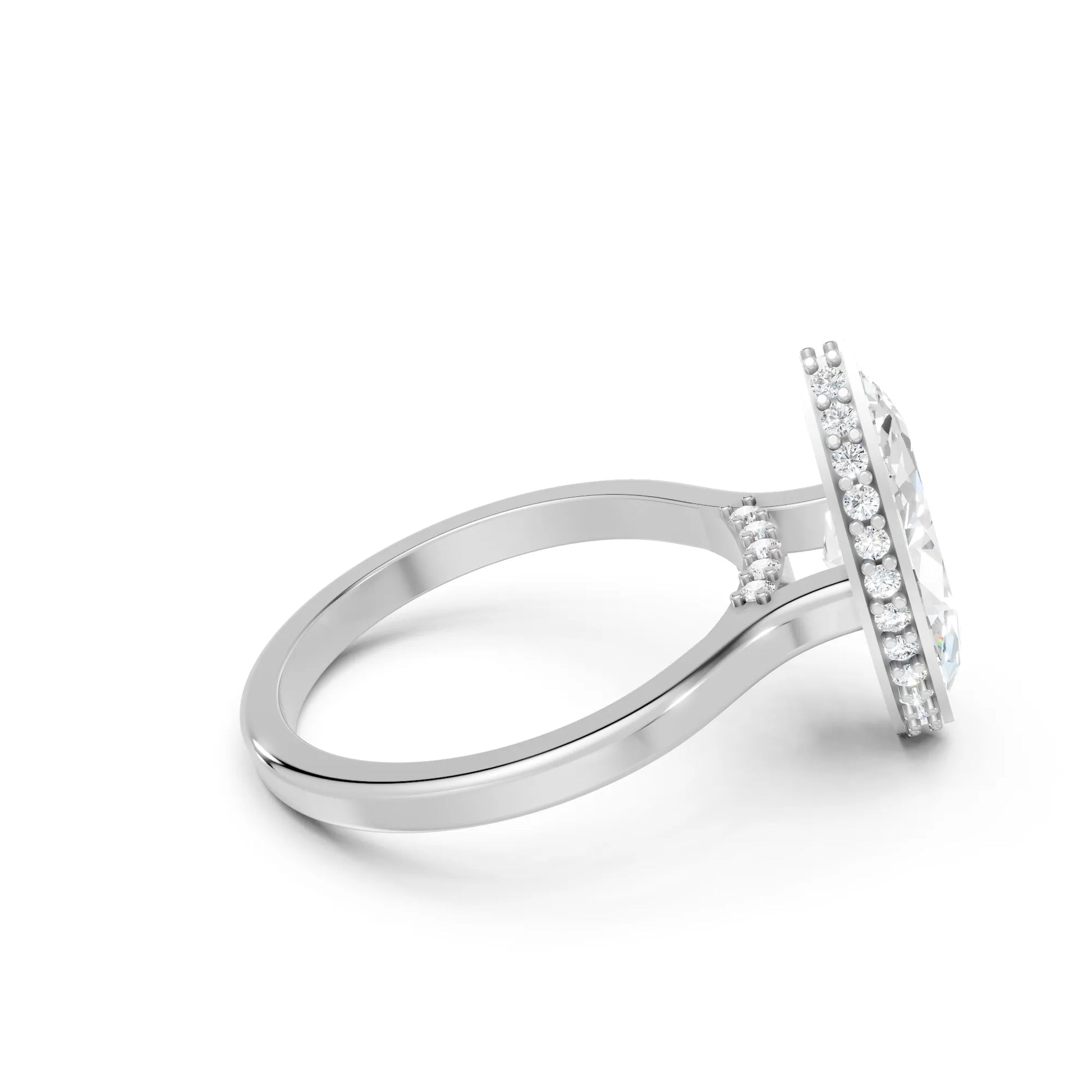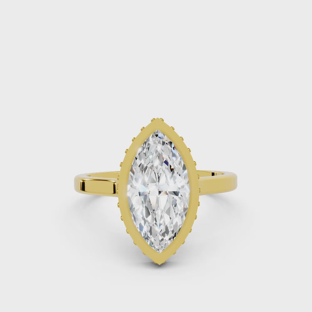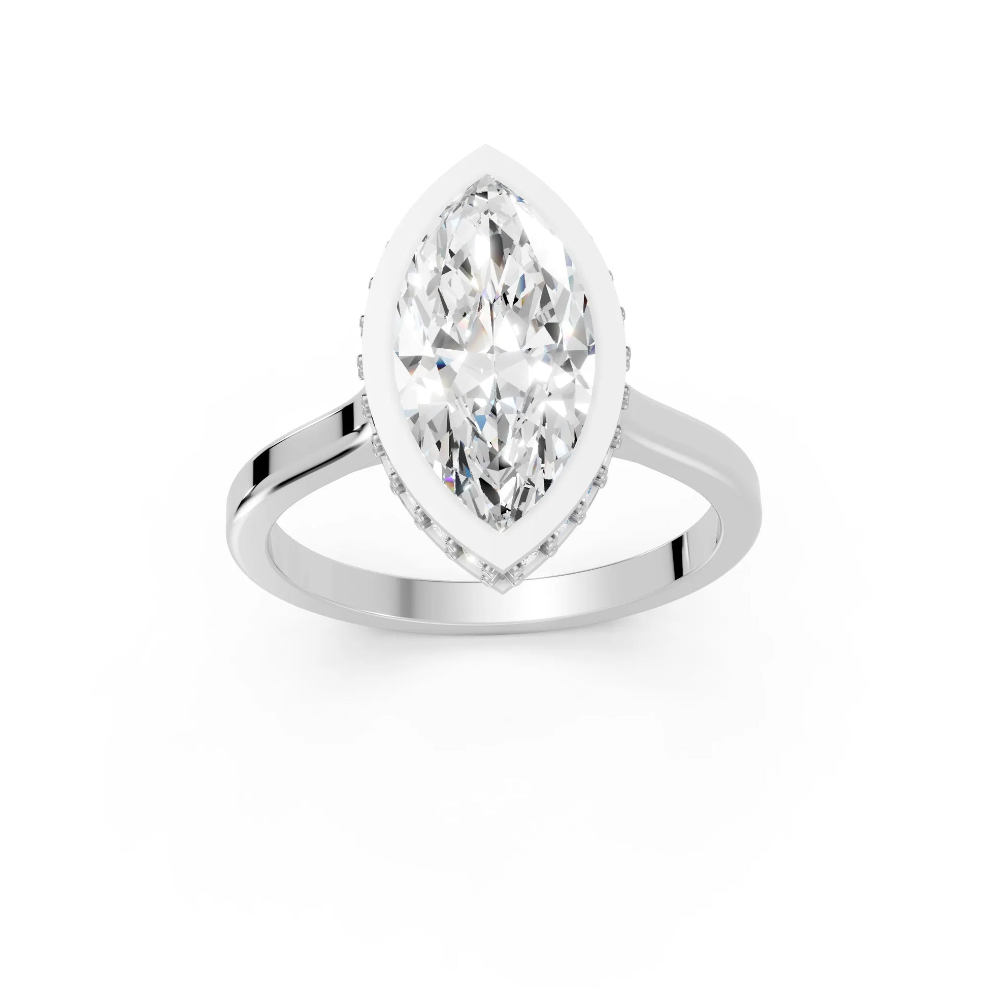 Crafted in solid 14k gold, this engagement ring showcases a graceful marquise cut lab-grown diamond in a smooth bezel setting. A hidden halo adds radiant sparkle, blending sleek modern style with timeless charm.