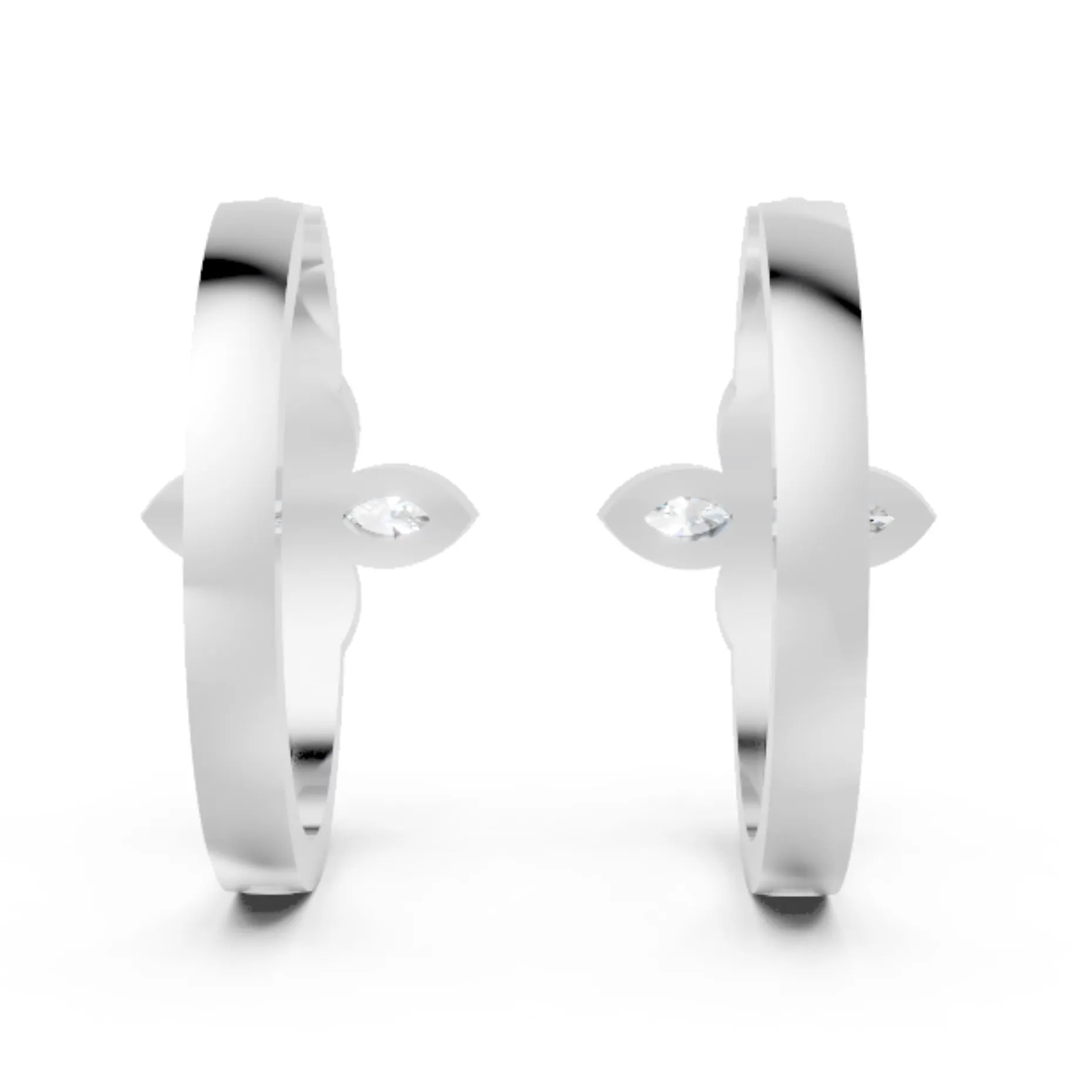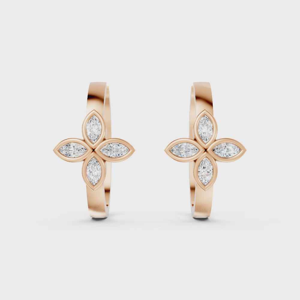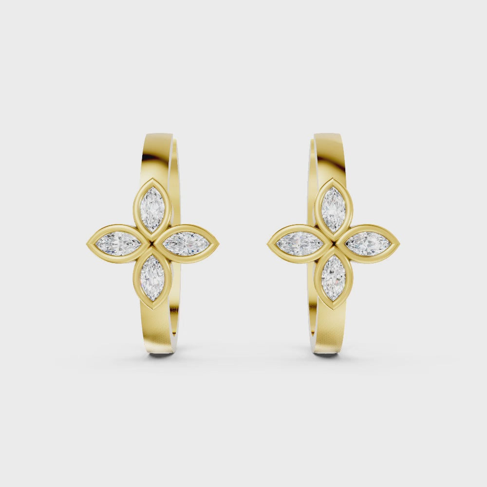 Crafted in solid 14k gold, this hoop earring features two marquise cut lab-grown diamonds in delicate floral bezel settings. A nature-inspired twin design that adds graceful sparkle with a modern touch.