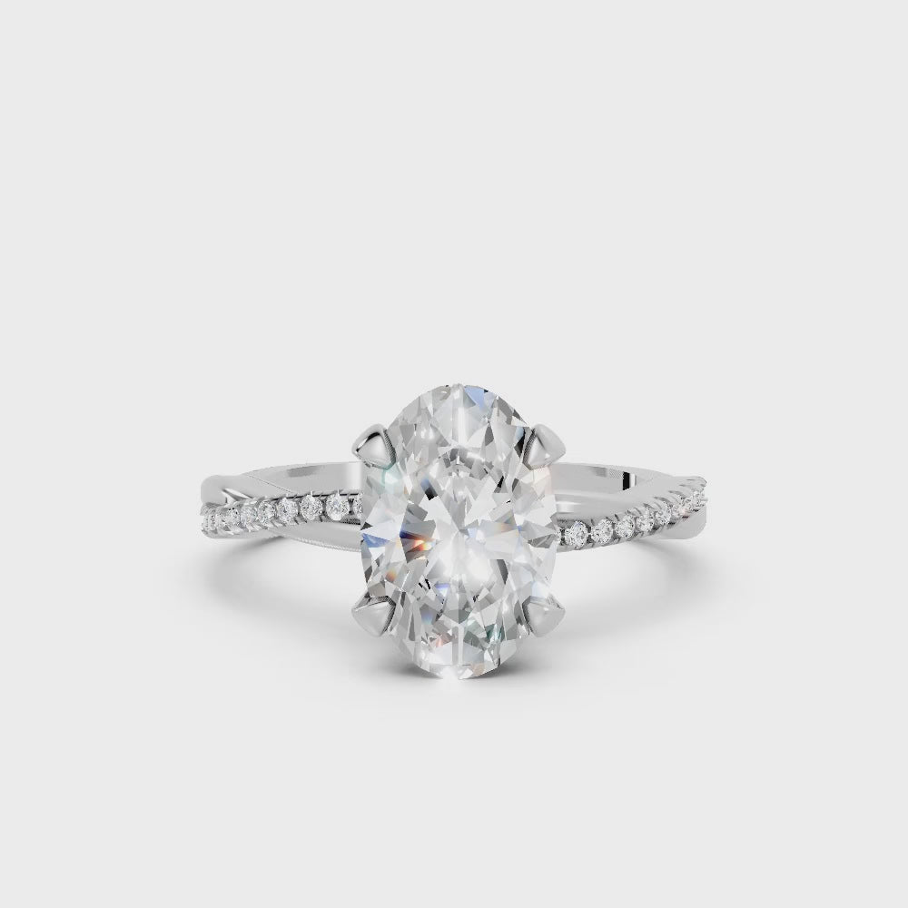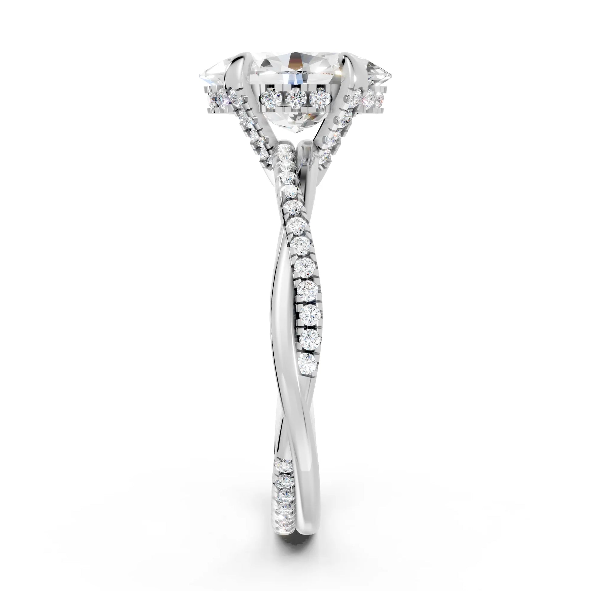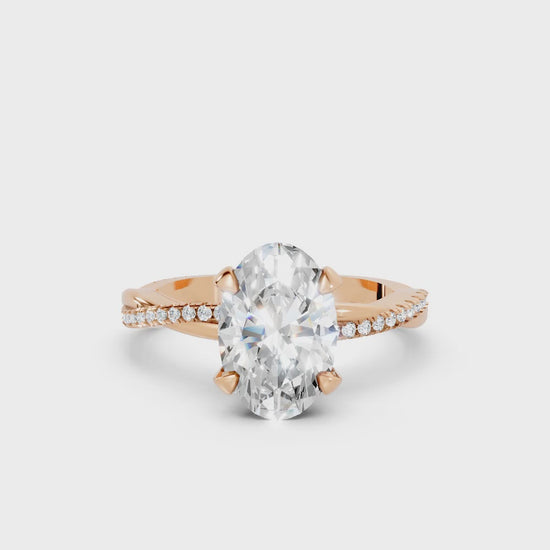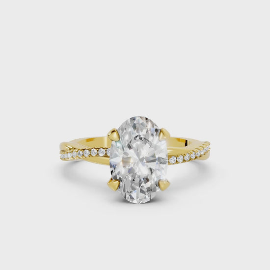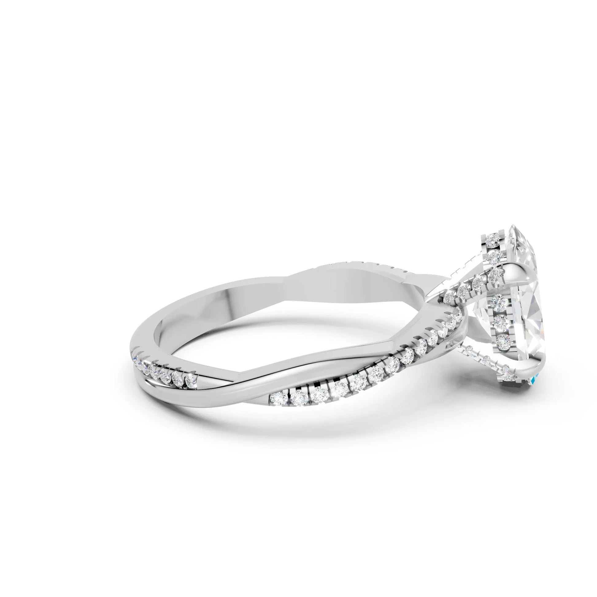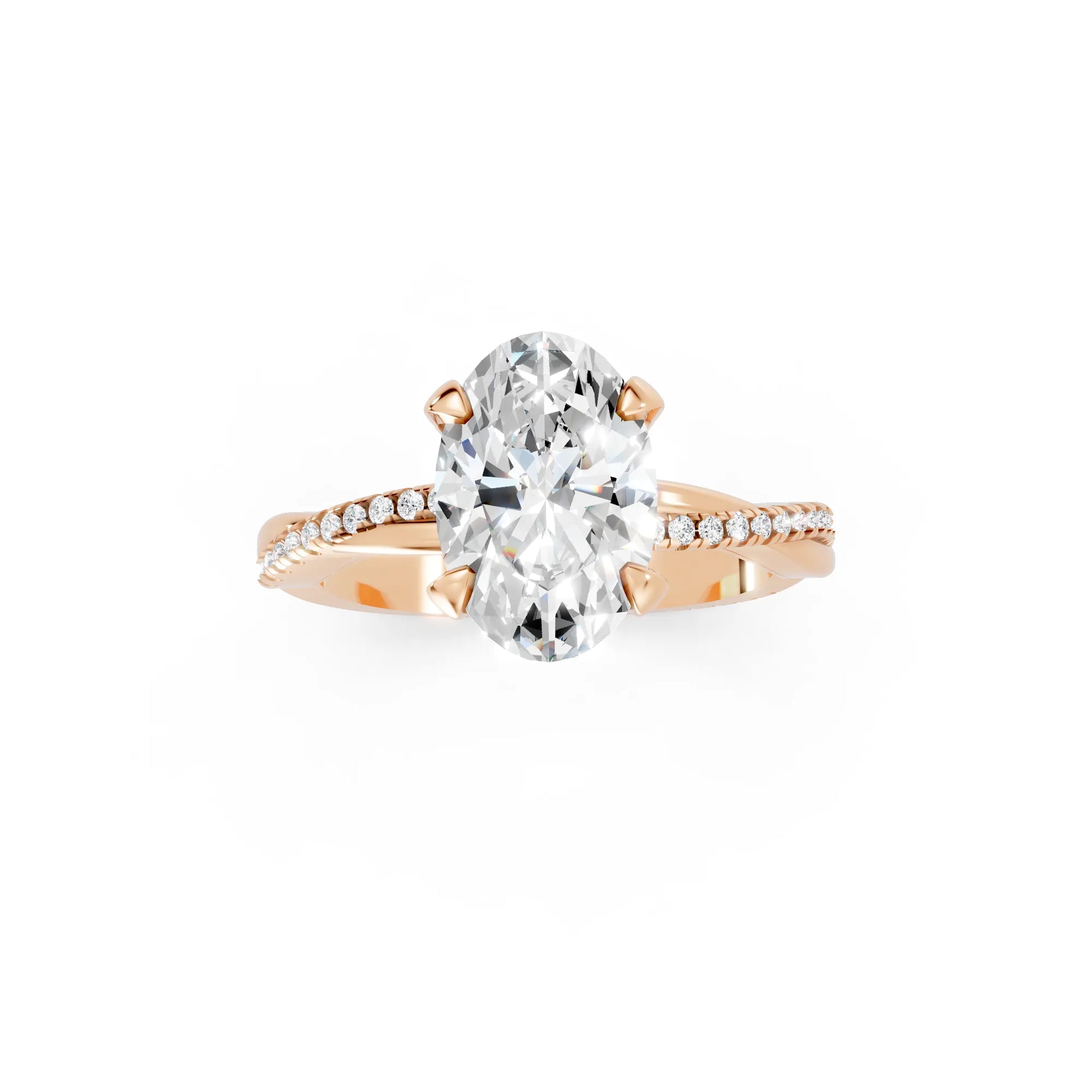 Crafted in solid 14k gold, this engagement ring features a brilliant oval cut lab-grown diamond set on a twisted vine band. A hidden halo adds extra radiance, merging natural-inspired beauty with modern sophistication.