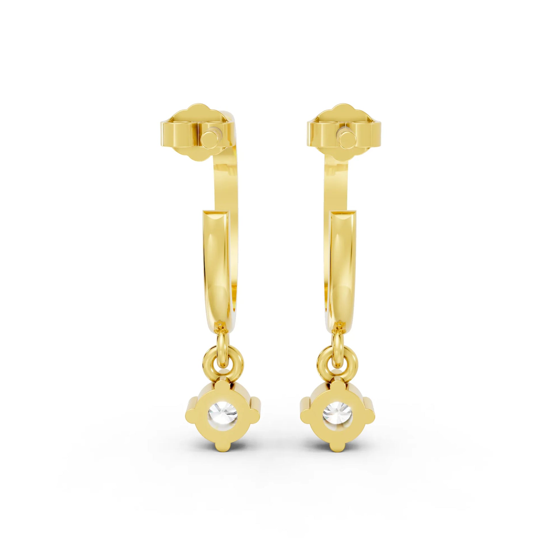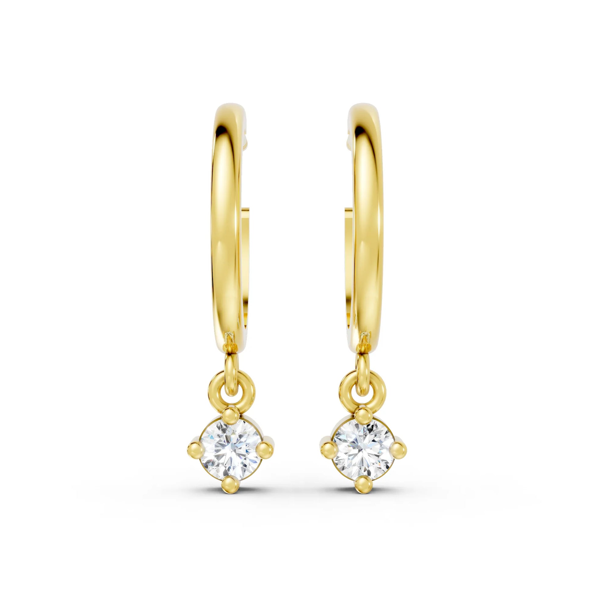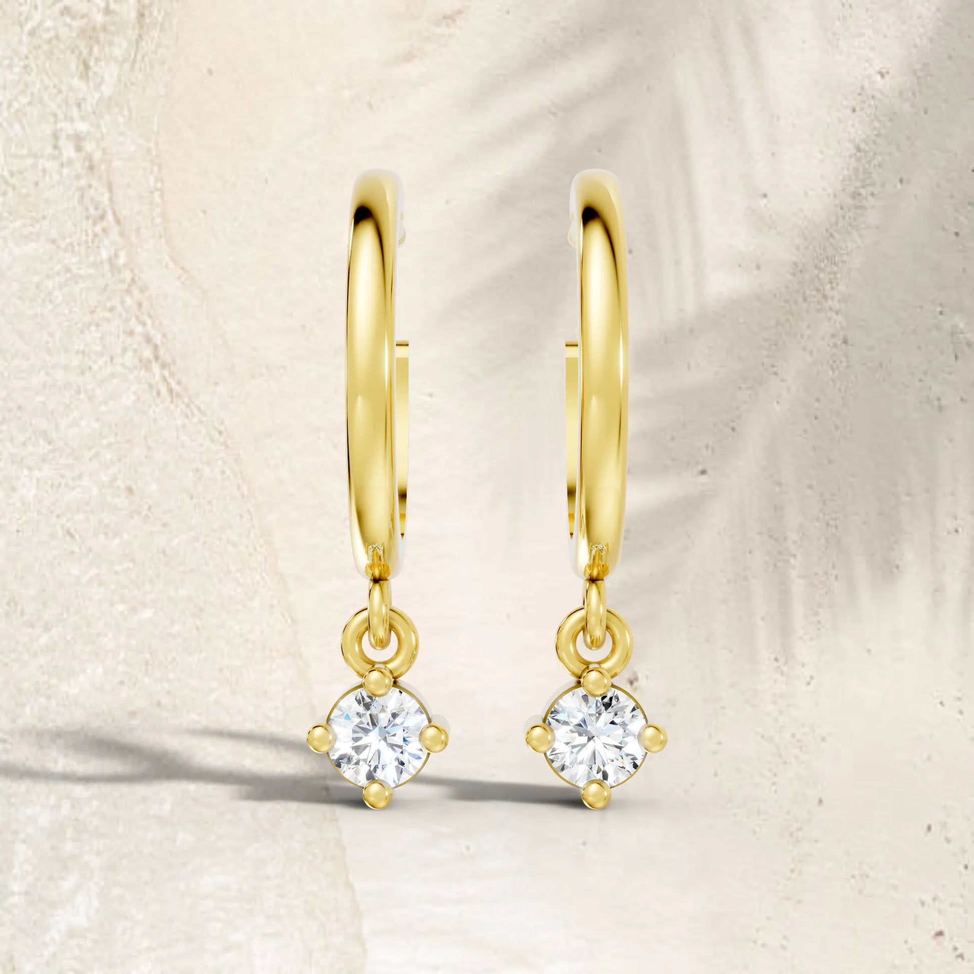Crafted in solid 14k gold, this hoop earring showcases two princess cut lab-grown diamonds in sleek bezel settings. A chic twin-stone design that combines sharp brilliance with modern minimalism for everyday elegance.
