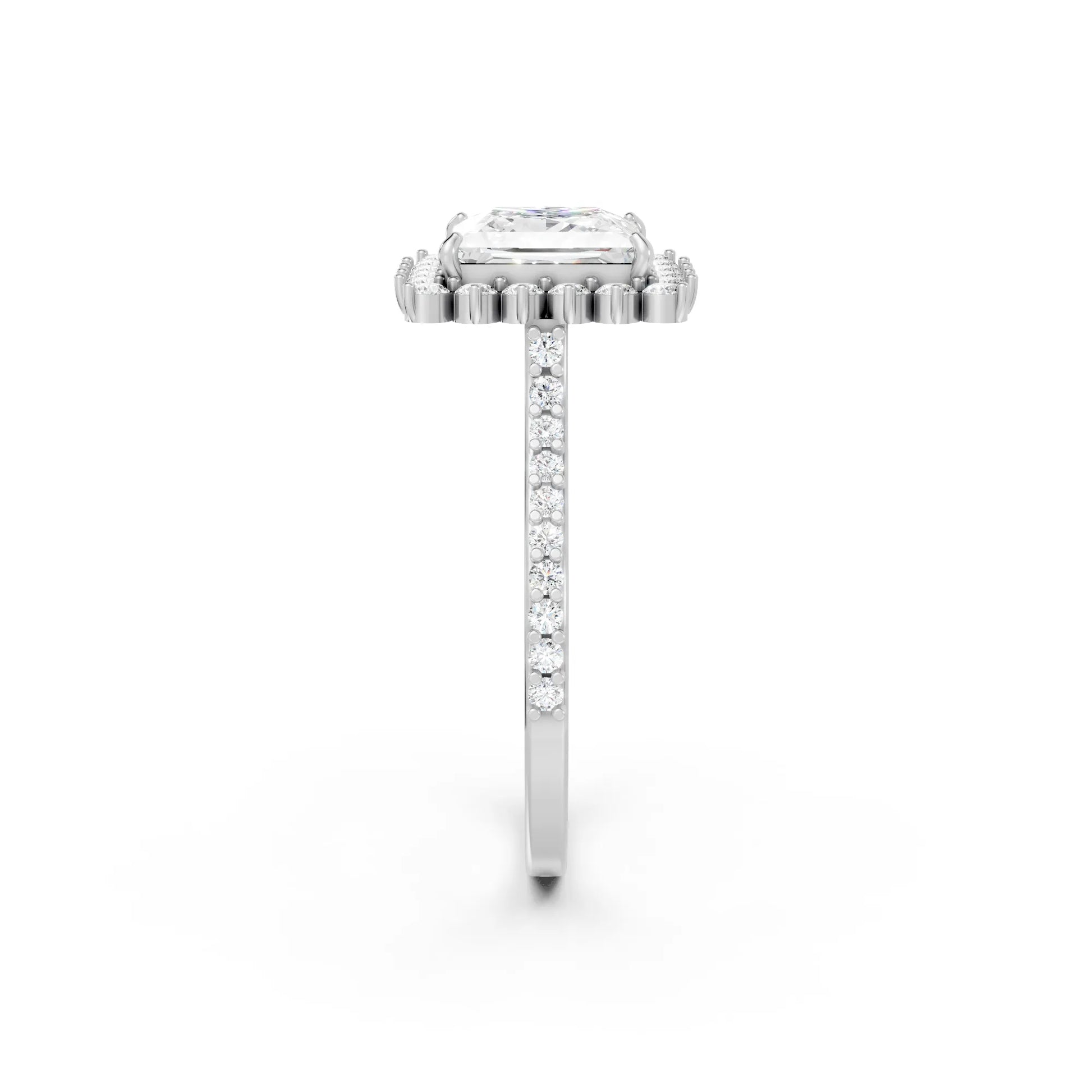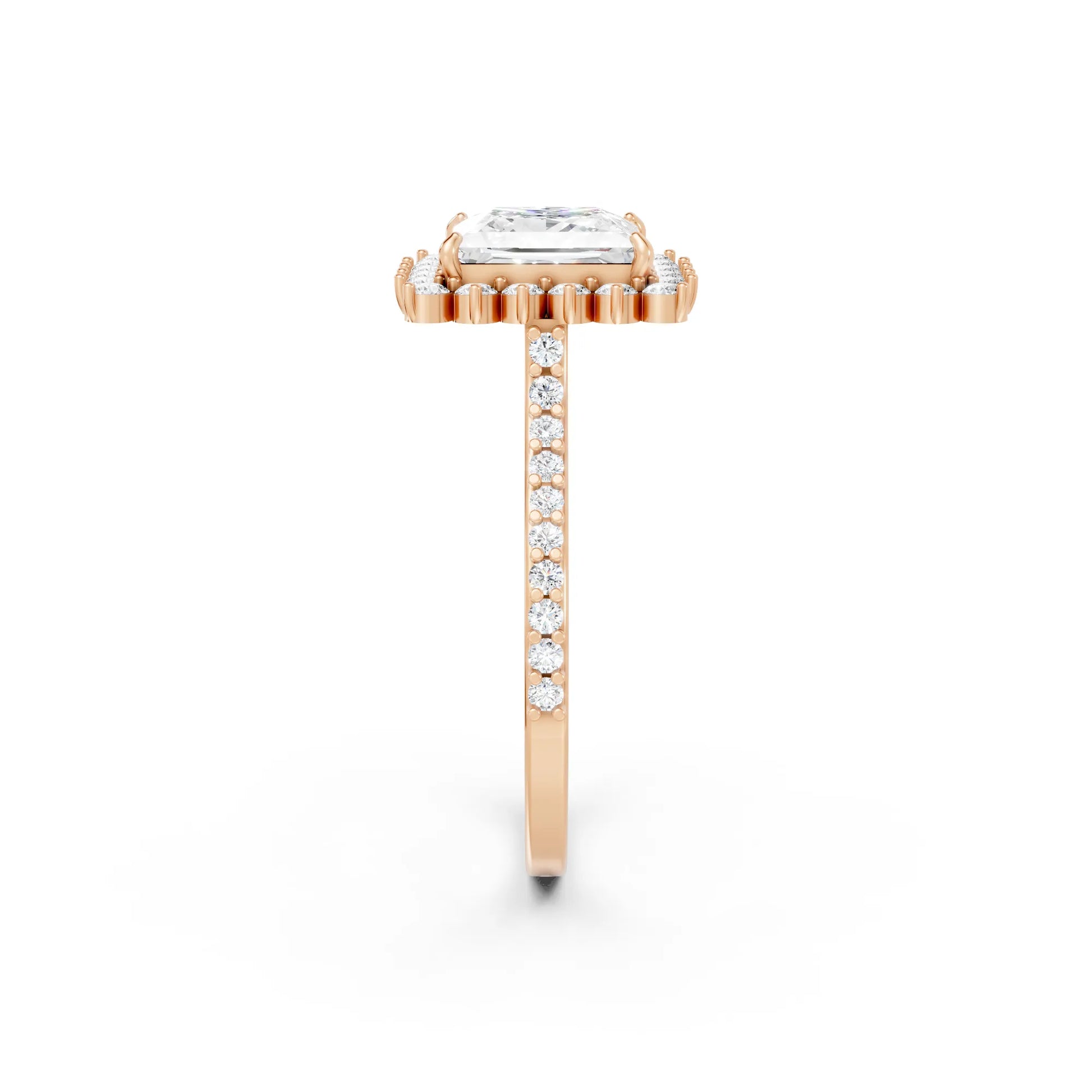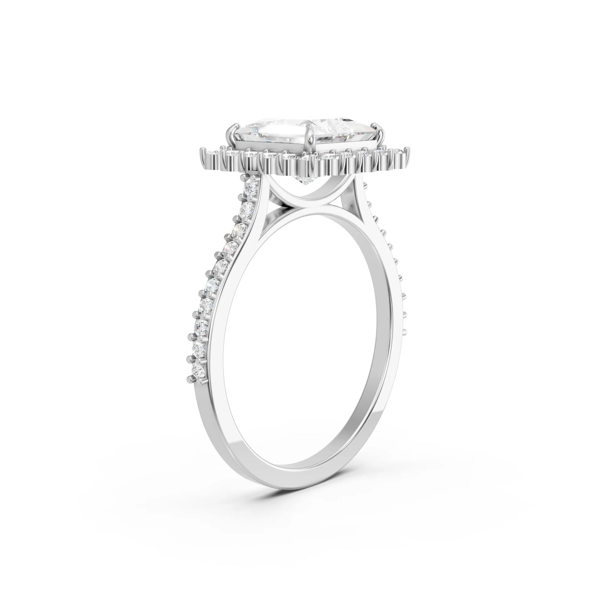 Crafted in solid 14k gold, this engagement ring features a striking princess cut lab-grown diamond surrounded by a floral-inspired halo. A pavé-set band adds extra brilliance, blending bold sparkle with timeless romance.