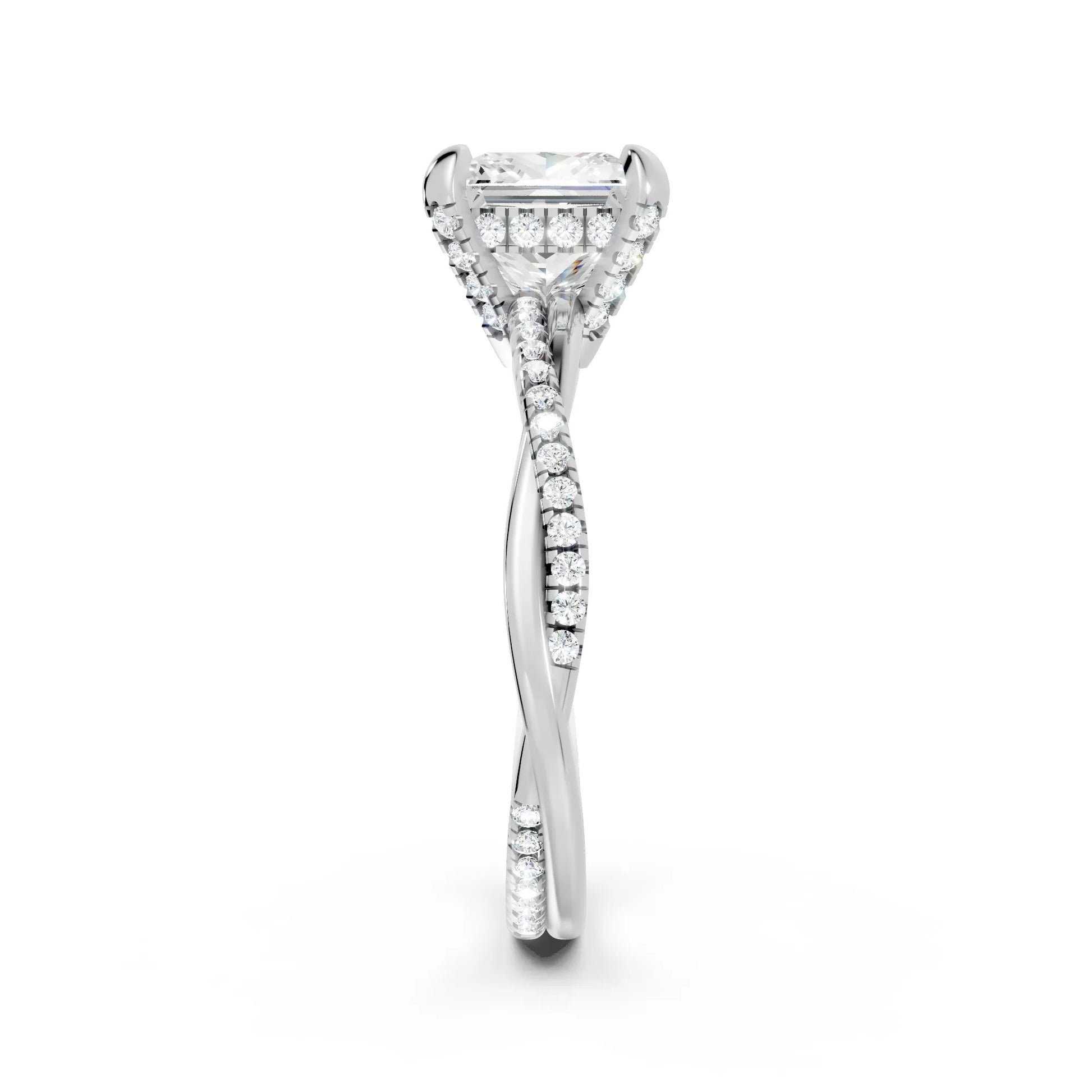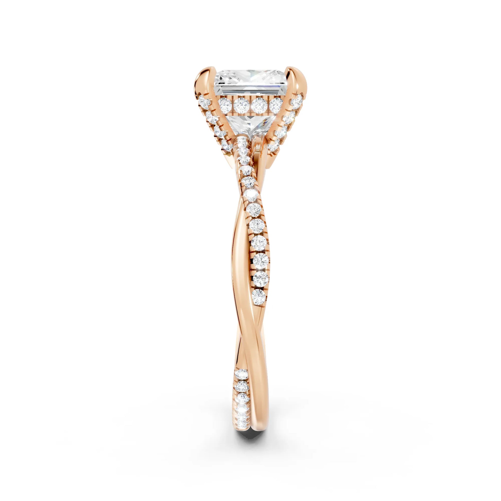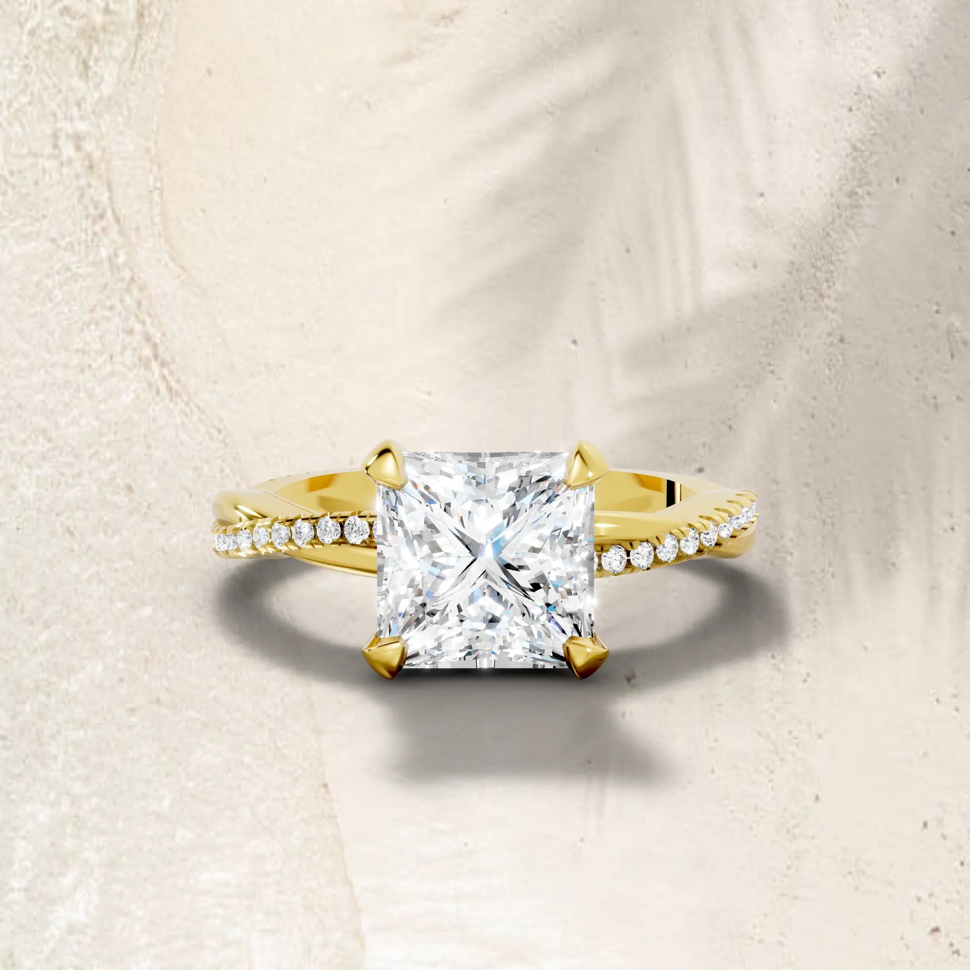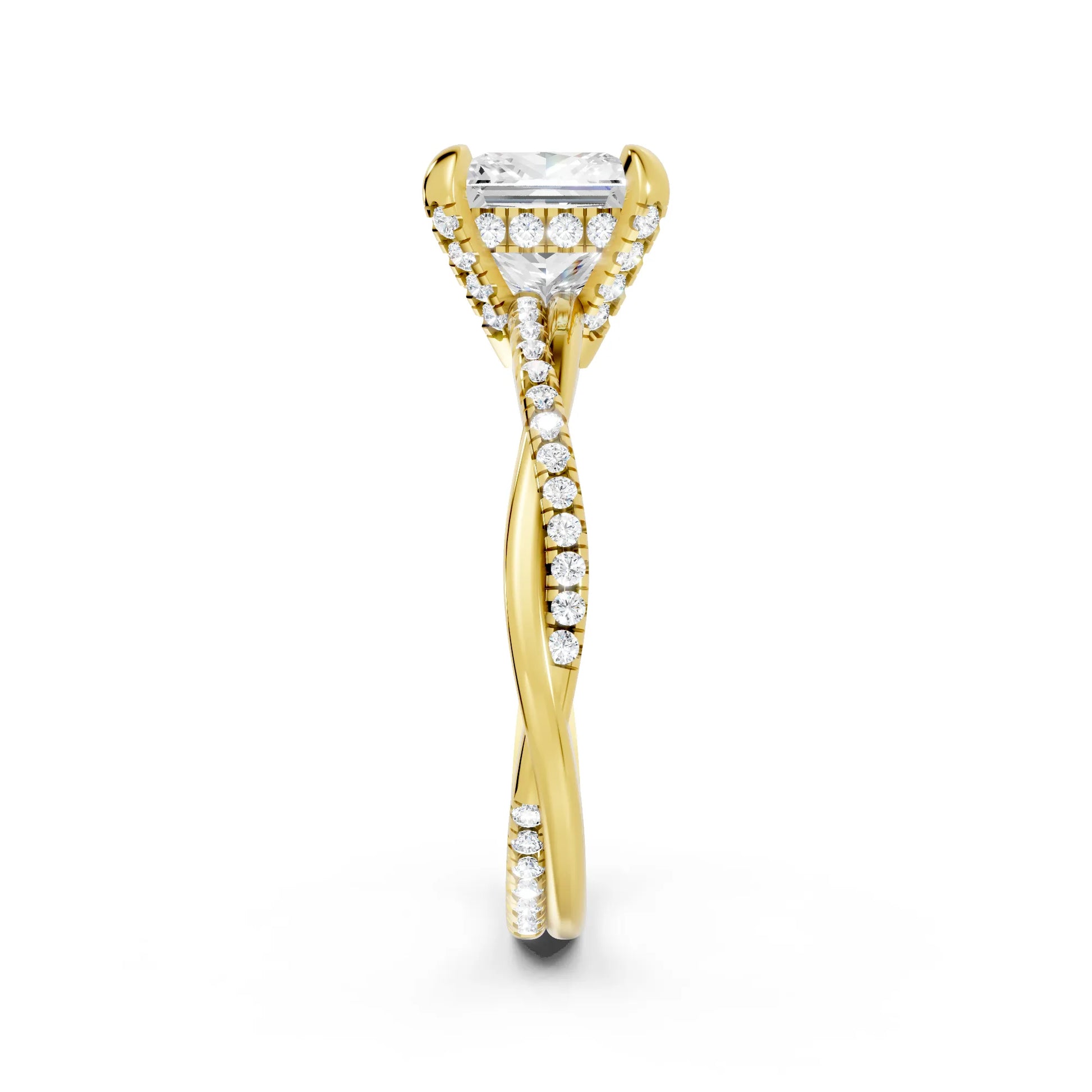 Crafted in solid 14k gold, this engagement ring features a striking princess cut lab-grown diamond set on a twisted vine band. A hidden halo adds radiant sparkle, blending modern brilliance with nature-inspired elegance.
