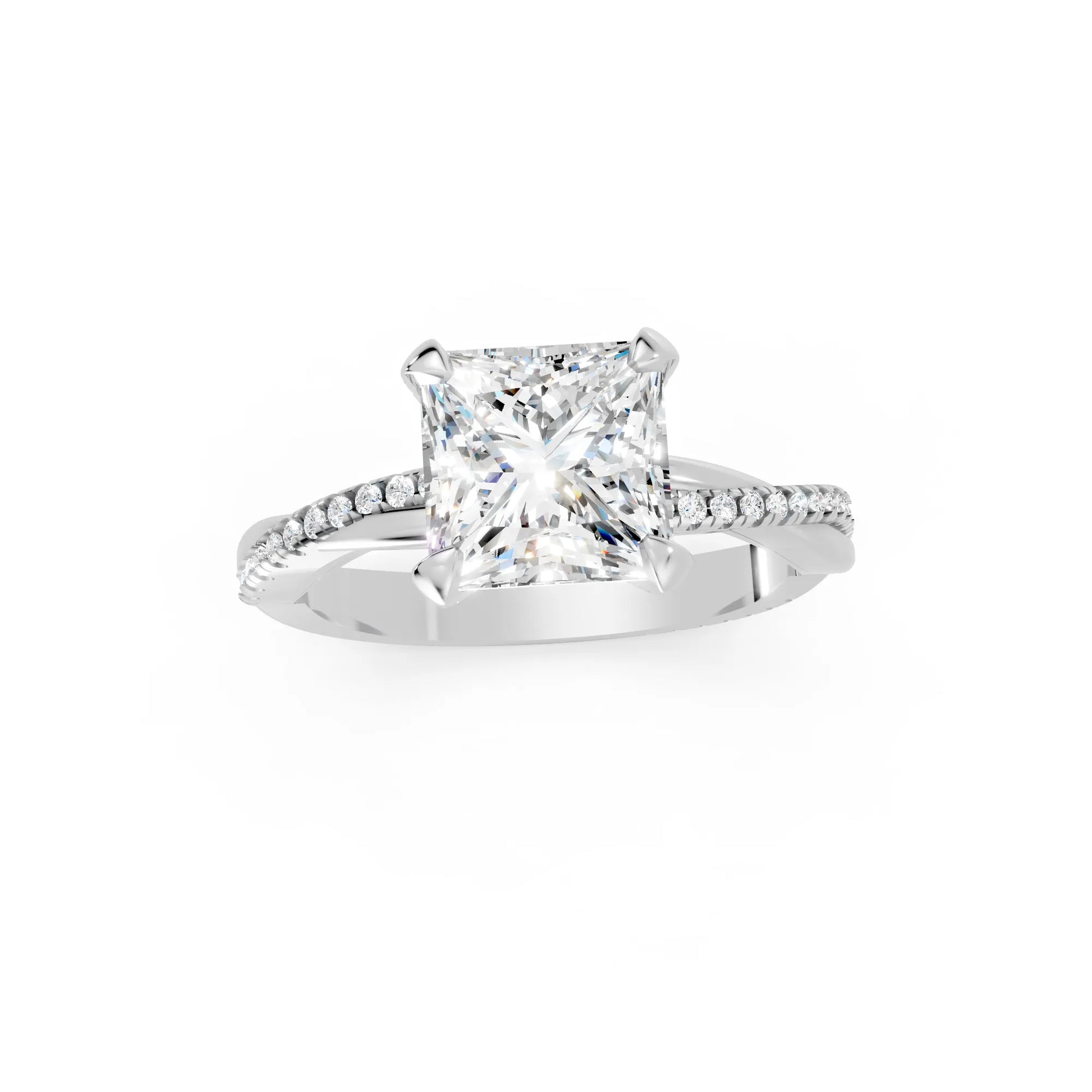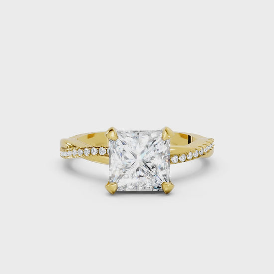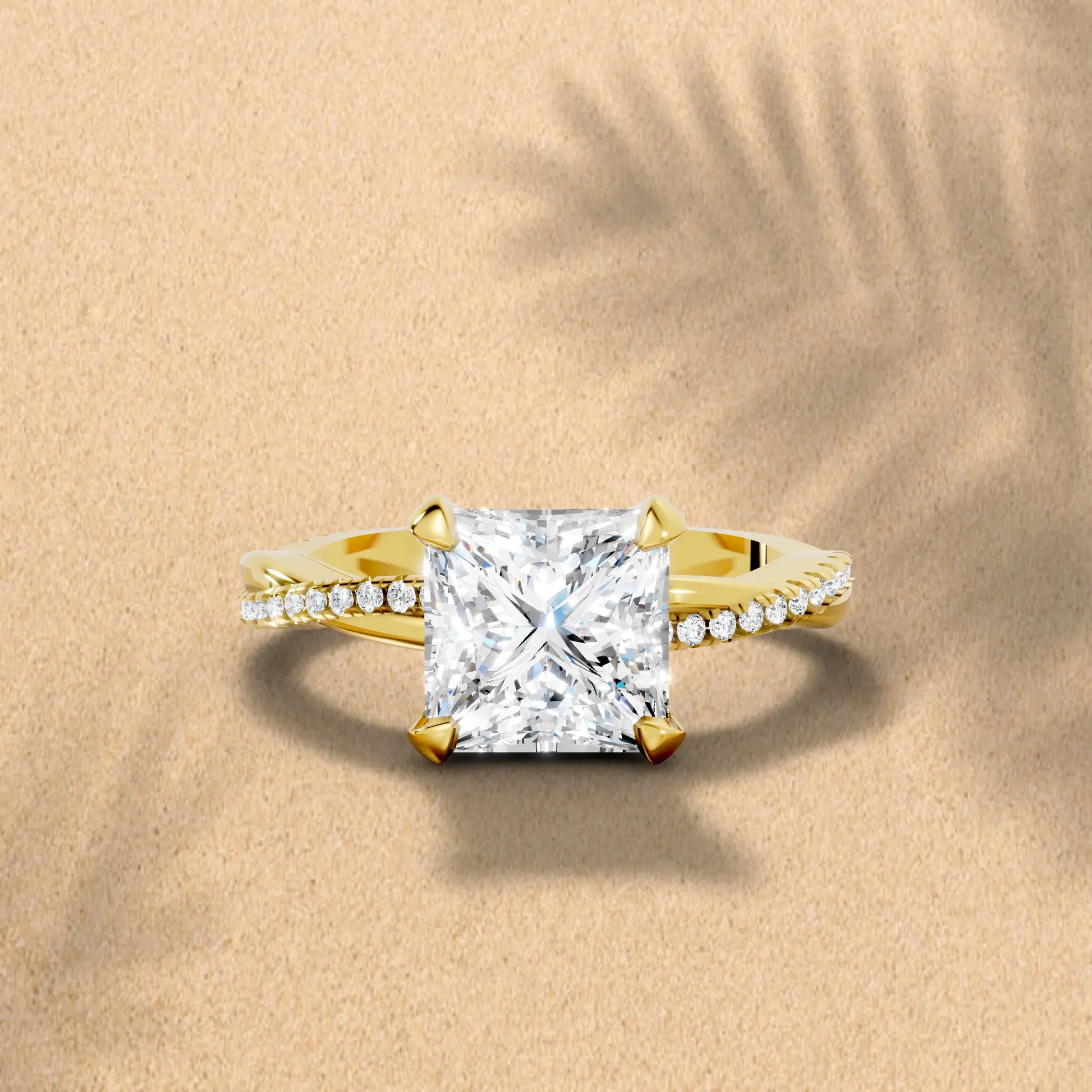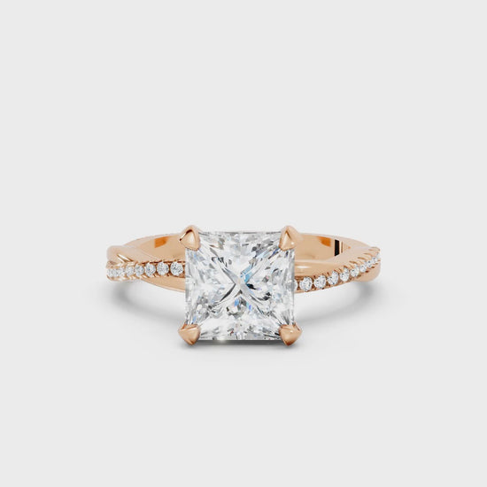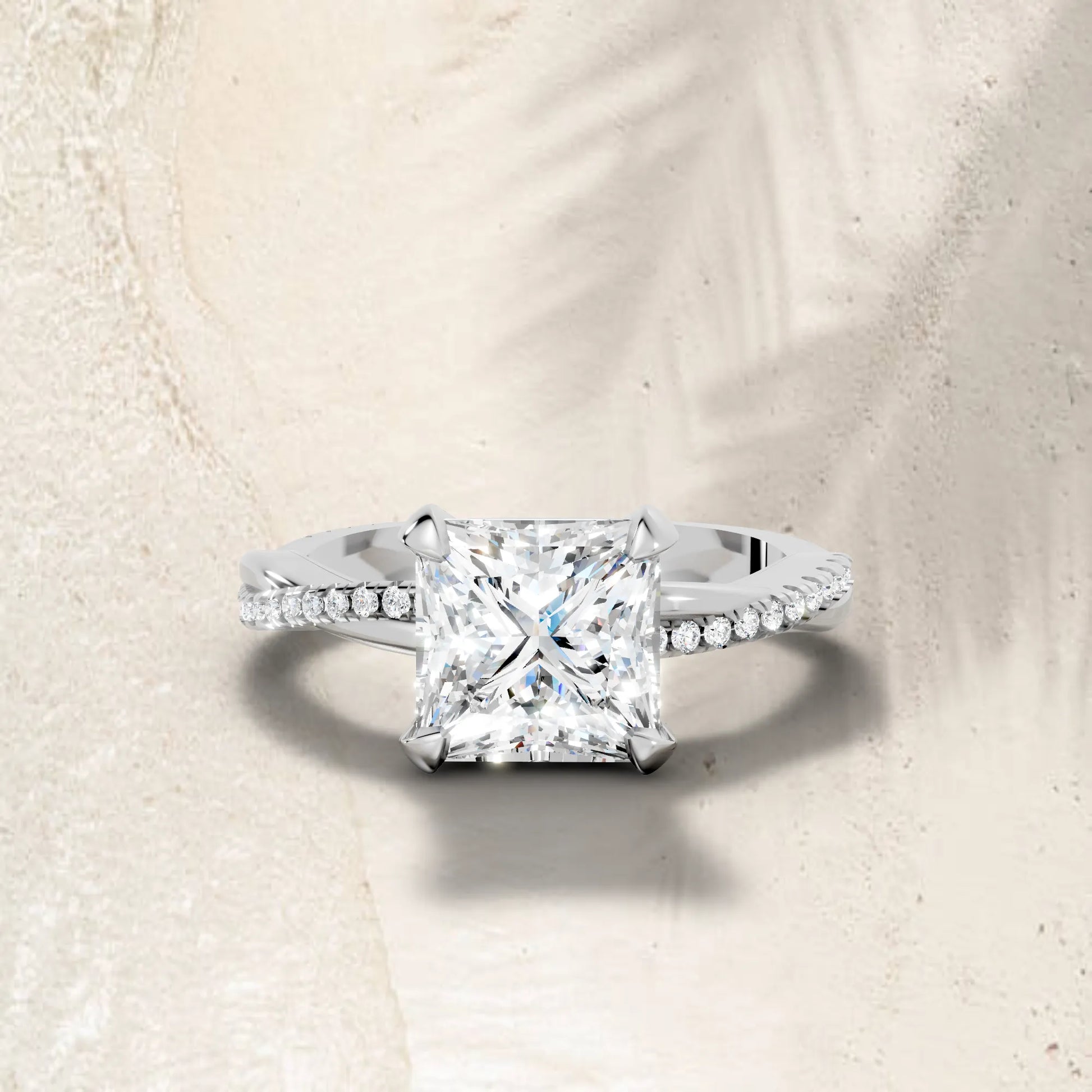 Crafted in solid 14k gold, this engagement ring features a striking princess cut lab-grown diamond set on a twisted vine band. A hidden halo adds radiant sparkle, blending modern brilliance with nature-inspired elegance.