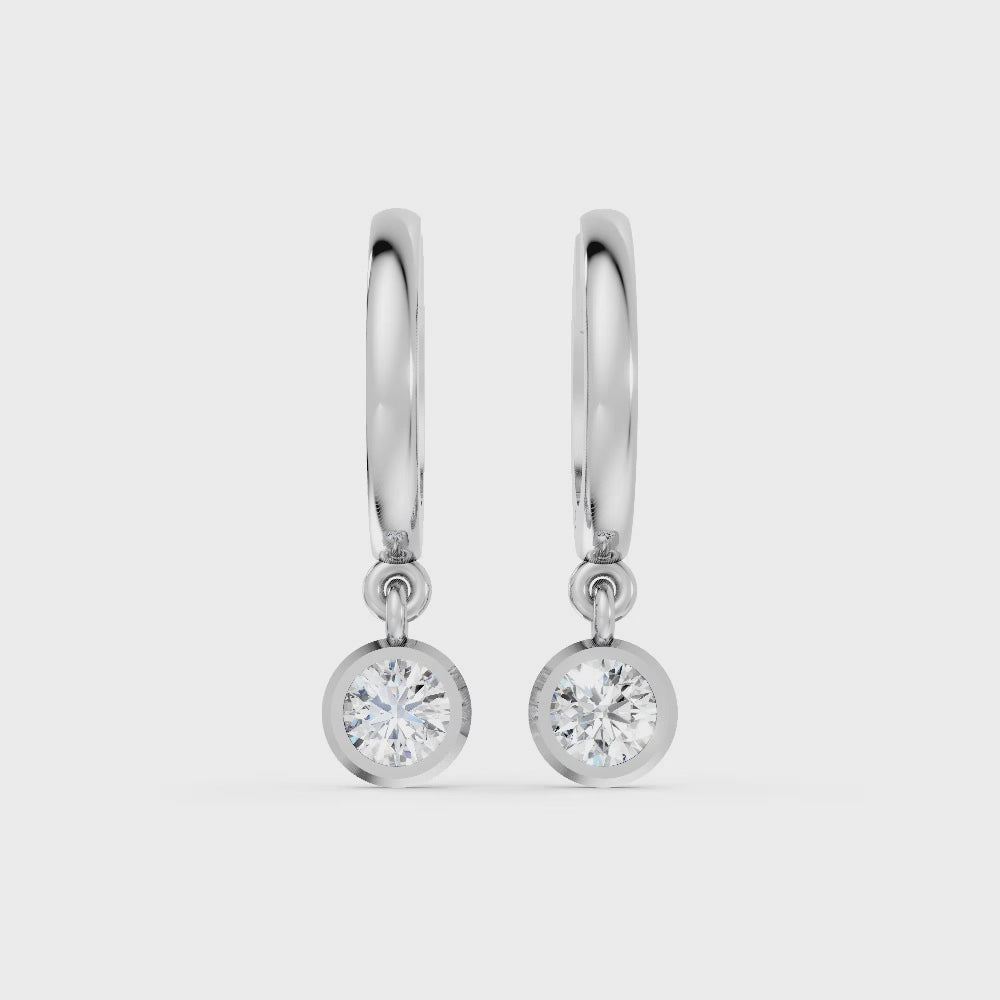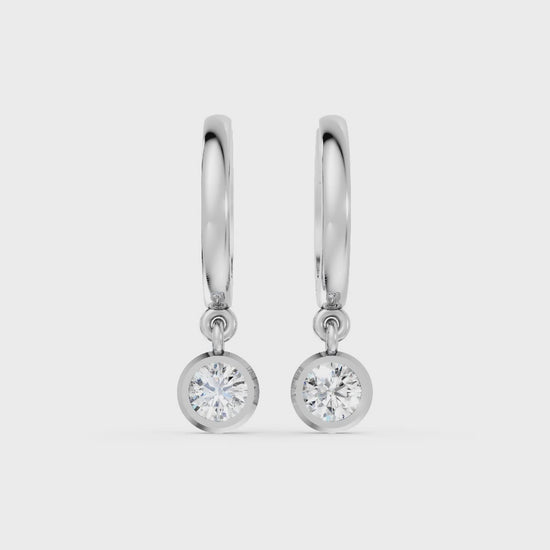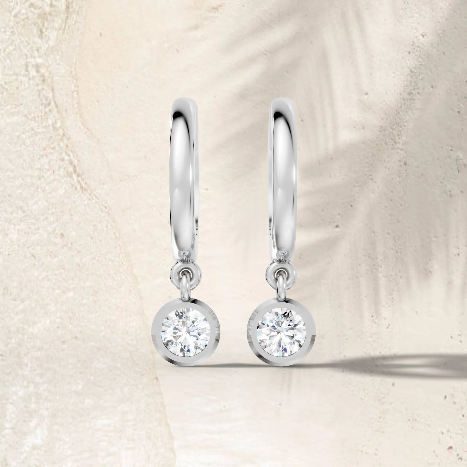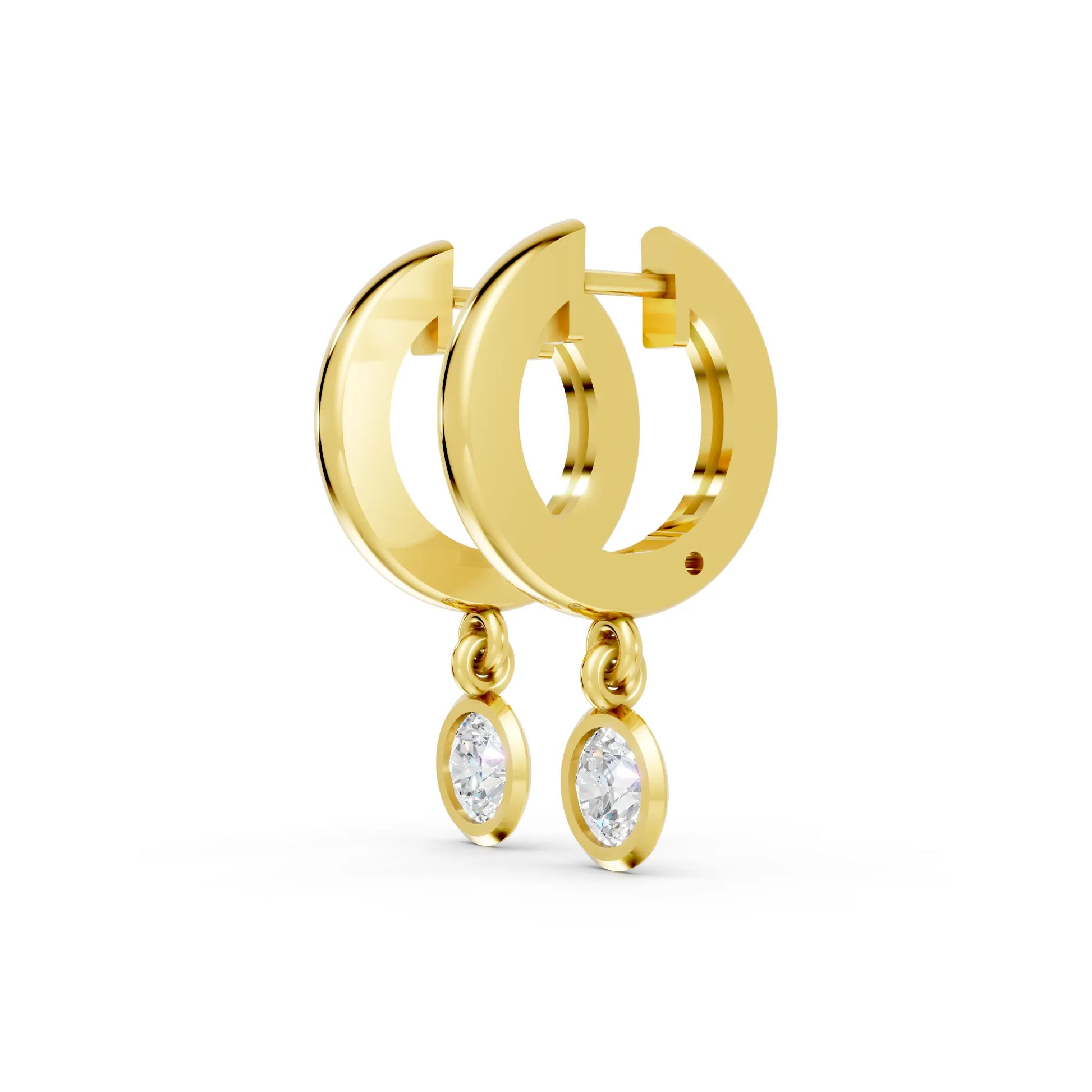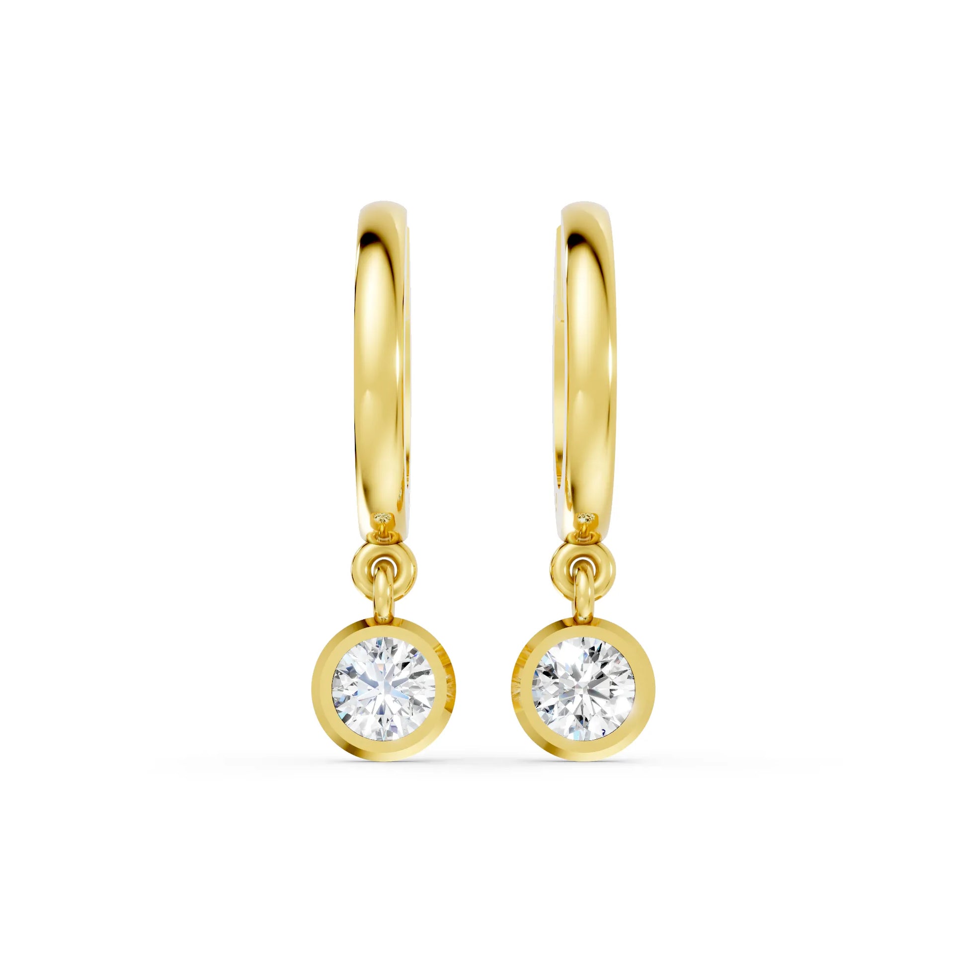 Crafted in solid 14k gold, this huggie hoop features a round cut lab-grown diamond in a sleek knife-edge bezel drop. A timeless yet modern design that delivers radiant sparkle for any occasion.