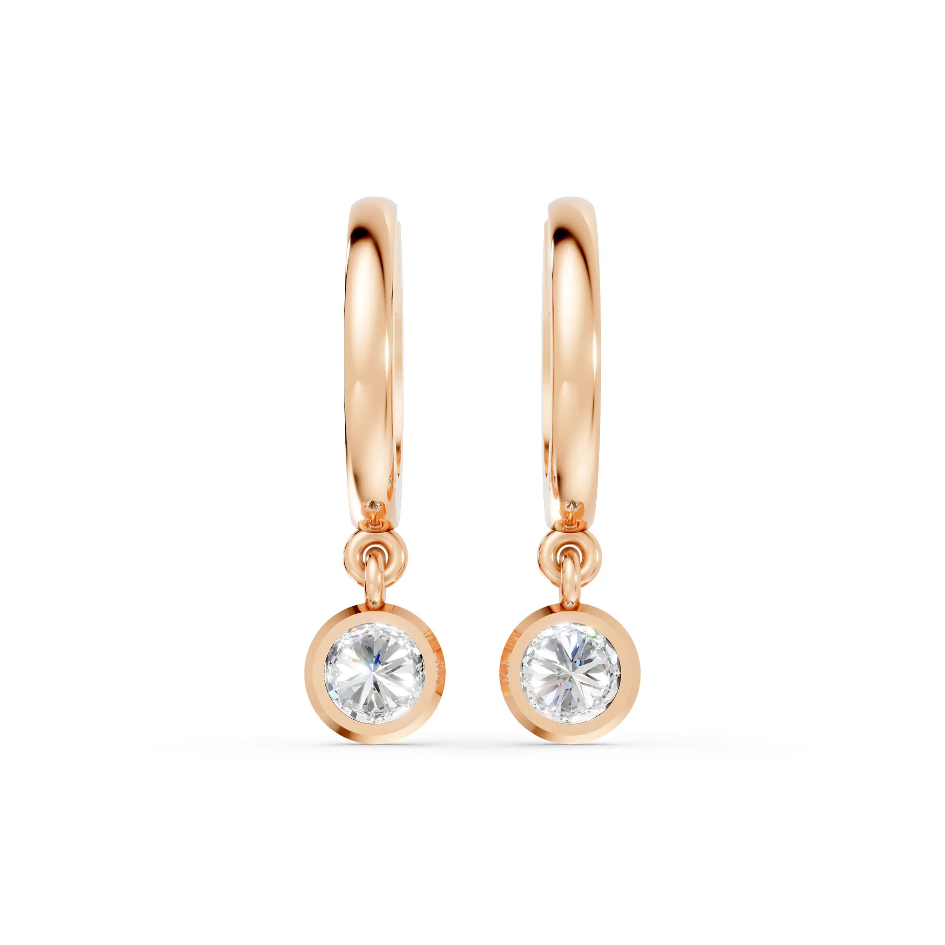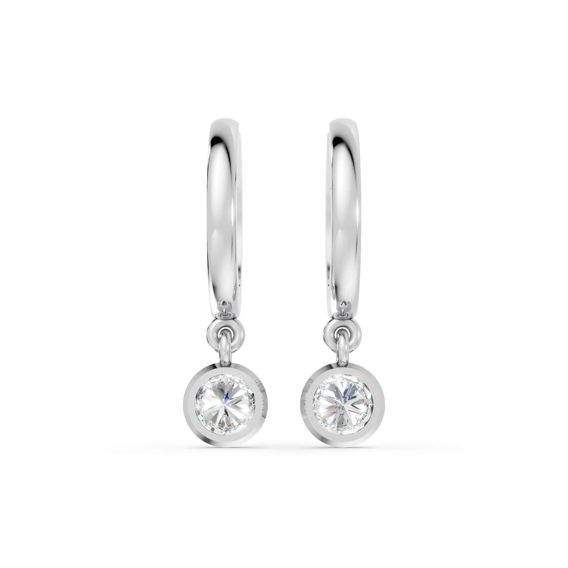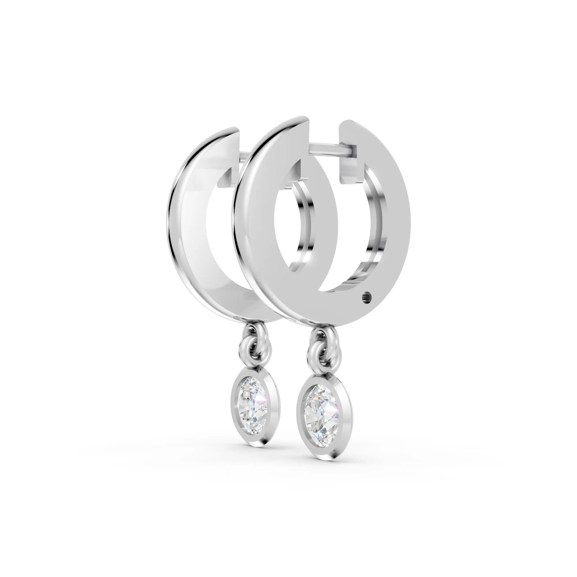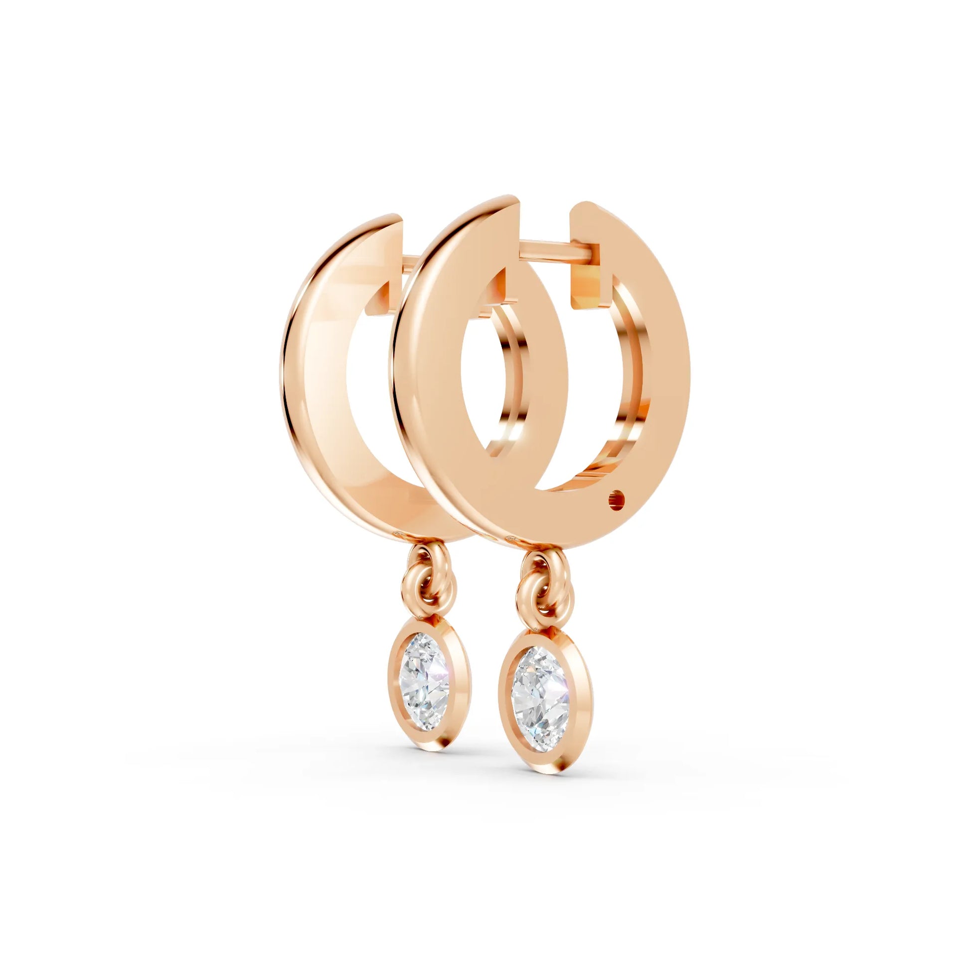 Crafted in solid 14k gold, this huggie hoop features a round cut lab-grown diamond in a sleek knife-edge bezel drop. A timeless yet modern design that delivers radiant sparkle for any occasion.