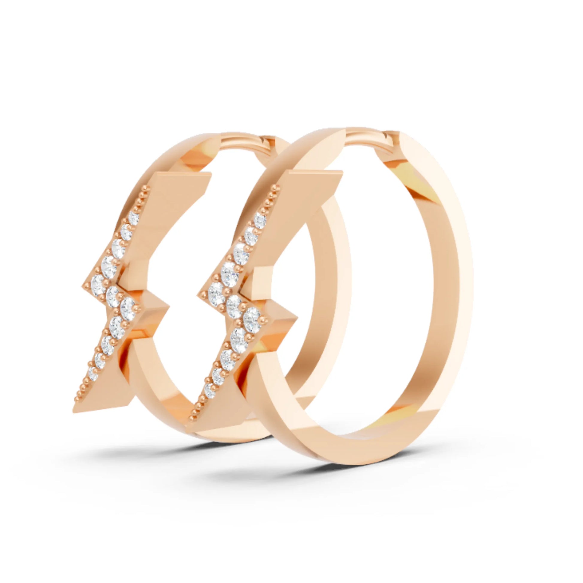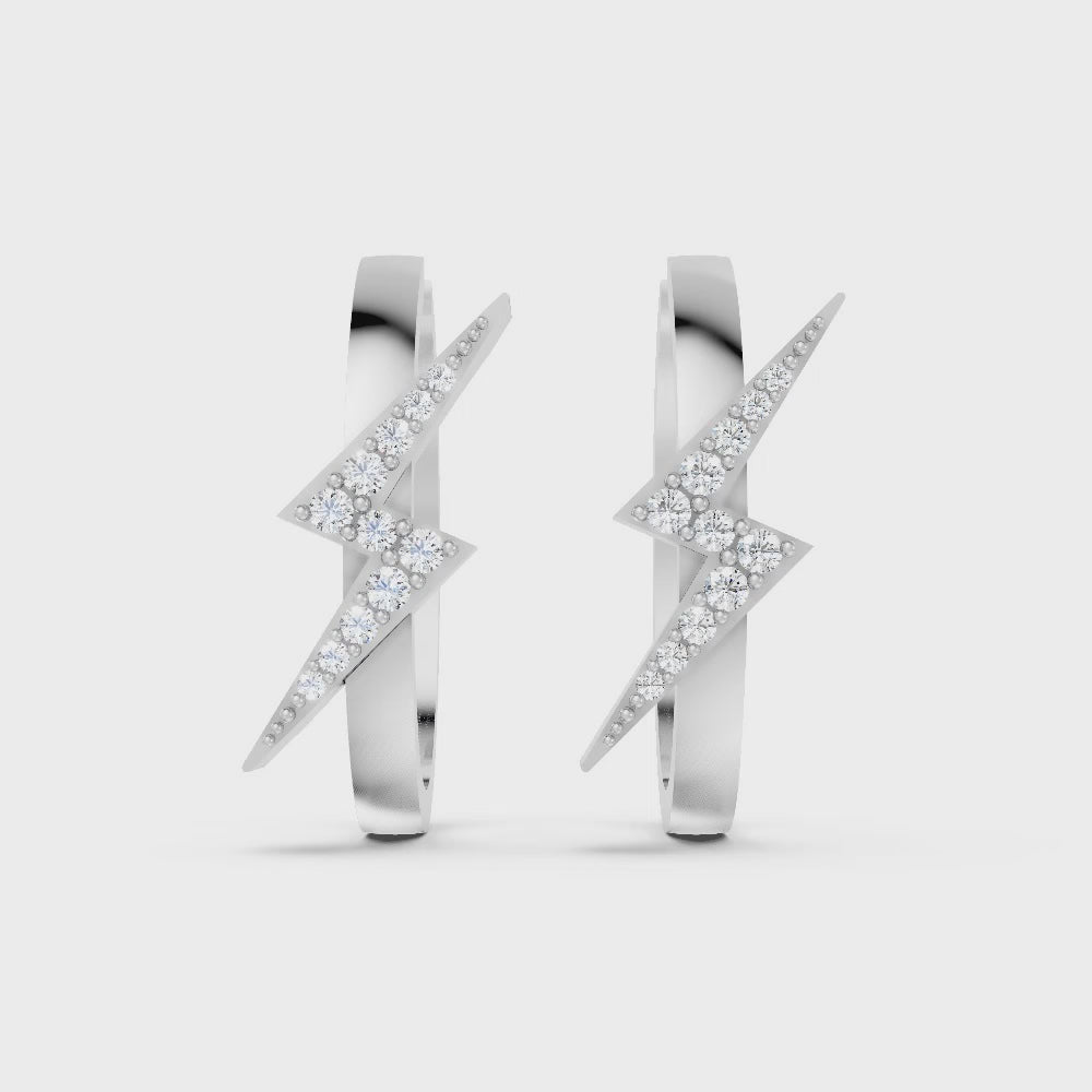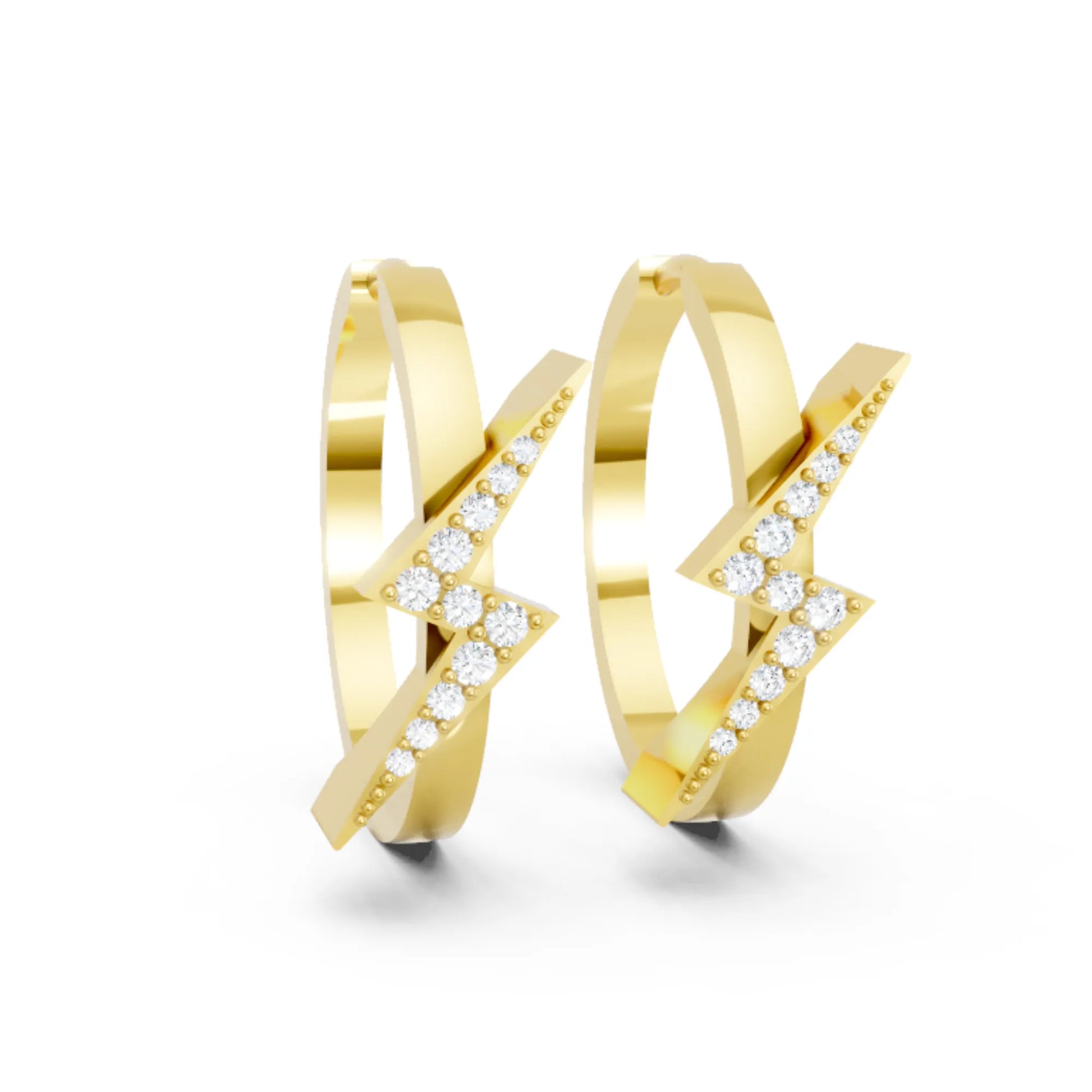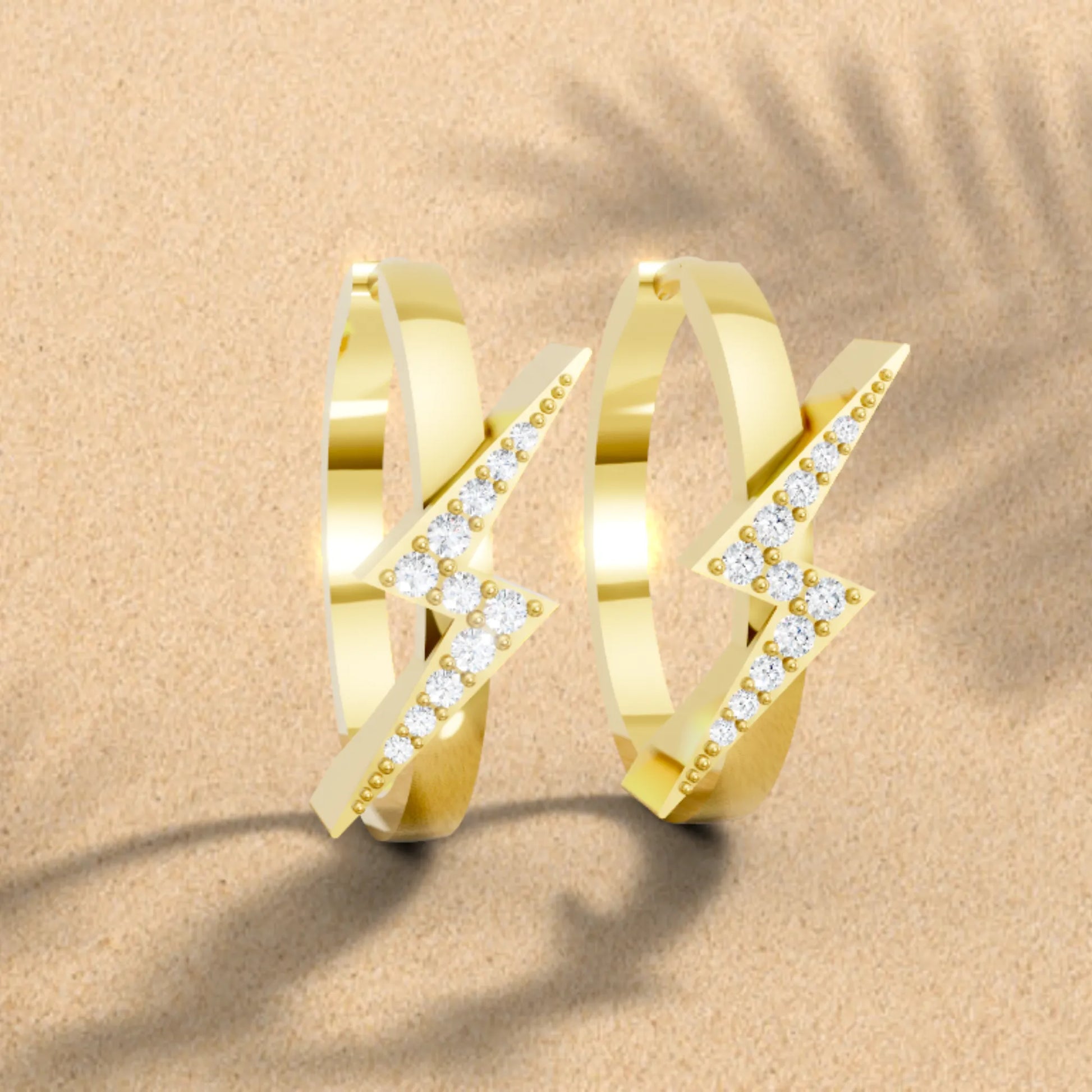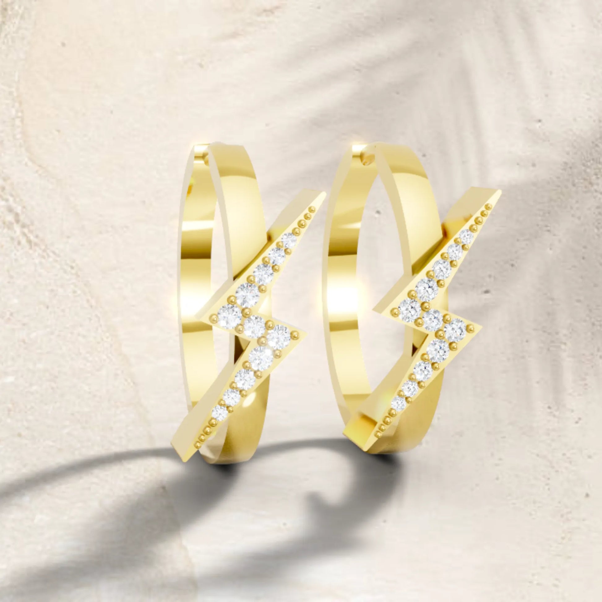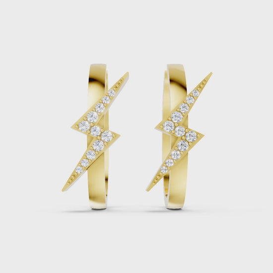 Crafted in solid 14k gold, this hoop earring features a brilliant round cut lab-grown diamond set within a bold lightning bolt design. A modern statement piece that adds edgy sparkle and everyday shine.