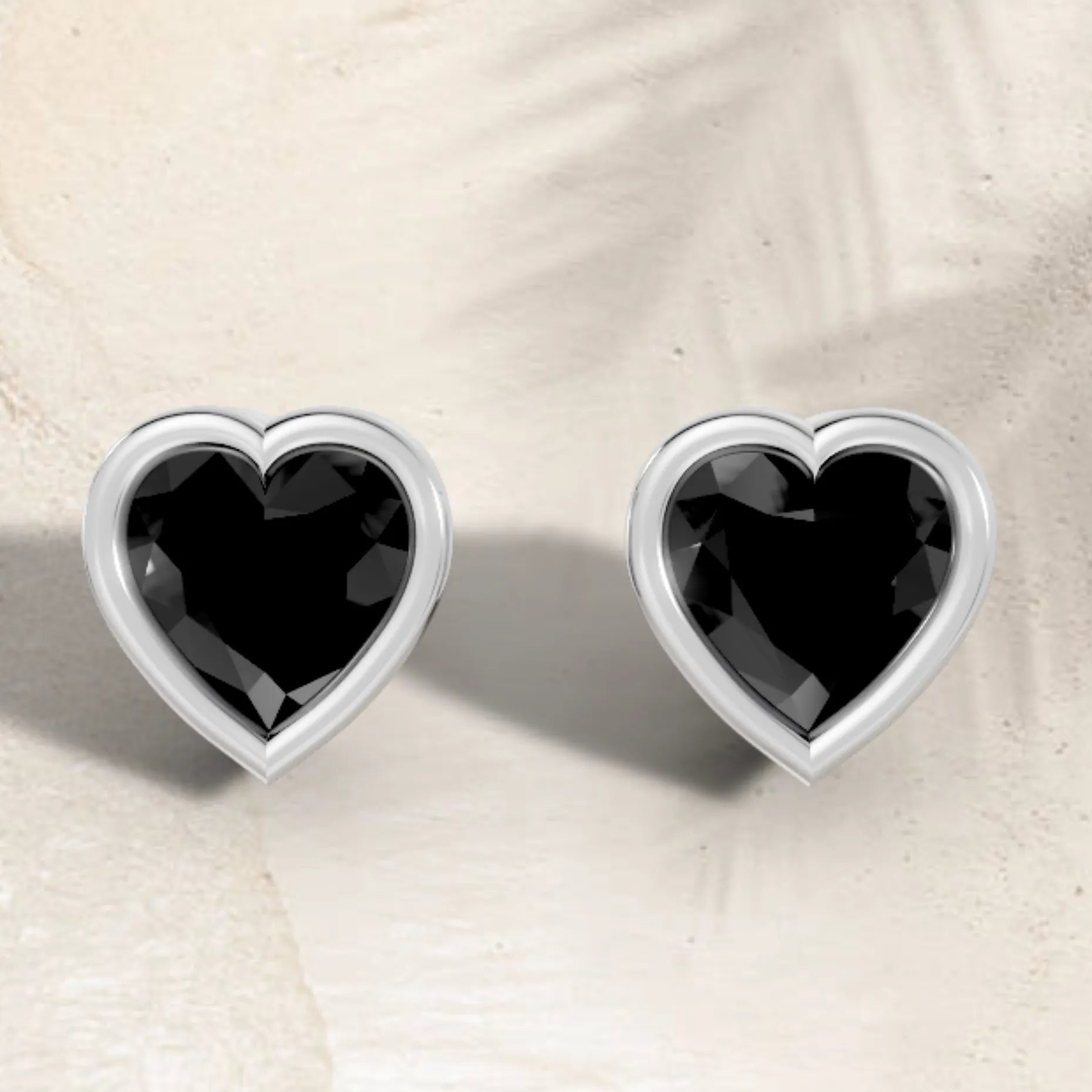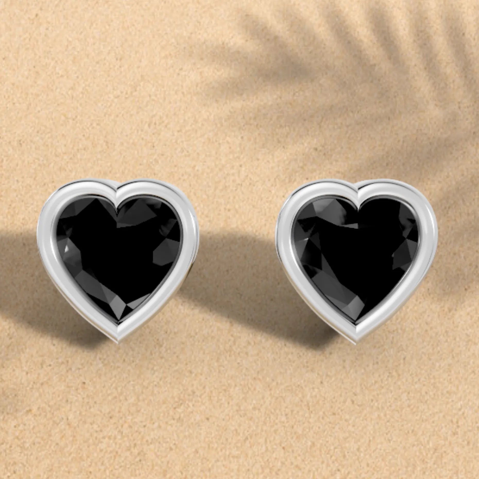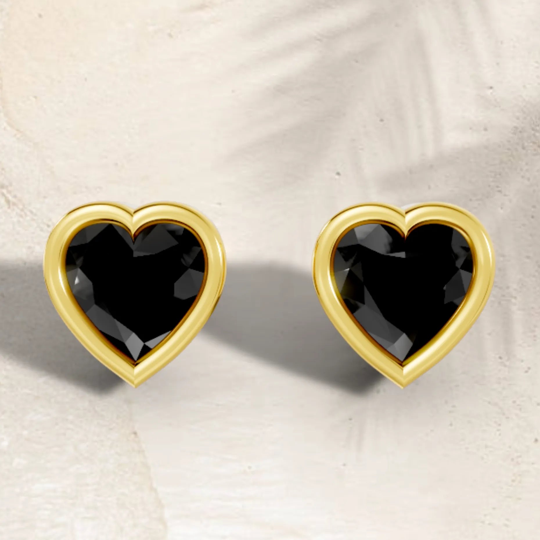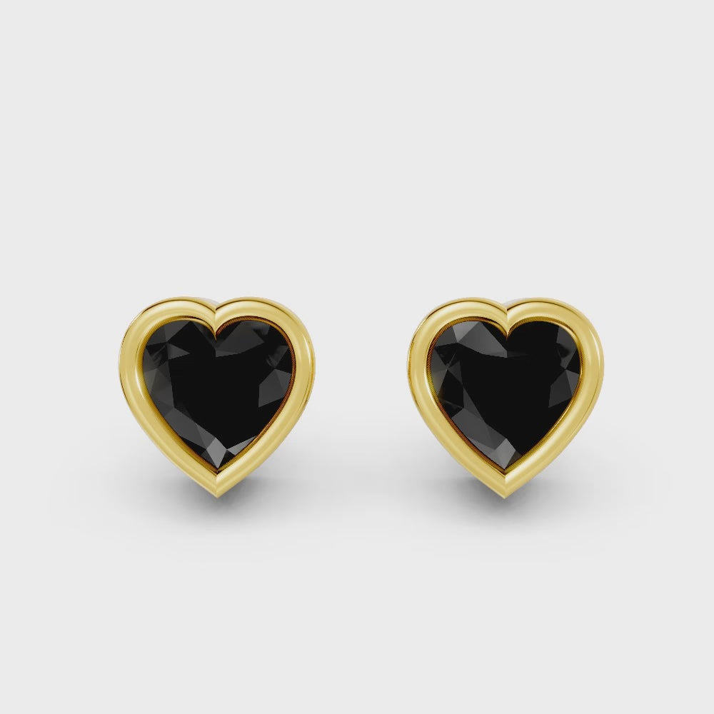 Crafted in solid 14k gold, this stud earring features a romantic heart cut natural black diamond in a smooth bezel setting. A meaningful yet modern design that adds bold sparkle with a touch of love.