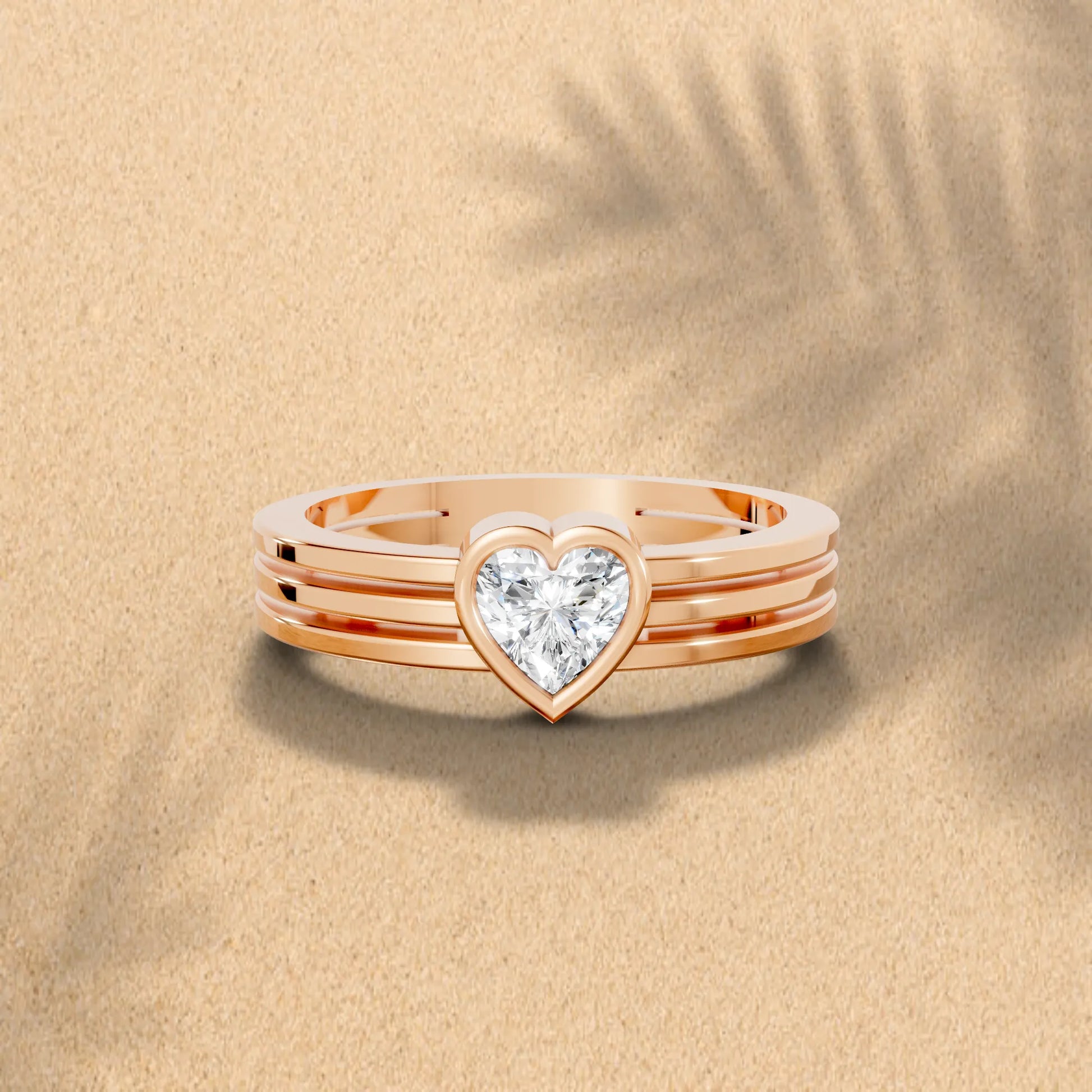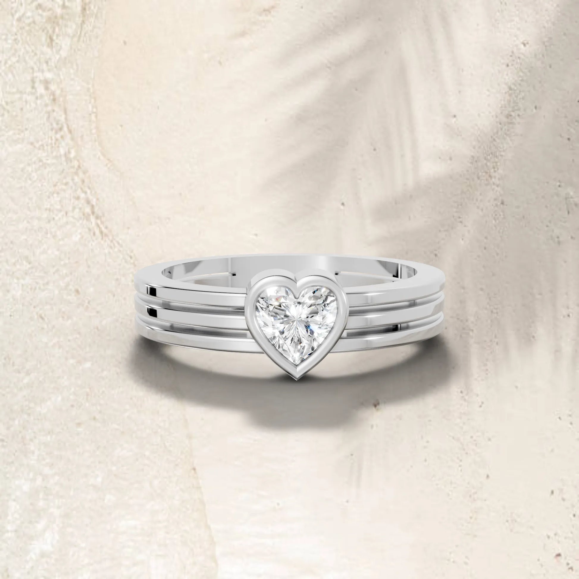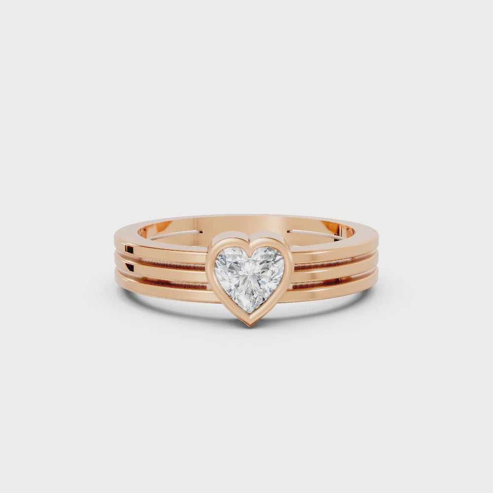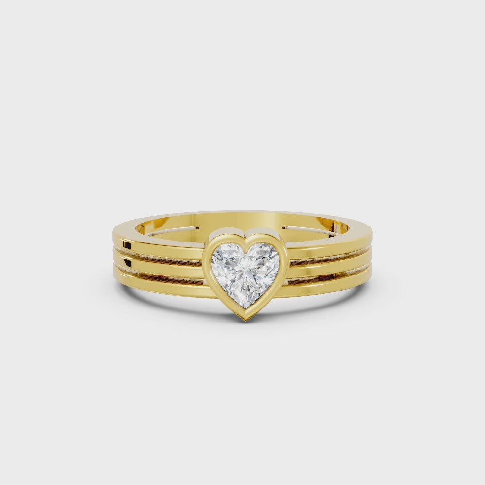 This engagement ring, crafted in solid 14k gold, features a romantic heart cut lab-grown diamond in a sleek bezel setting. The contemporary double band design adds symbolic depth, representing love, unity, and everlasting brilliance.