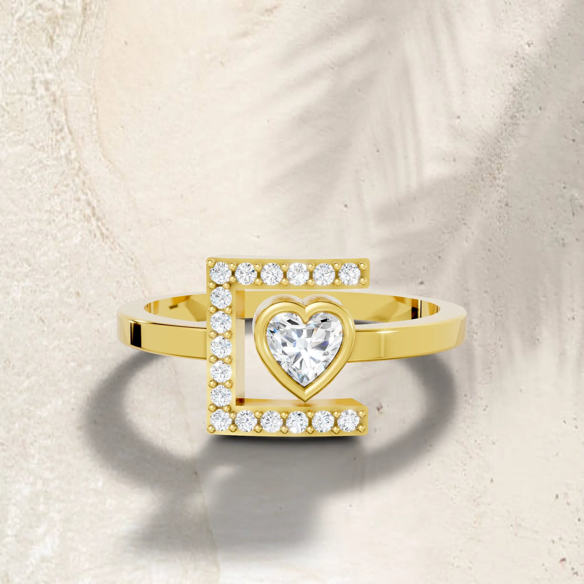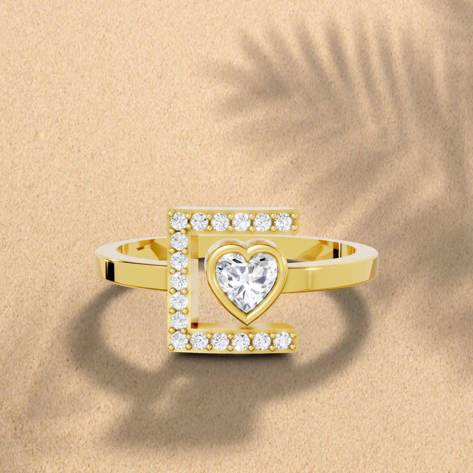 This engagement ring, crafted in solid 14k gold, features a romantic heart cut lab-grown diamond in a sleek bezel setting. Sparkling side accents enhance its brilliance, symbolizing love, unity, and everlasting beauty.