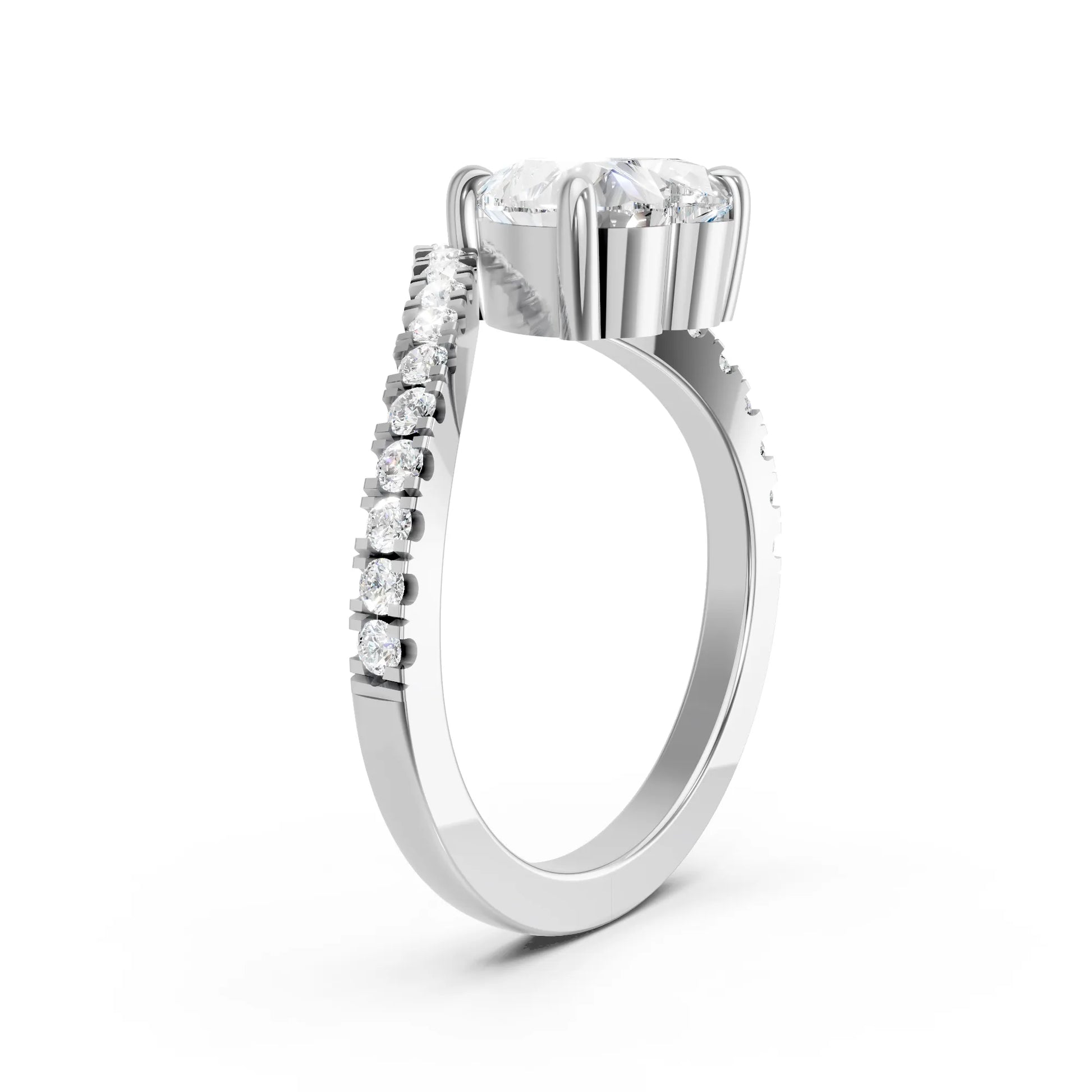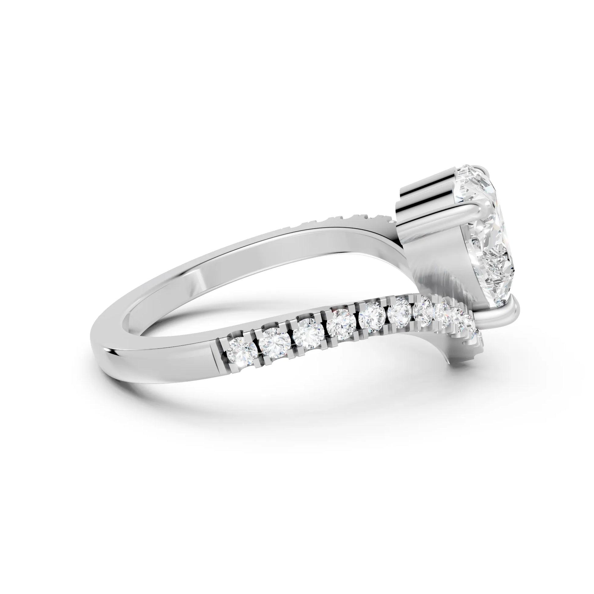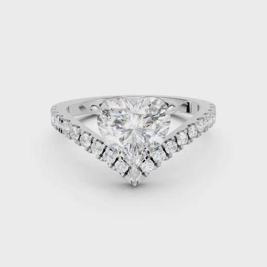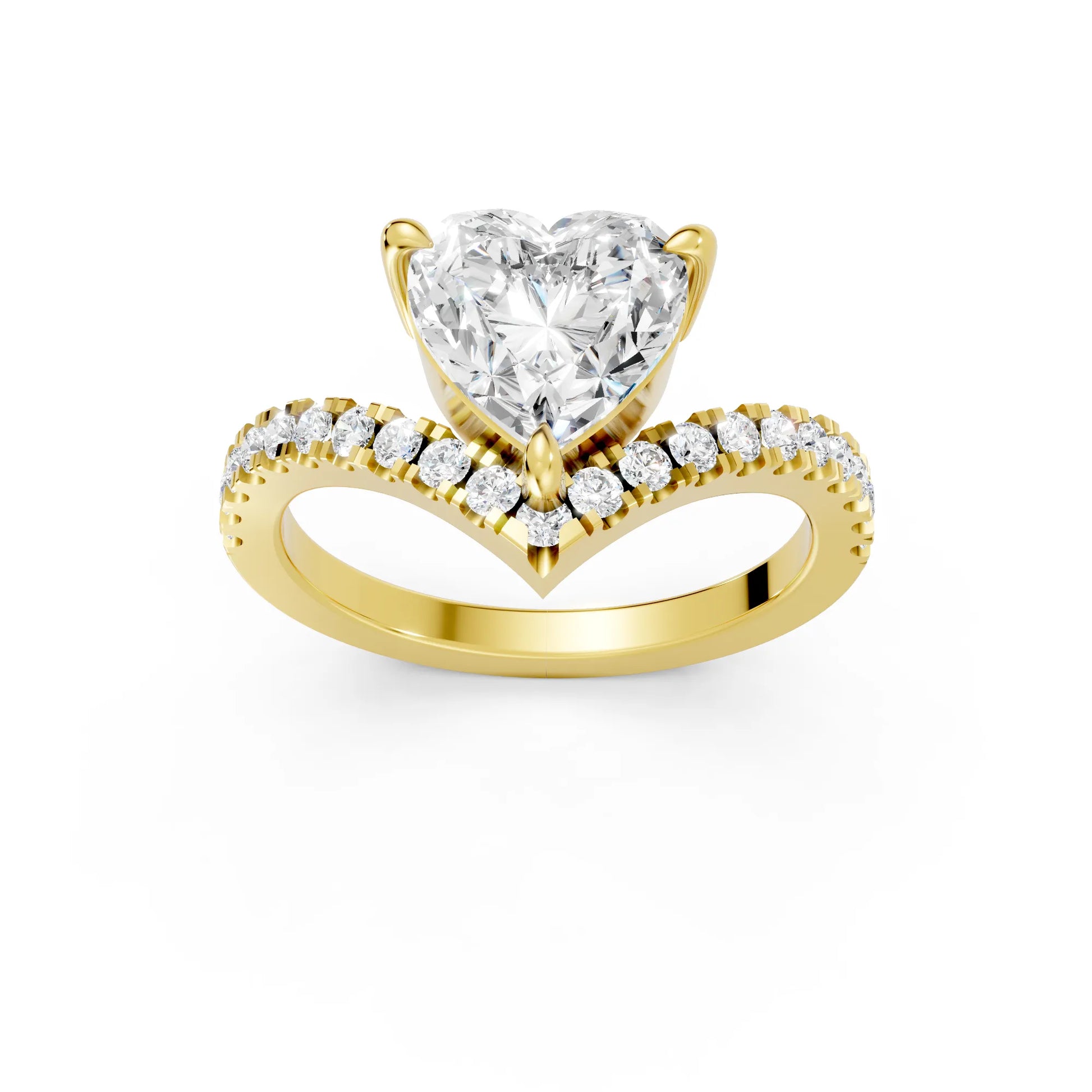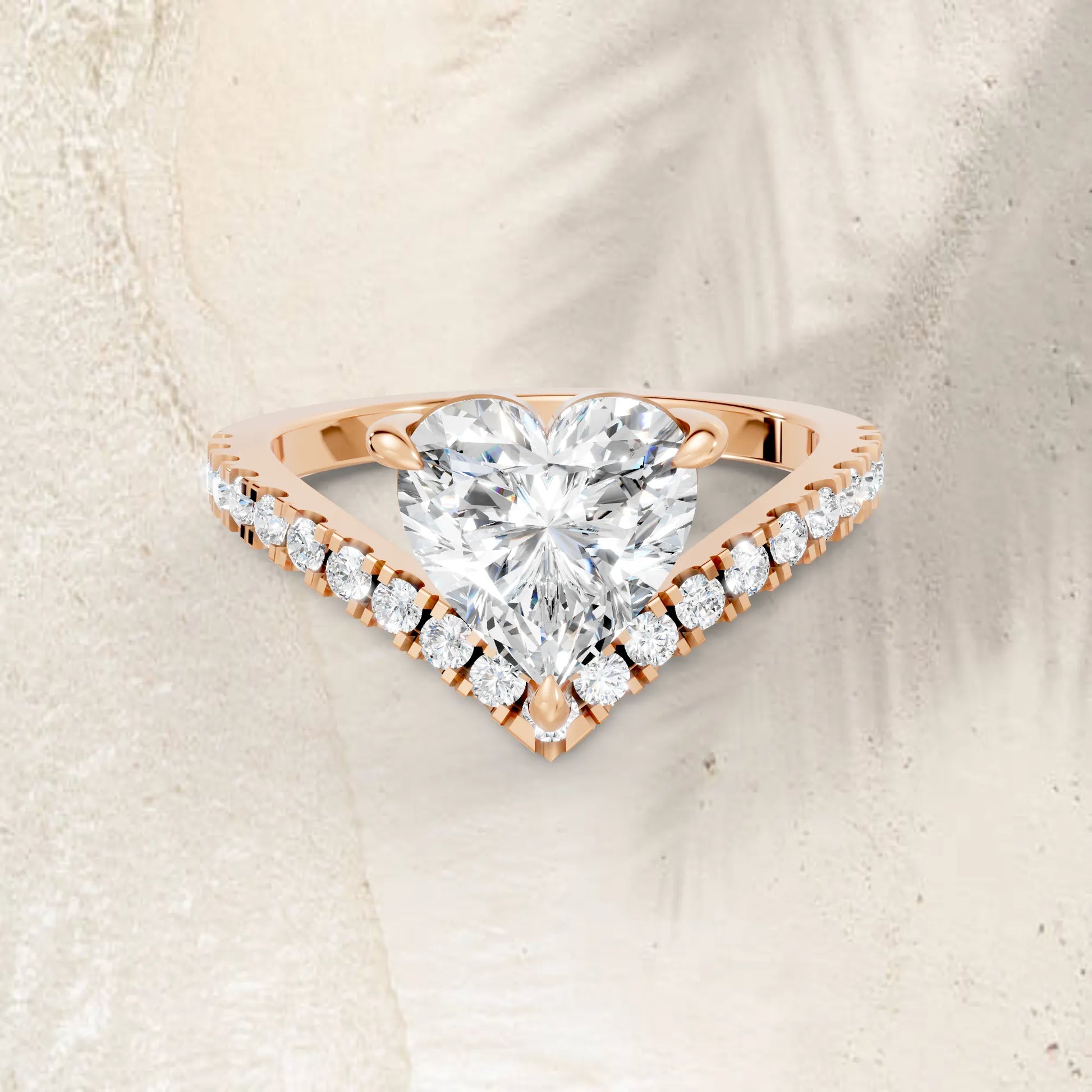 Crafted in solid 14k gold, this engagement ring features a romantic heart cut lab-grown diamond in a graceful V-shaped design. Sparkling side accents enhance its brilliance, creating a meaningful symbol of love and unity.