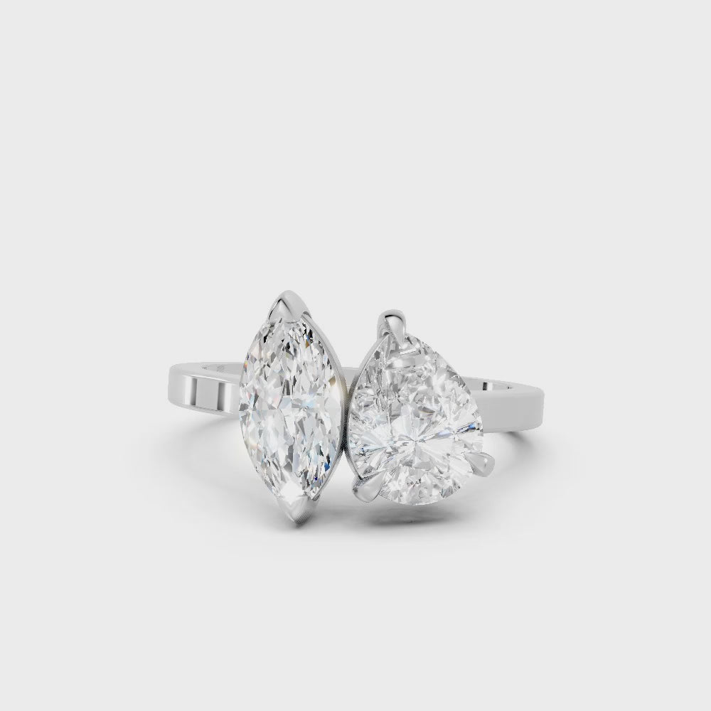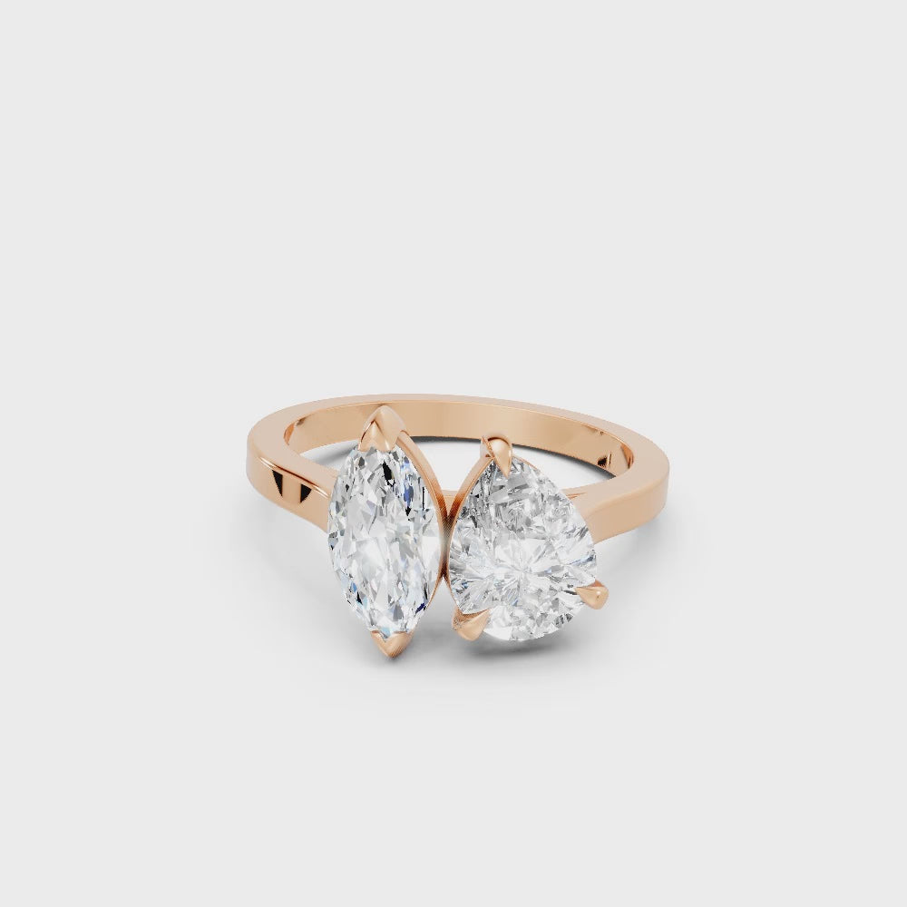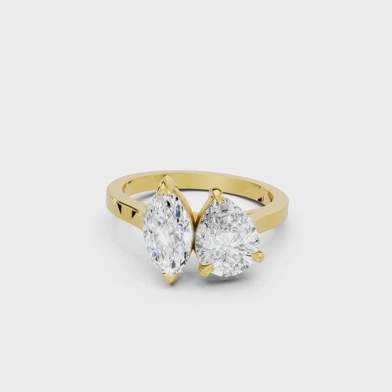 Celebrate timeless romance with this Toi et Moi ring, crafted in solid 14k gold. Featuring pear and marquise cut lab-grown diamonds, this “you and me” design symbolizes two souls united in love and elegance.