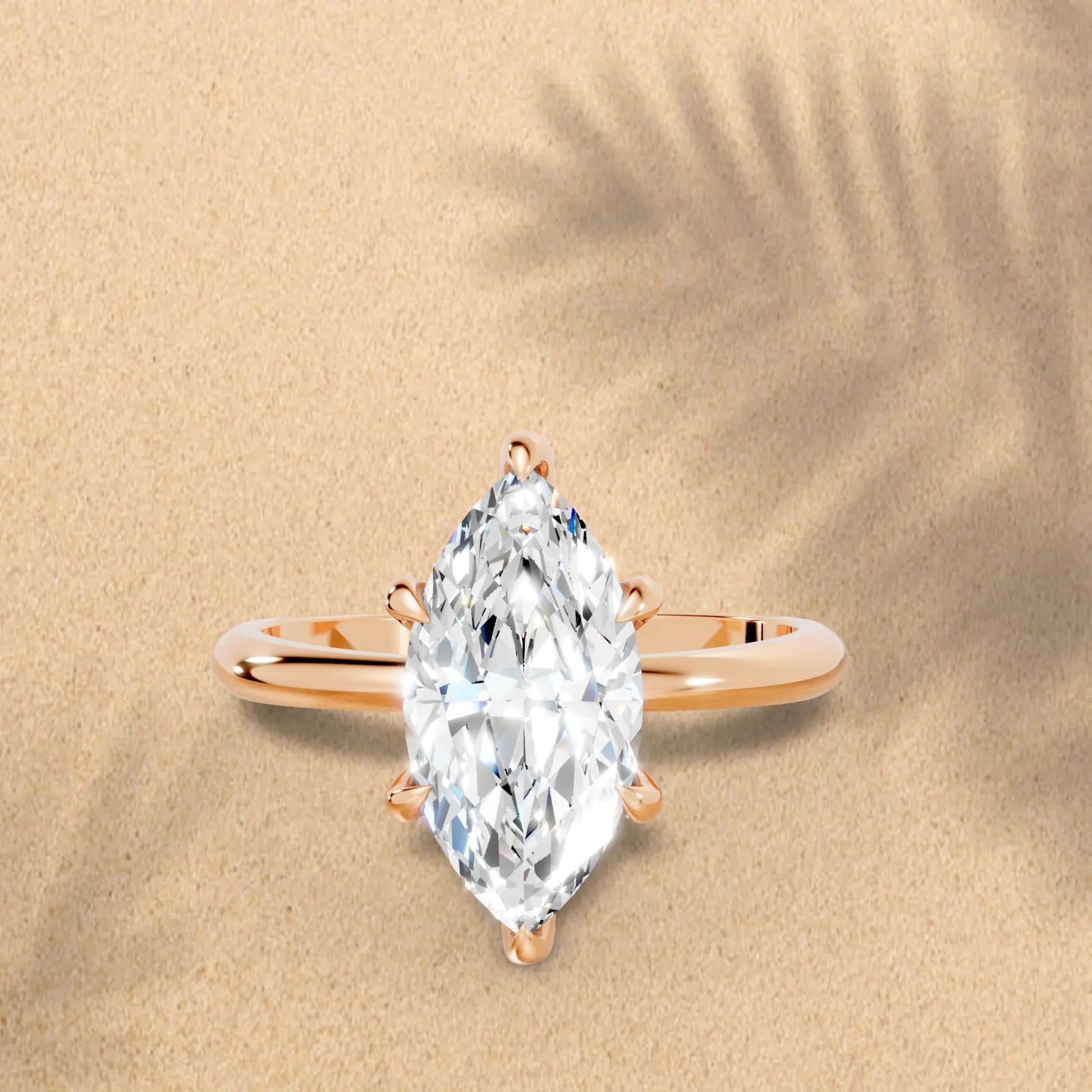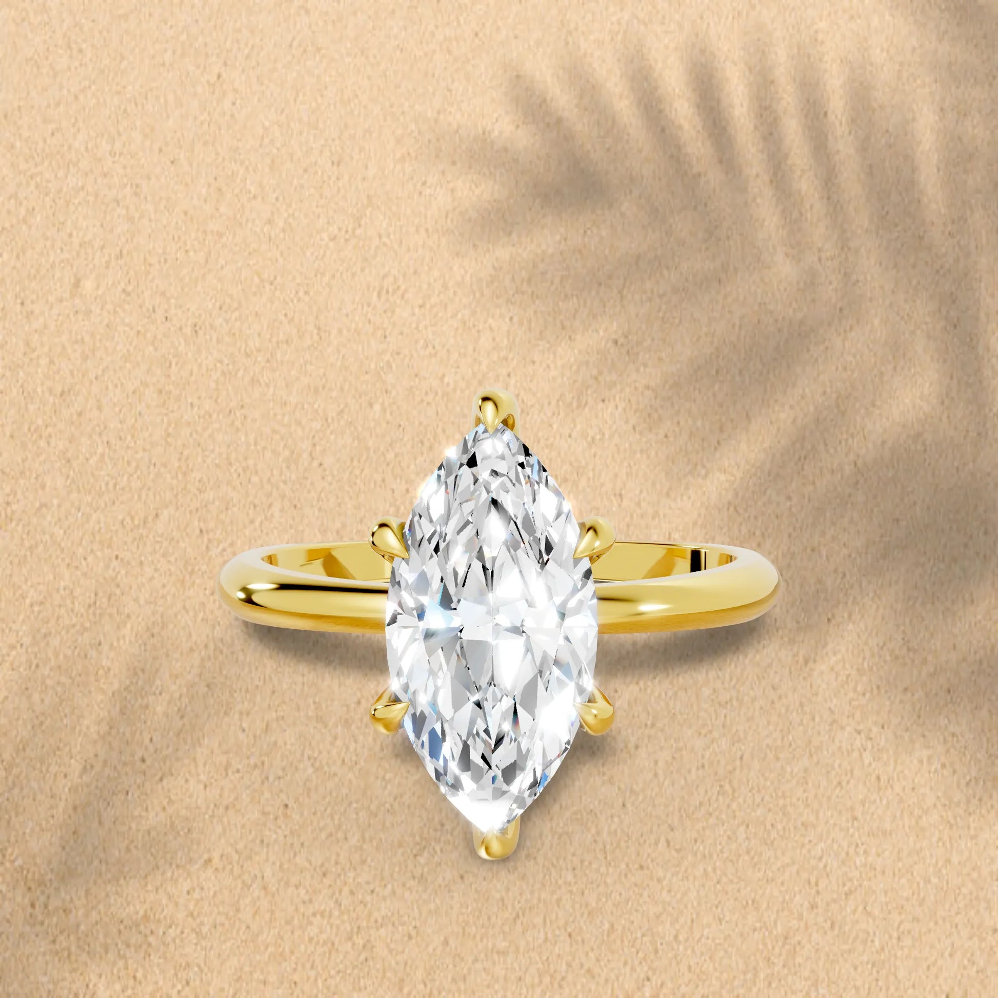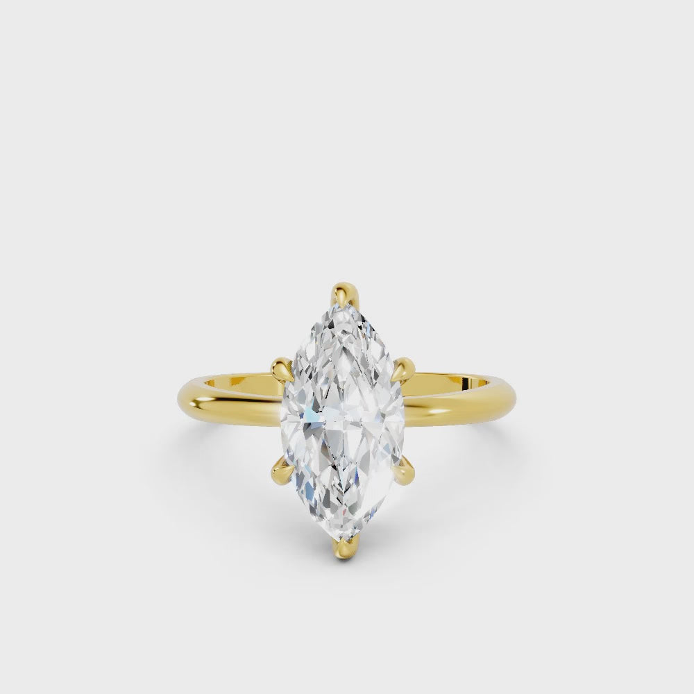 This marquise cut lab-grown diamond ring, crafted in solid 14k gold, is a timeless symbol of elegance and love. Its elongated shape enhances sparkle and creates a sophisticated, refined look.