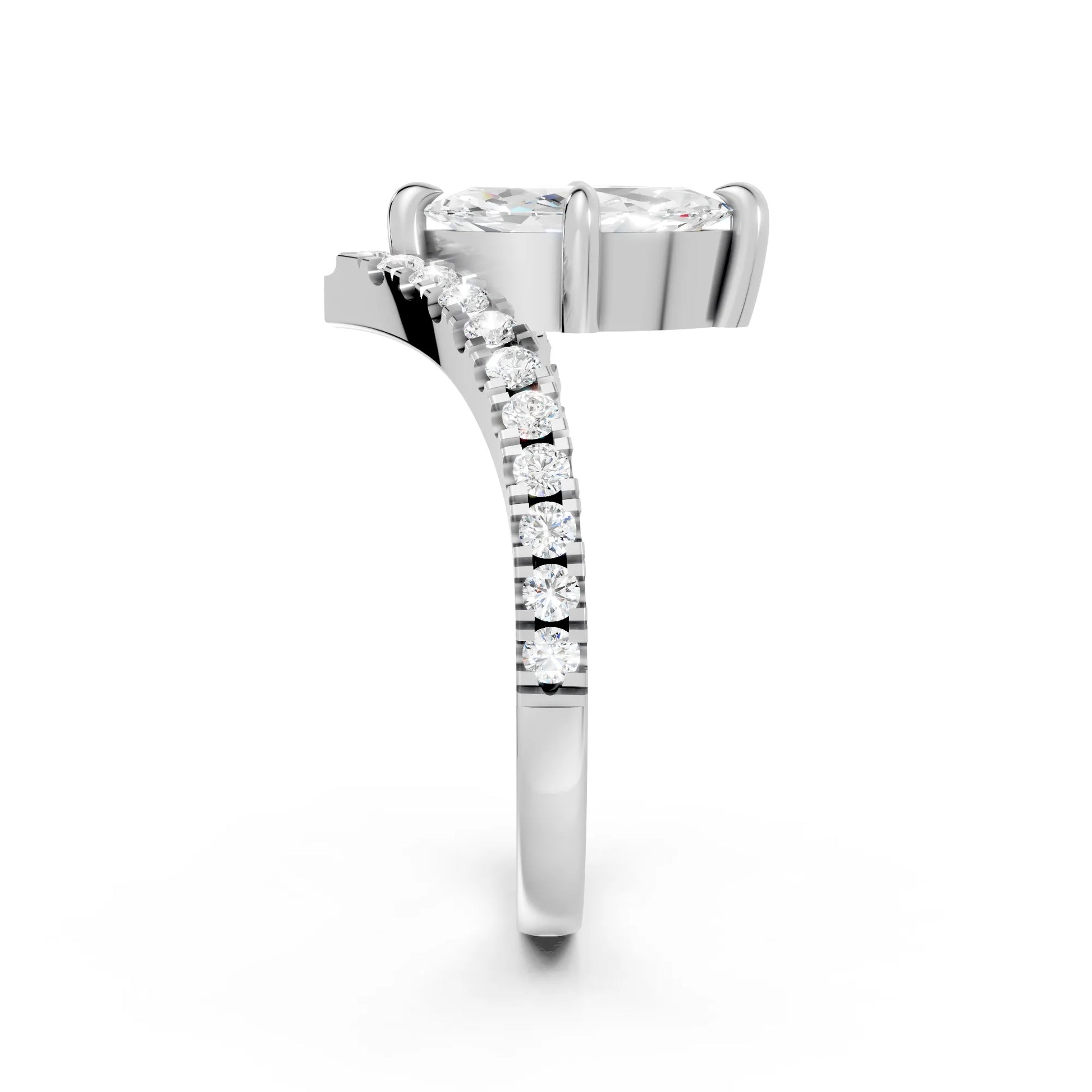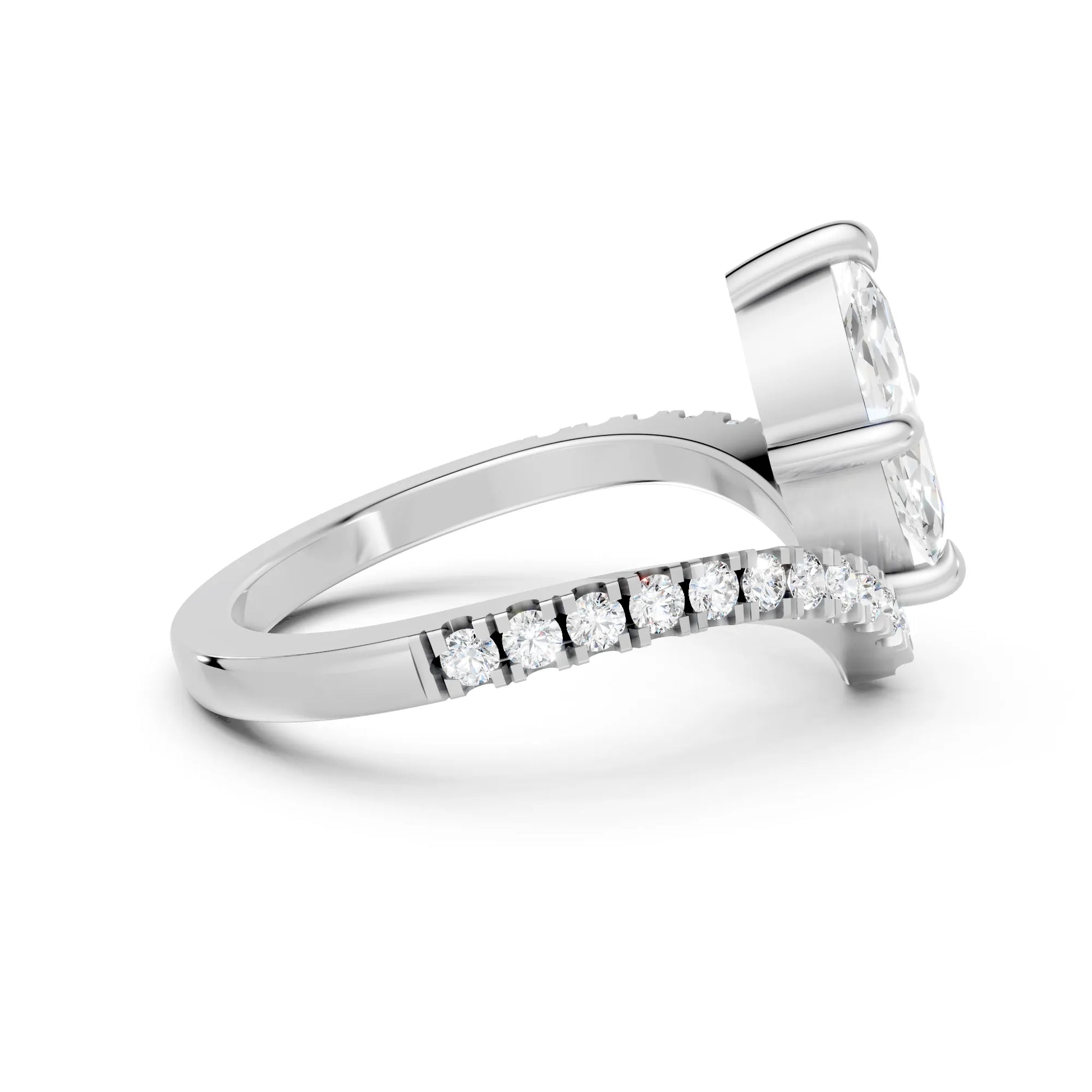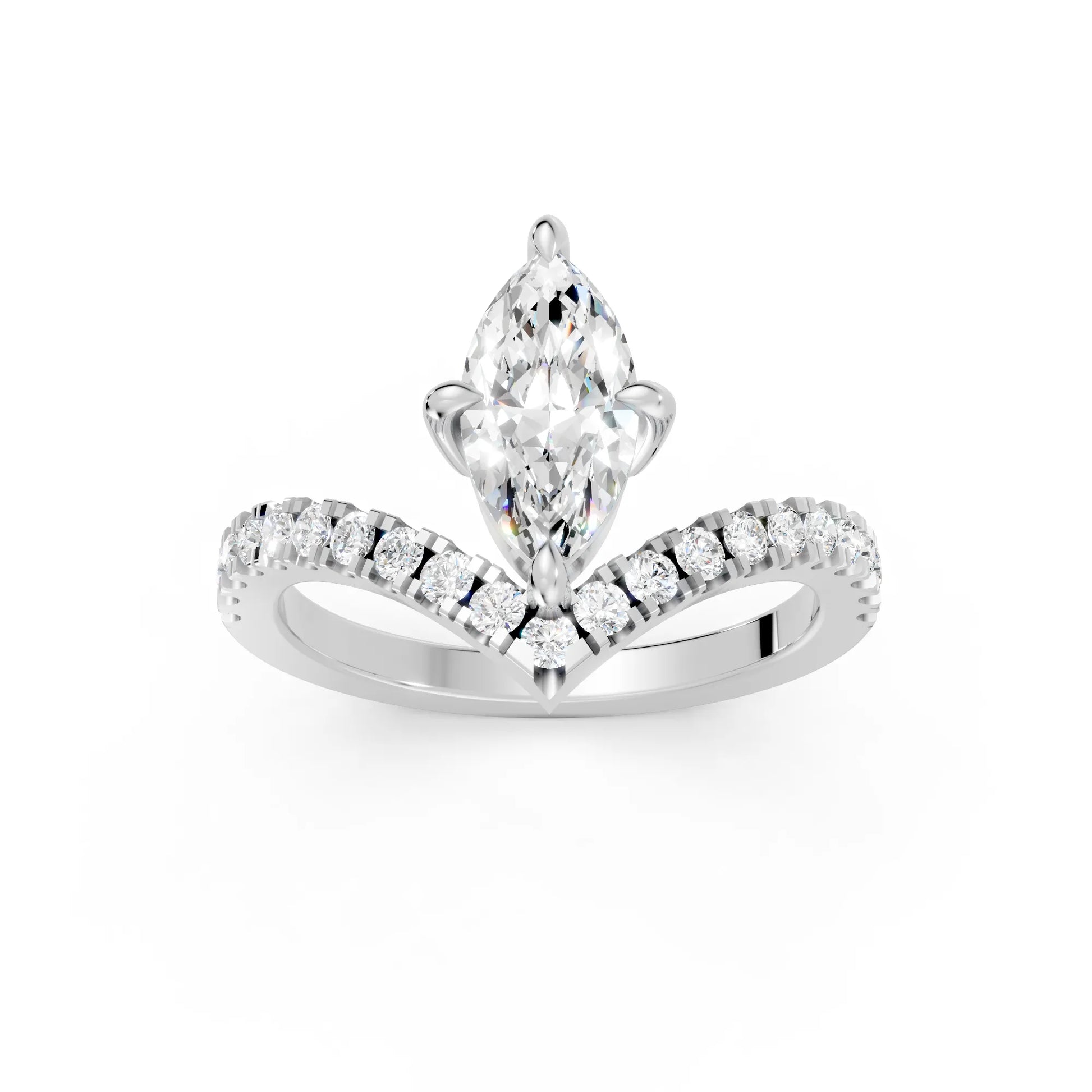 Crafted in solid 14k gold, this engagement ring features a marquise cut lab-grown diamond in a graceful V-shaped design. Sparkling side accents enhance its elongated brilliance, symbolizing love, harmony, and timeless beauty.