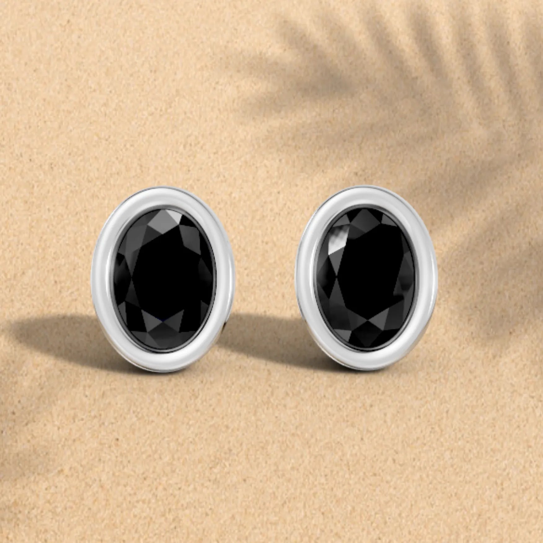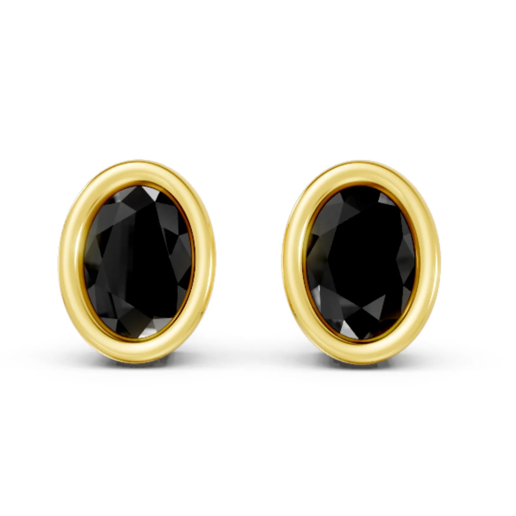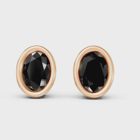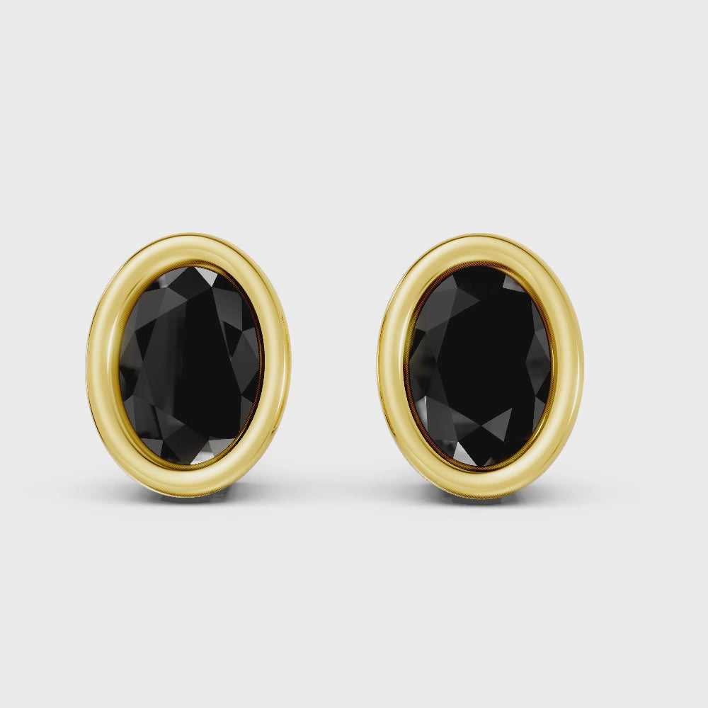 Crafted in solid 14k gold, this stud earring features a sleek oval cut natural black diamond in a smooth bezel setting. A sophisticated design that combines bold sparkle with modern minimalism.