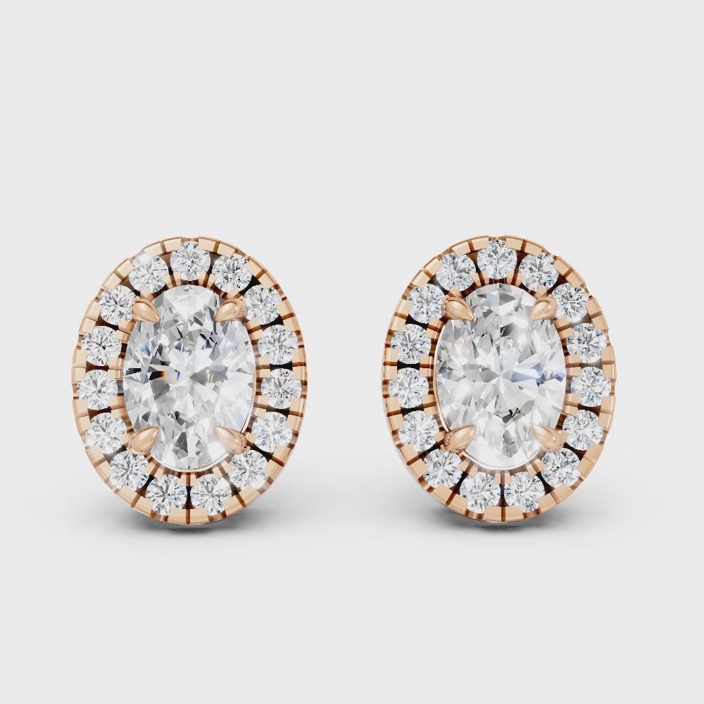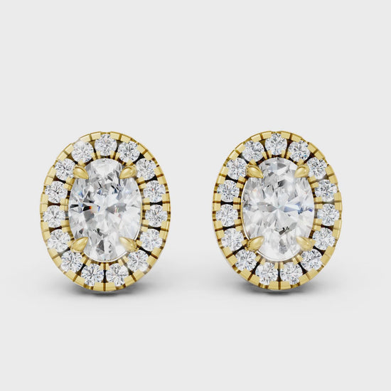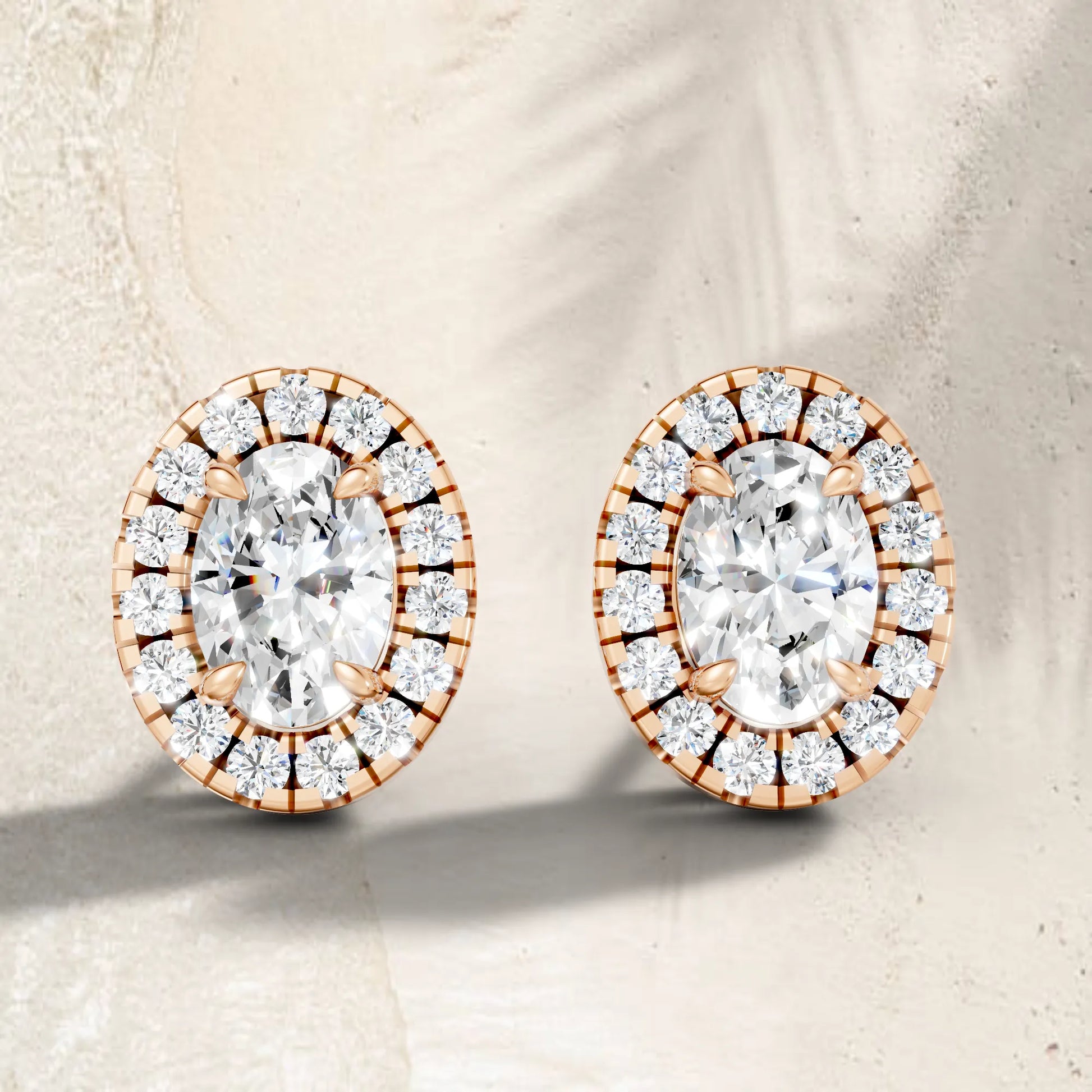 This oval cut lab-grown diamond stud, set in solid 14k gold, is surrounded by a radiant halo that amplifies its graceful sparkle. A versatile design that shines beautifully for both daily wear and special occasions.