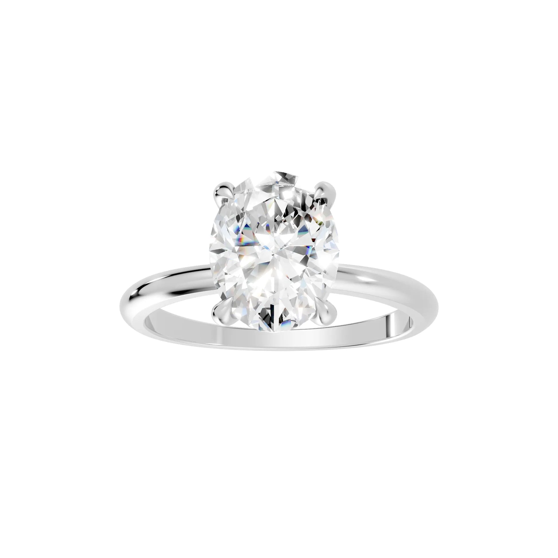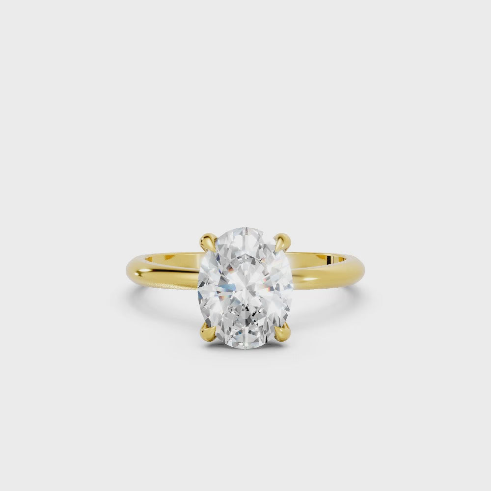 Celebrate timeless love with this oval cut lab-grown diamond ring, crafted in solid 14k gold. The secure prong setting enhances brilliance, letting light shine through for exceptional radiance and elegance.