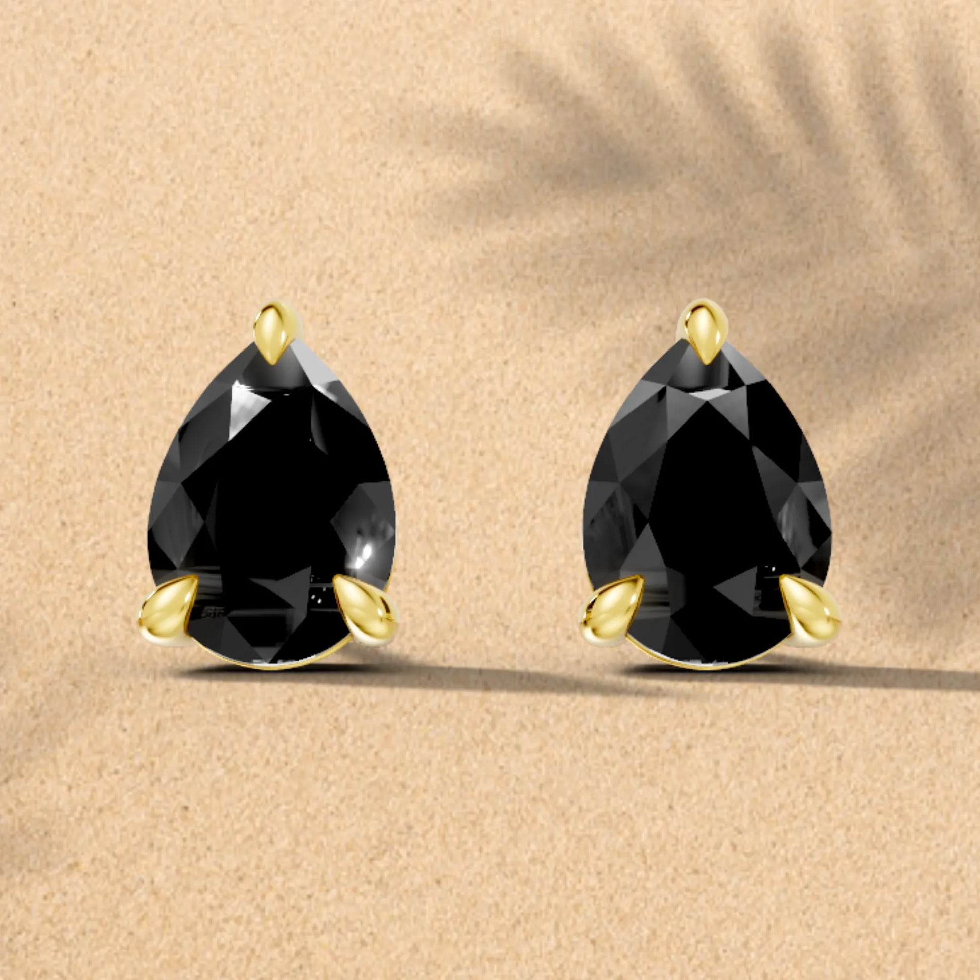 Crafted in solid 14k gold, this stud earring showcases a striking pear cut natural black diamond in a sleek solitaire setting. A bold teardrop-inspired design that combines modern edge with timeless elegance.