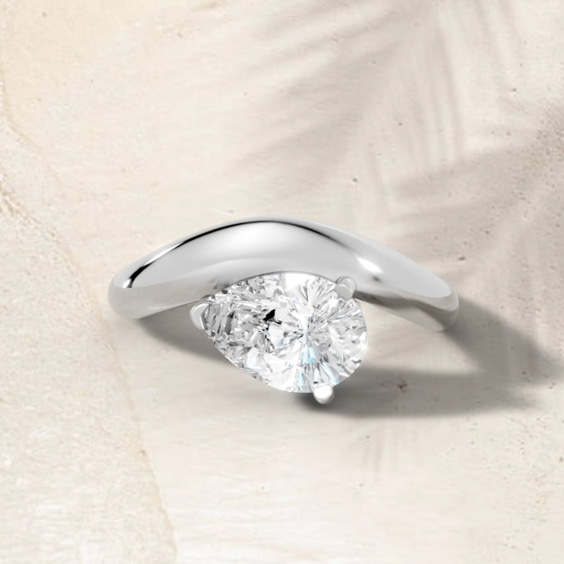 Elegant and unique, this ring features a sparkling pear cut lab-grown diamond set in solid 14k gold. Designed with a soft cloud-inspired setting, it symbolizes love, beauty, and sustainable luxury.