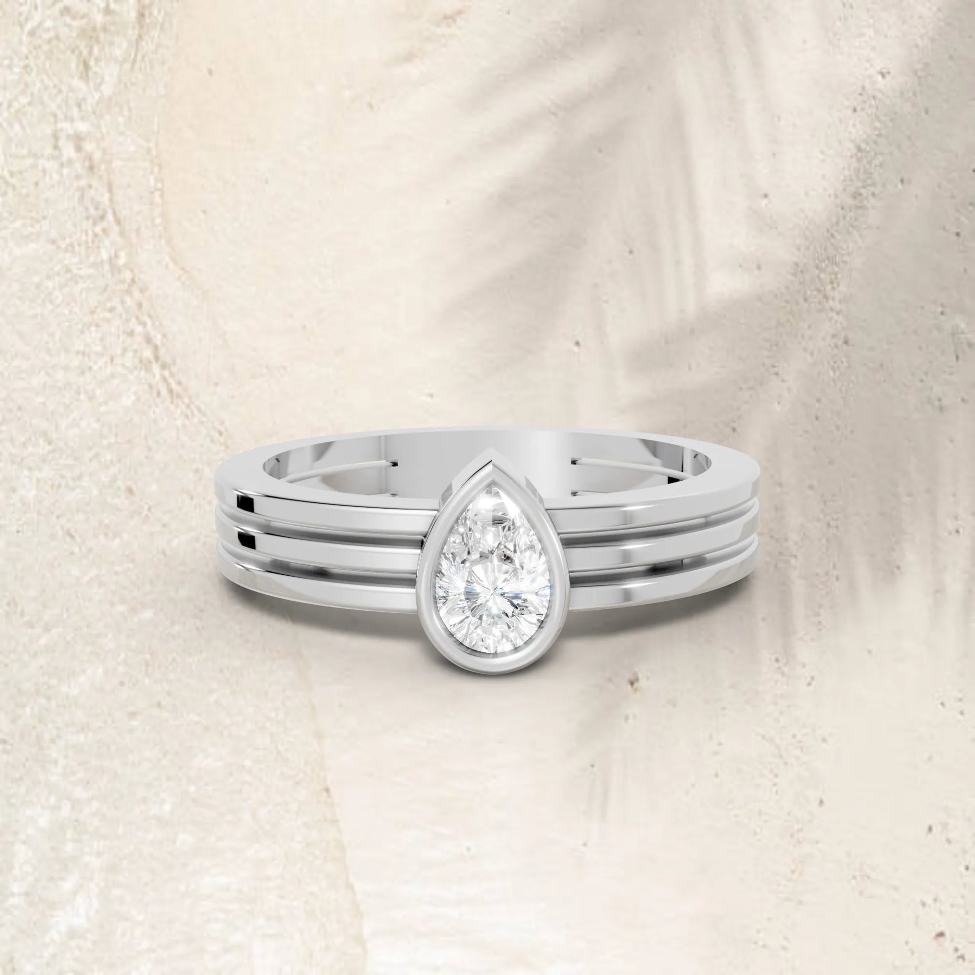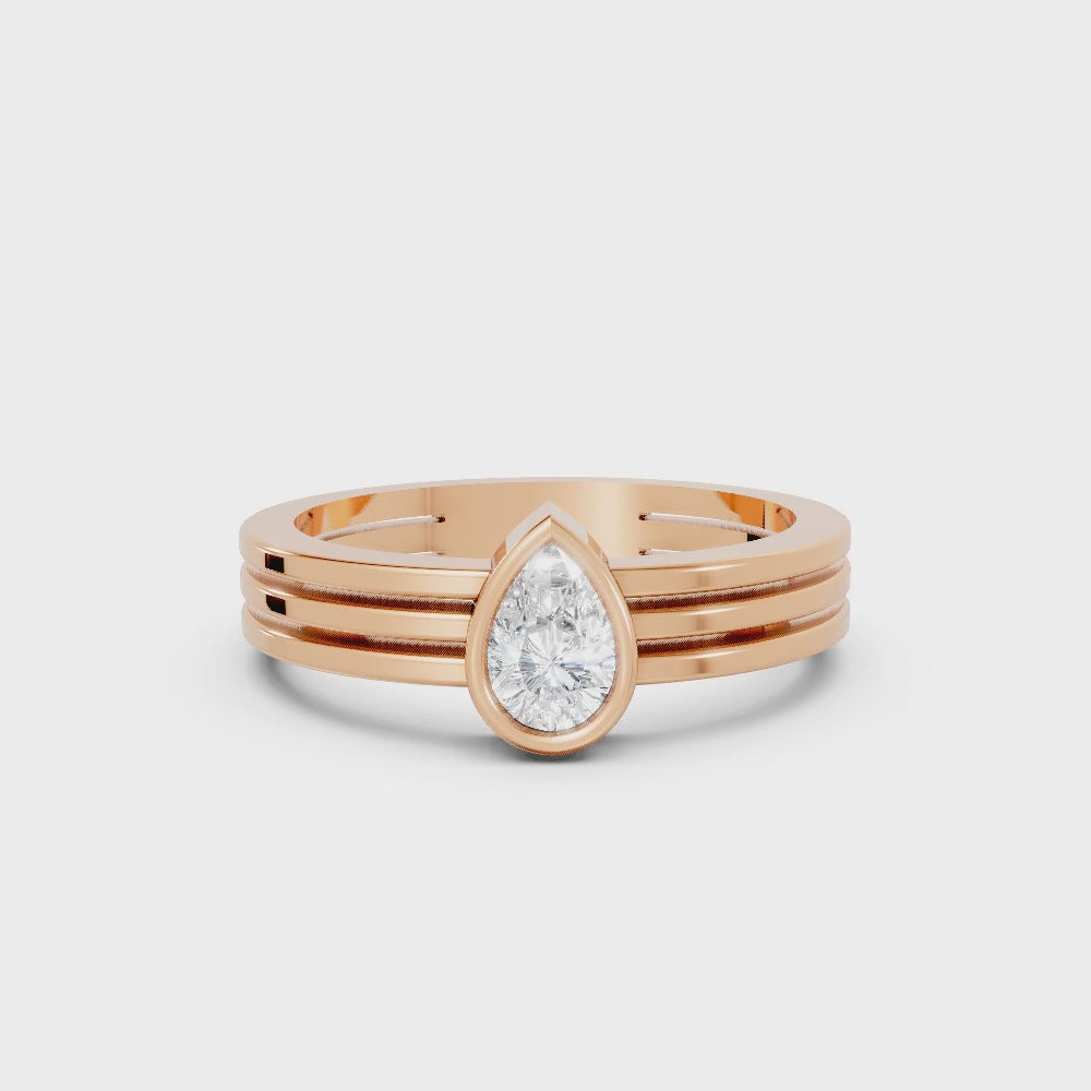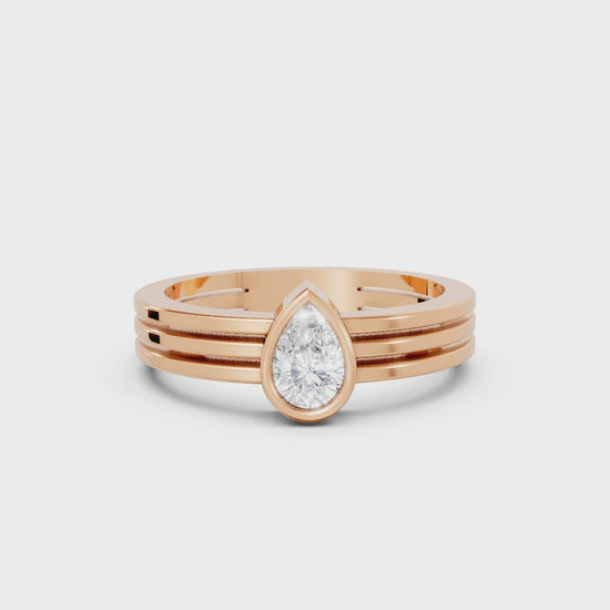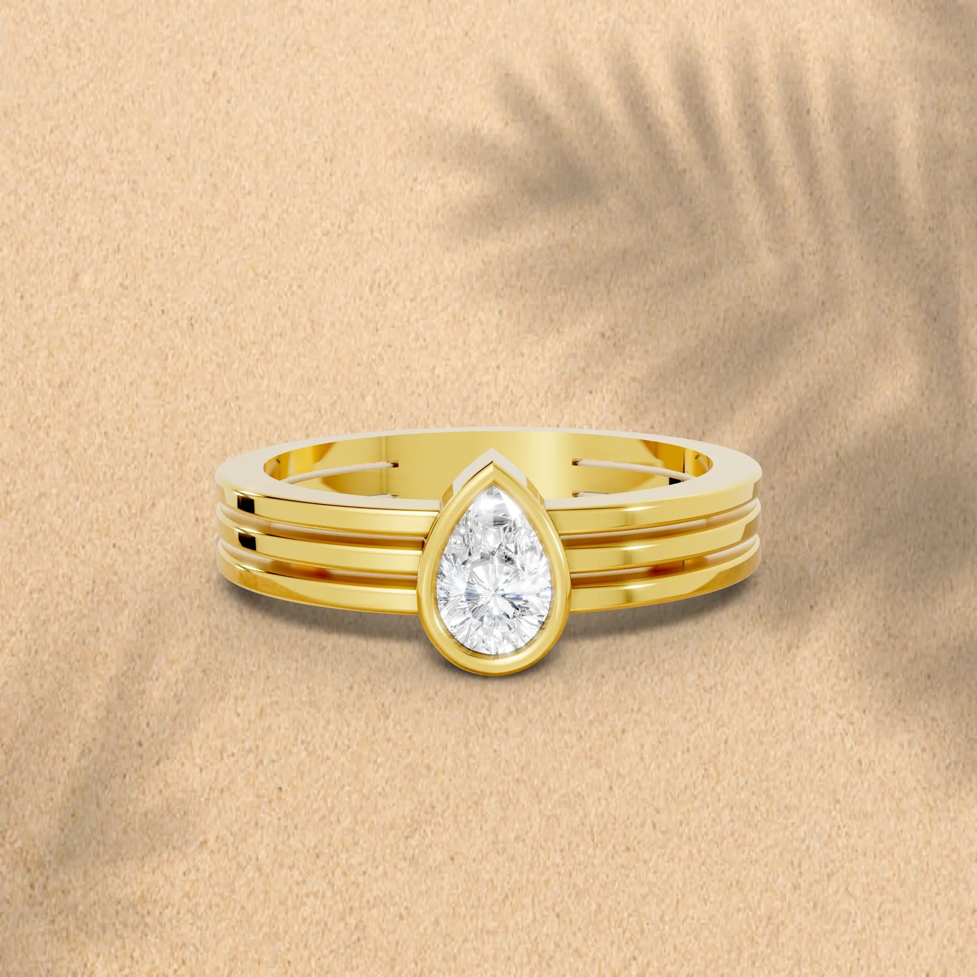Crafted in solid 14k gold, this engagement ring features a pear cut lab-grown diamond in a refined bezel setting. The elegant double band design adds modern sophistication, symbolizing unity, strength, and everlasting love.