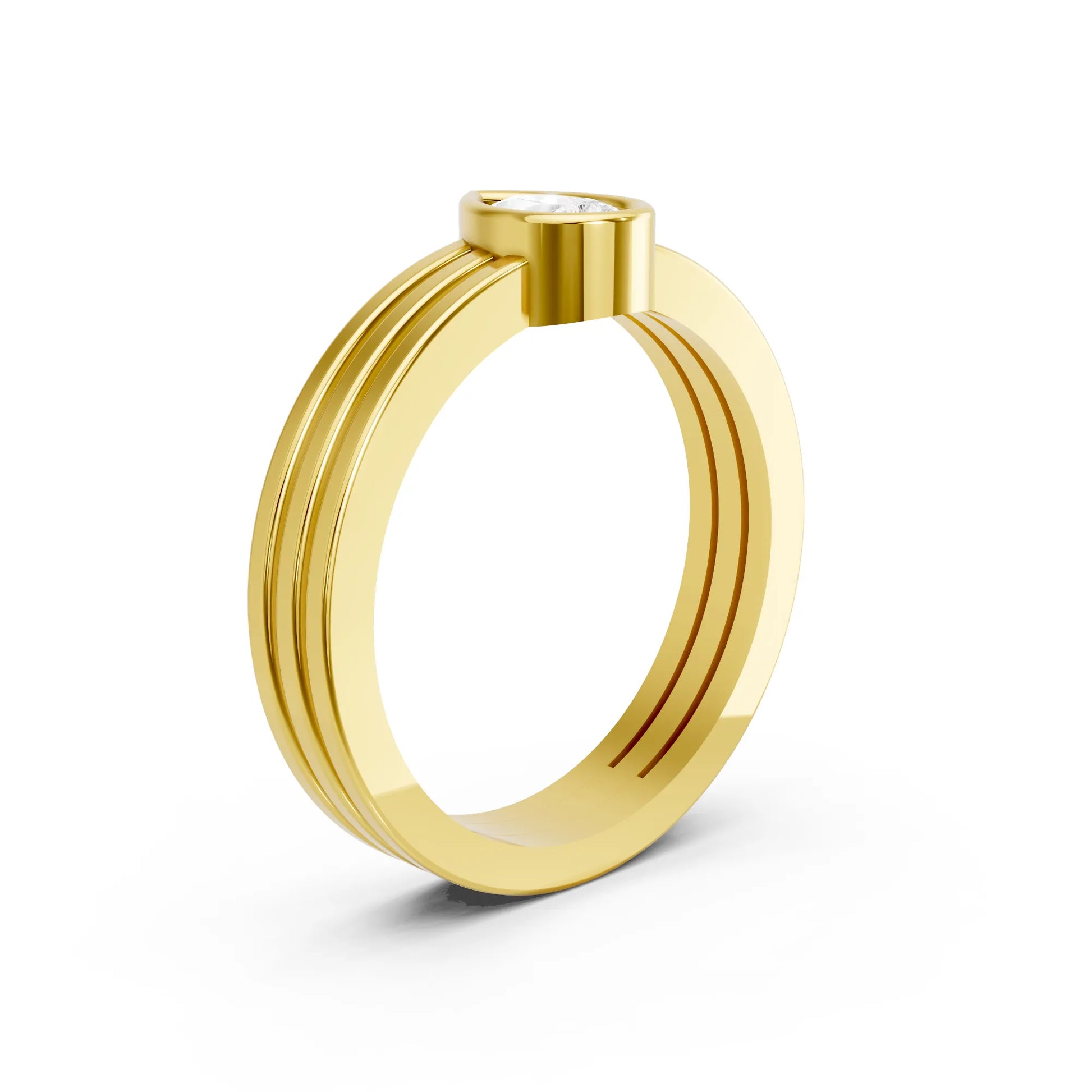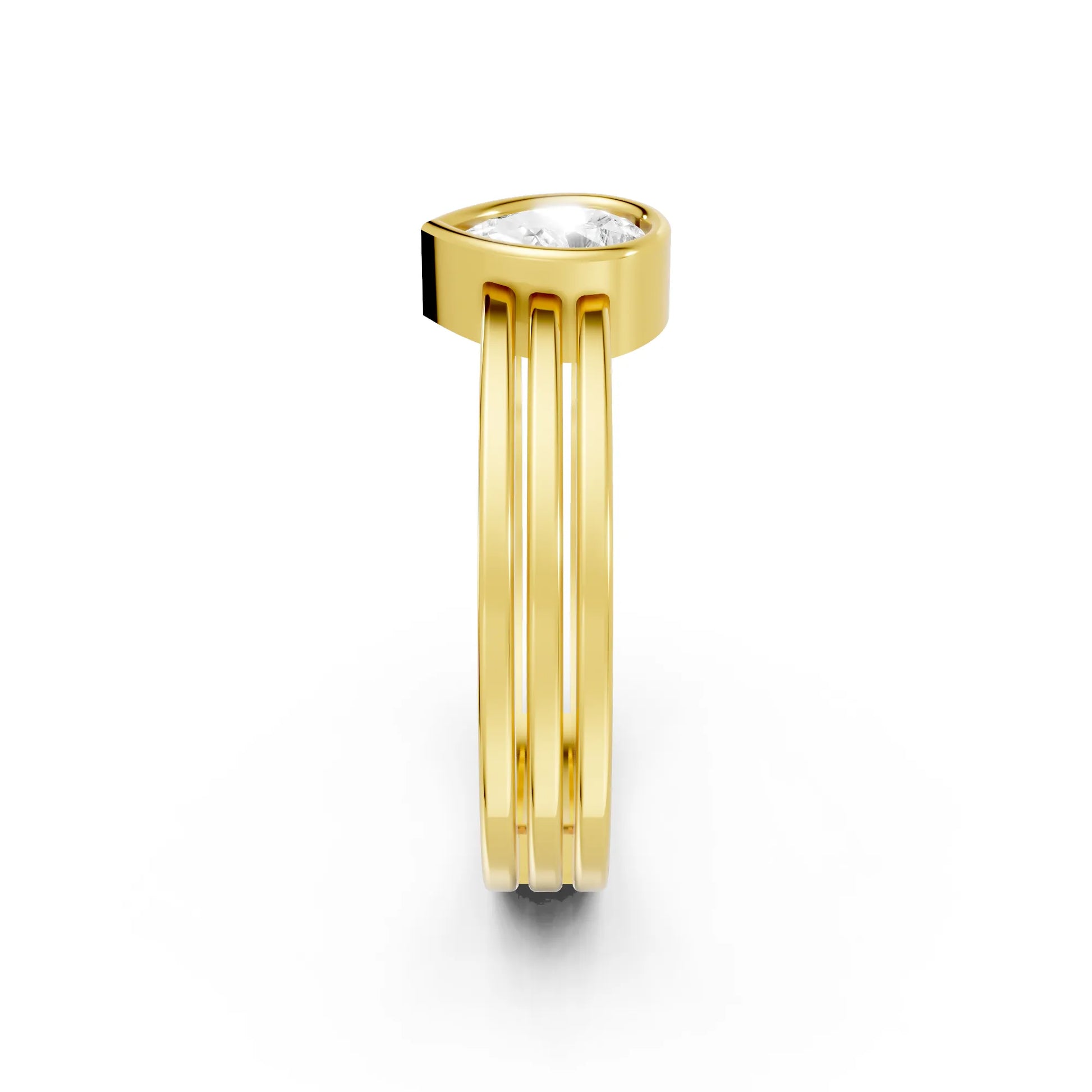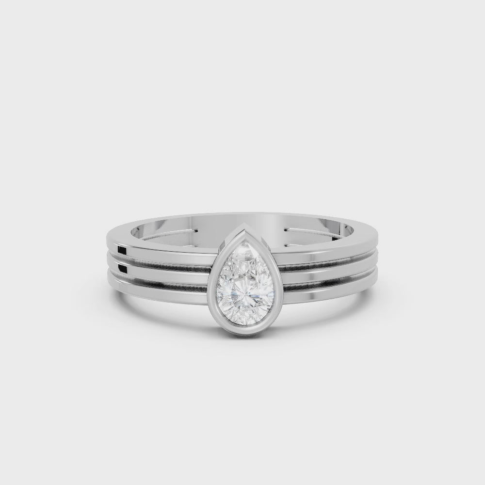Crafted in solid 14k gold, this engagement ring features a pear cut lab-grown diamond in a refined bezel setting. The elegant double band design adds modern sophistication, symbolizing unity, strength, and everlasting love.
