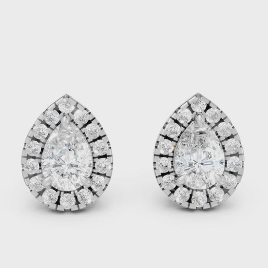 Crafted in solid 14k gold, this pear cut lab-grown diamond stud is accented with a sparkling halo that enhances its teardrop brilliance. A romantic yet modern design, perfect for gifting or adding everyday sparkle.