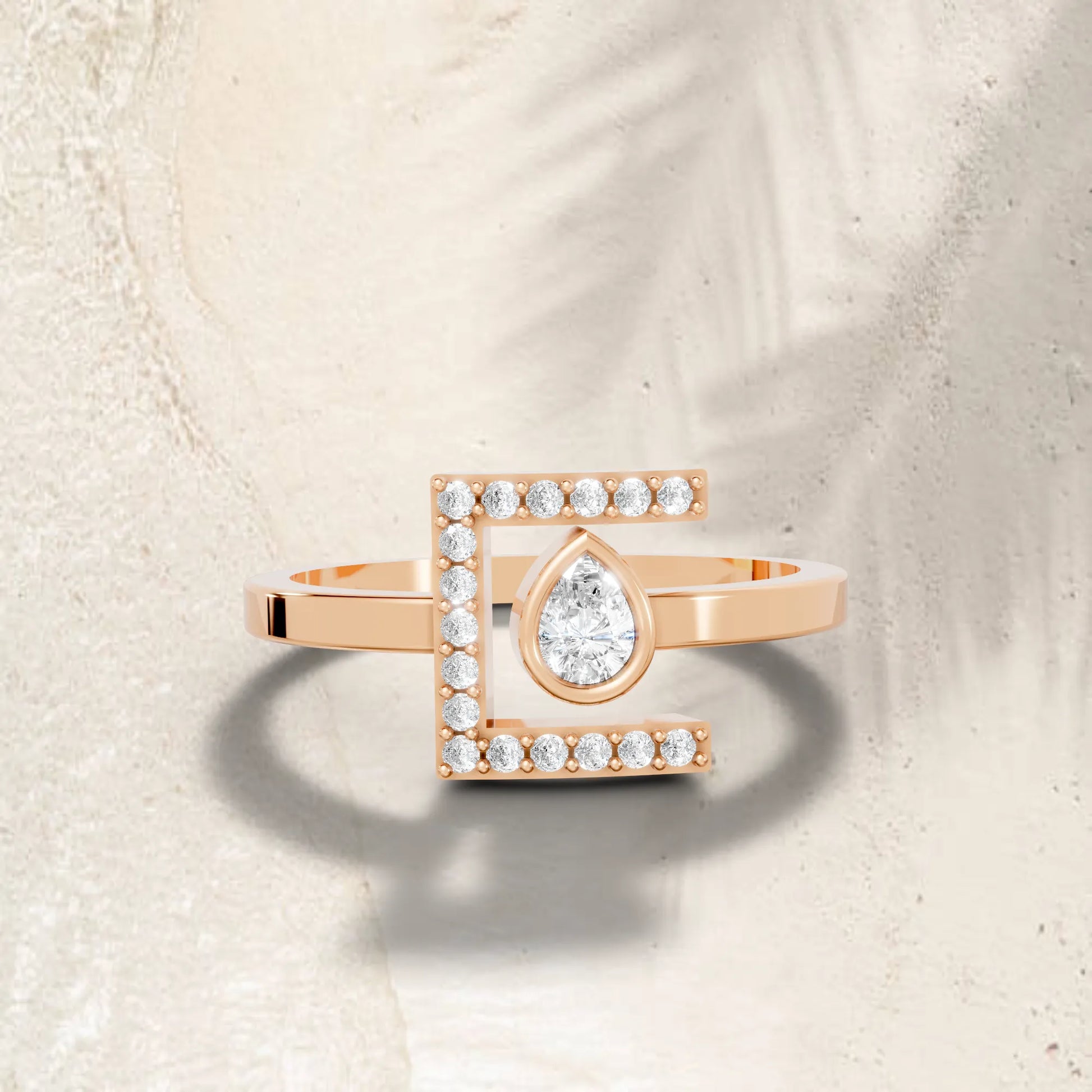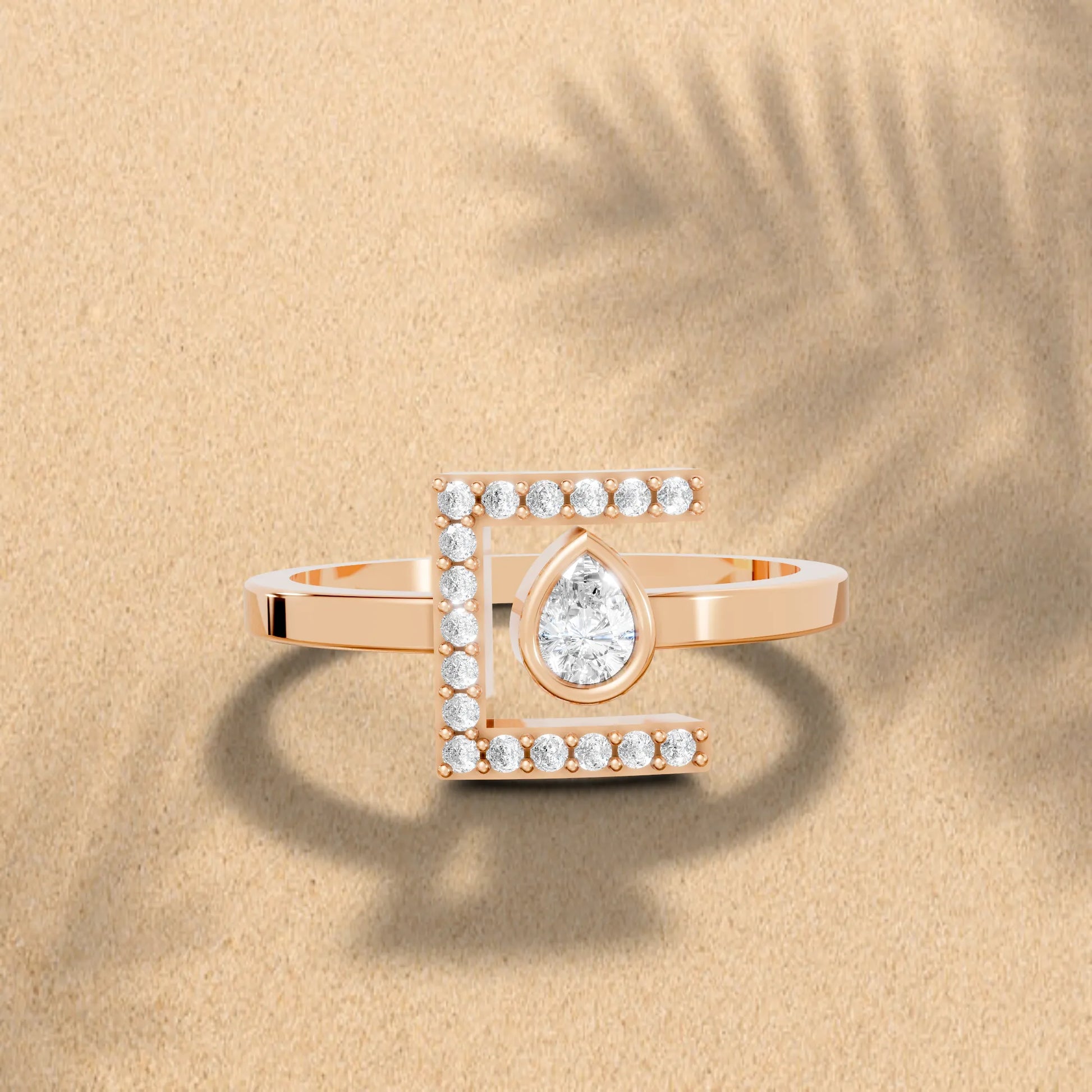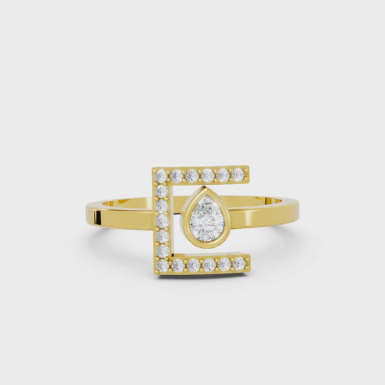 Crafted in solid 14k gold, this engagement ring showcases a graceful pear cut lab-grown diamond in a sleek bezel setting. Sparkling side accents add brilliance, blending modern elegance with timeless romance.