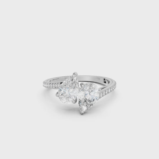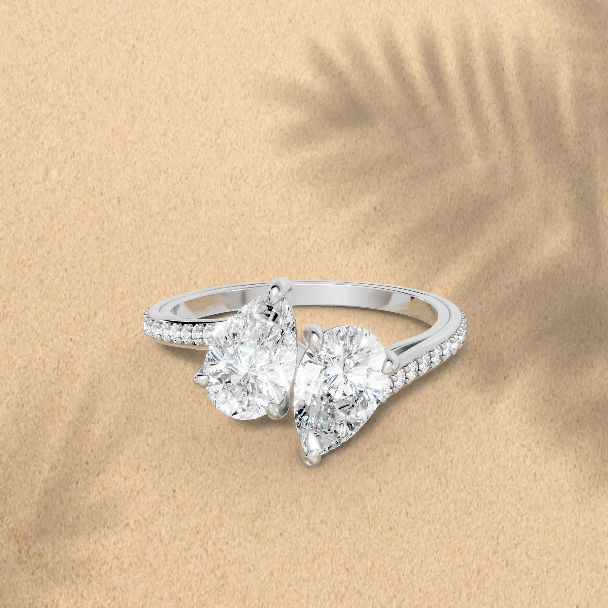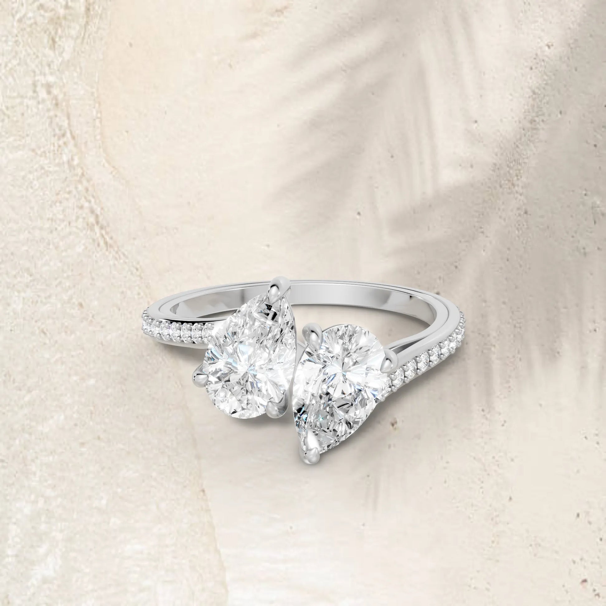 Celebrate timeless love with this pear cut Toi et Moi ring, crafted in solid 14k gold. Featuring two sparkling lab-grown diamonds in a prong setting with side accents, it symbolizes two souls united in elegance and brilliance.