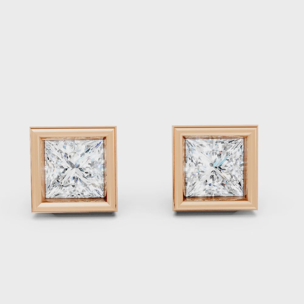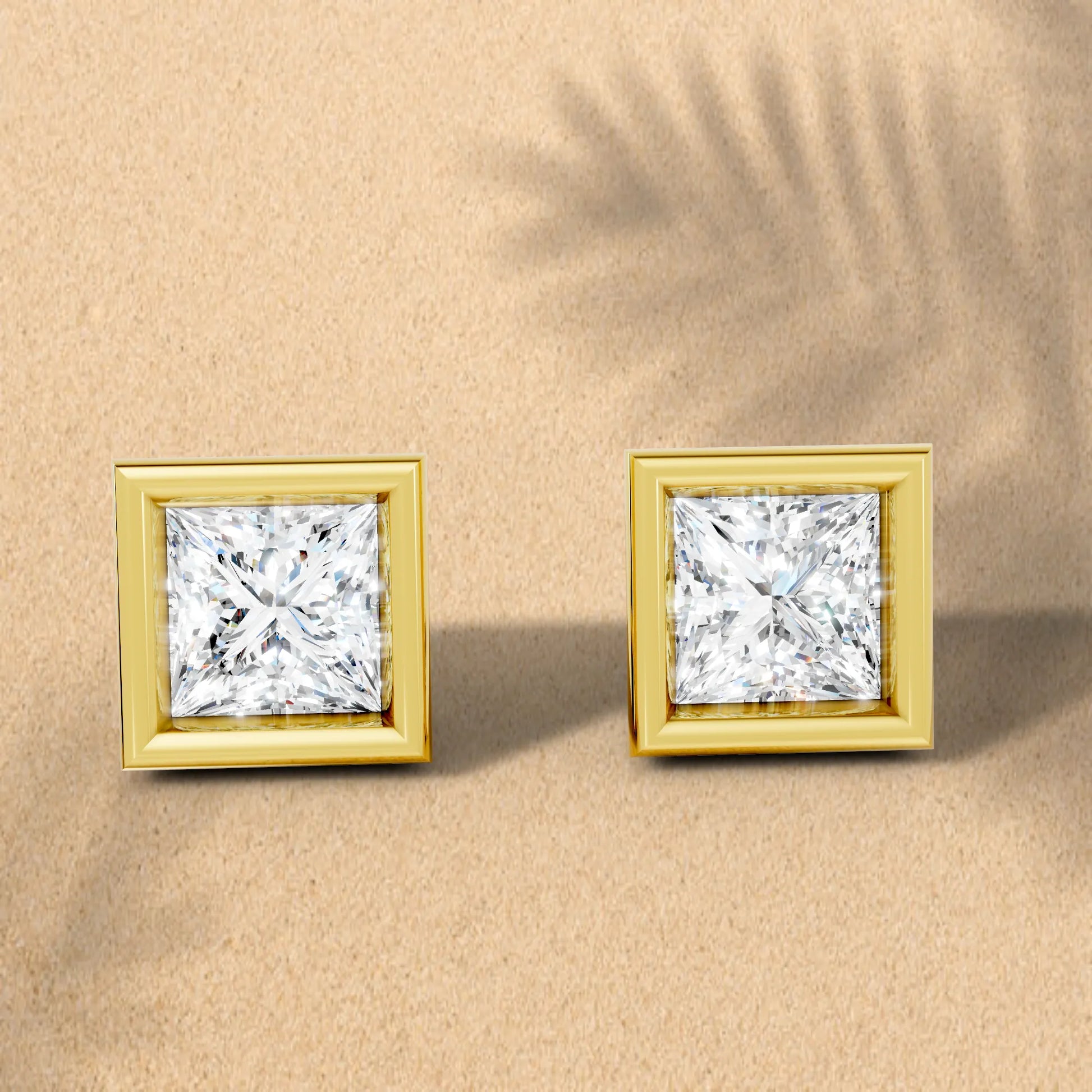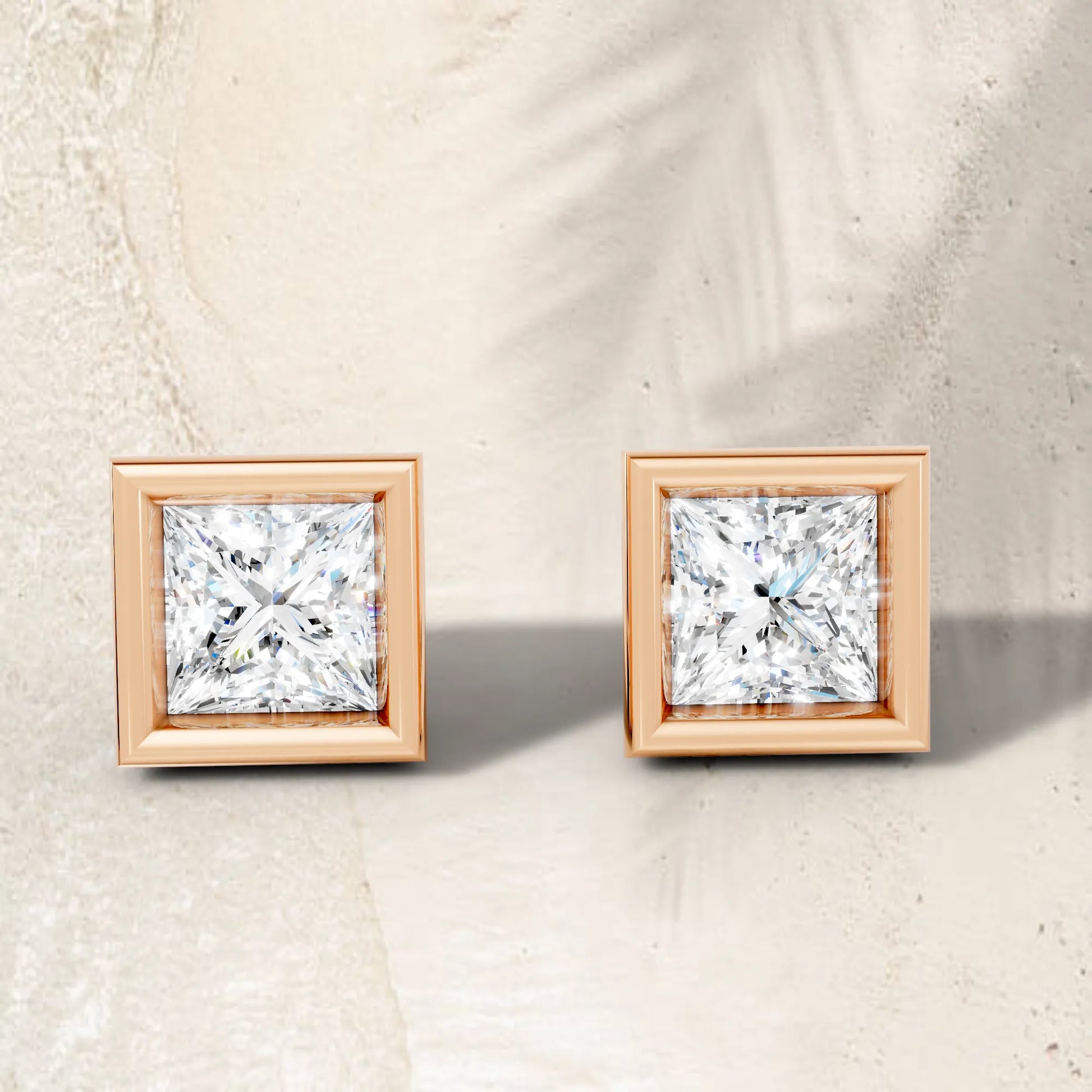 Crafted in solid 14k gold, this princess cut lab-grown diamond stud is framed in a sleek bezel setting that highlights its sharp sparkle. A modern yet versatile piece, perfect for daily wear or gifting.
