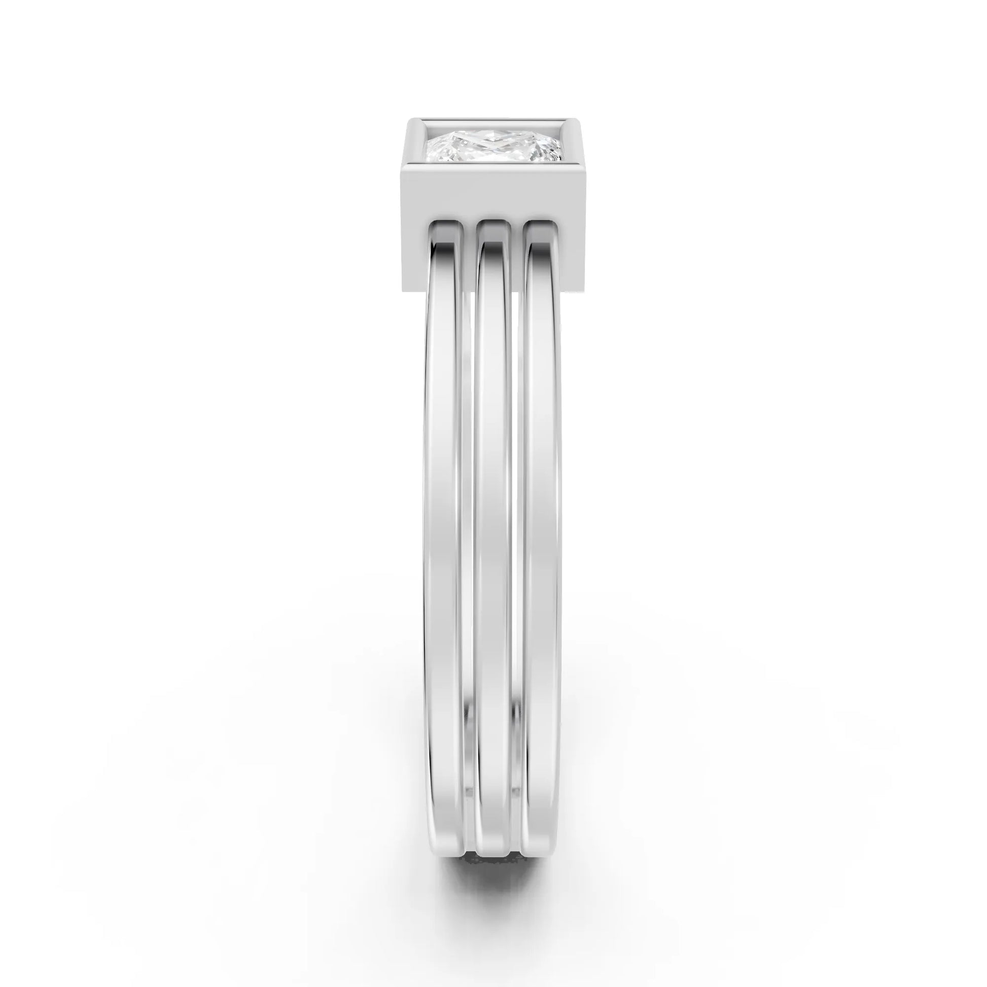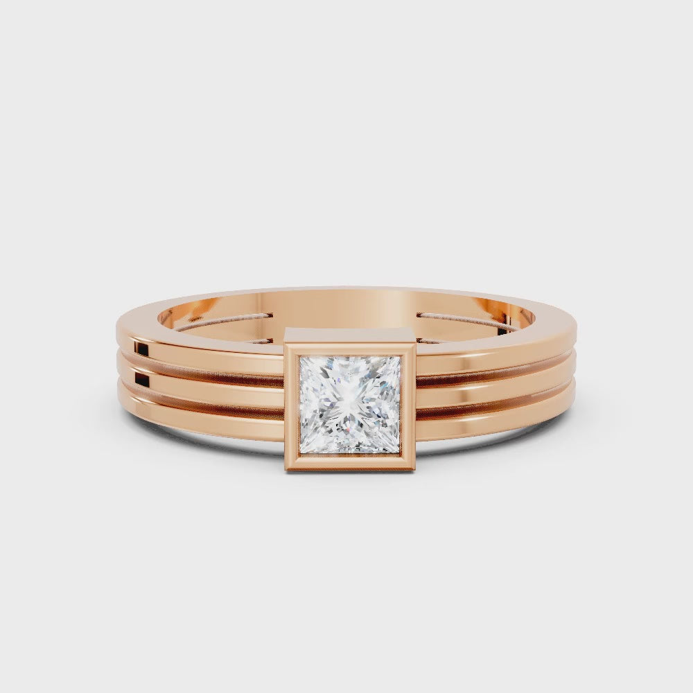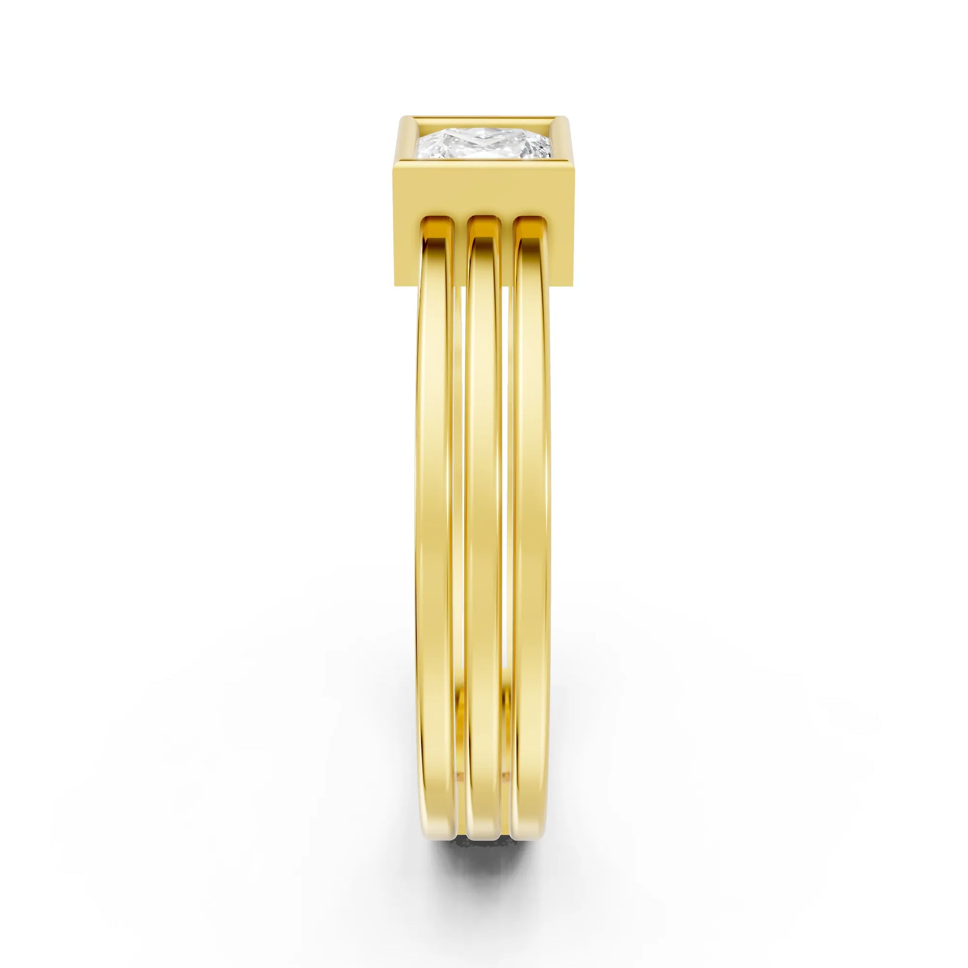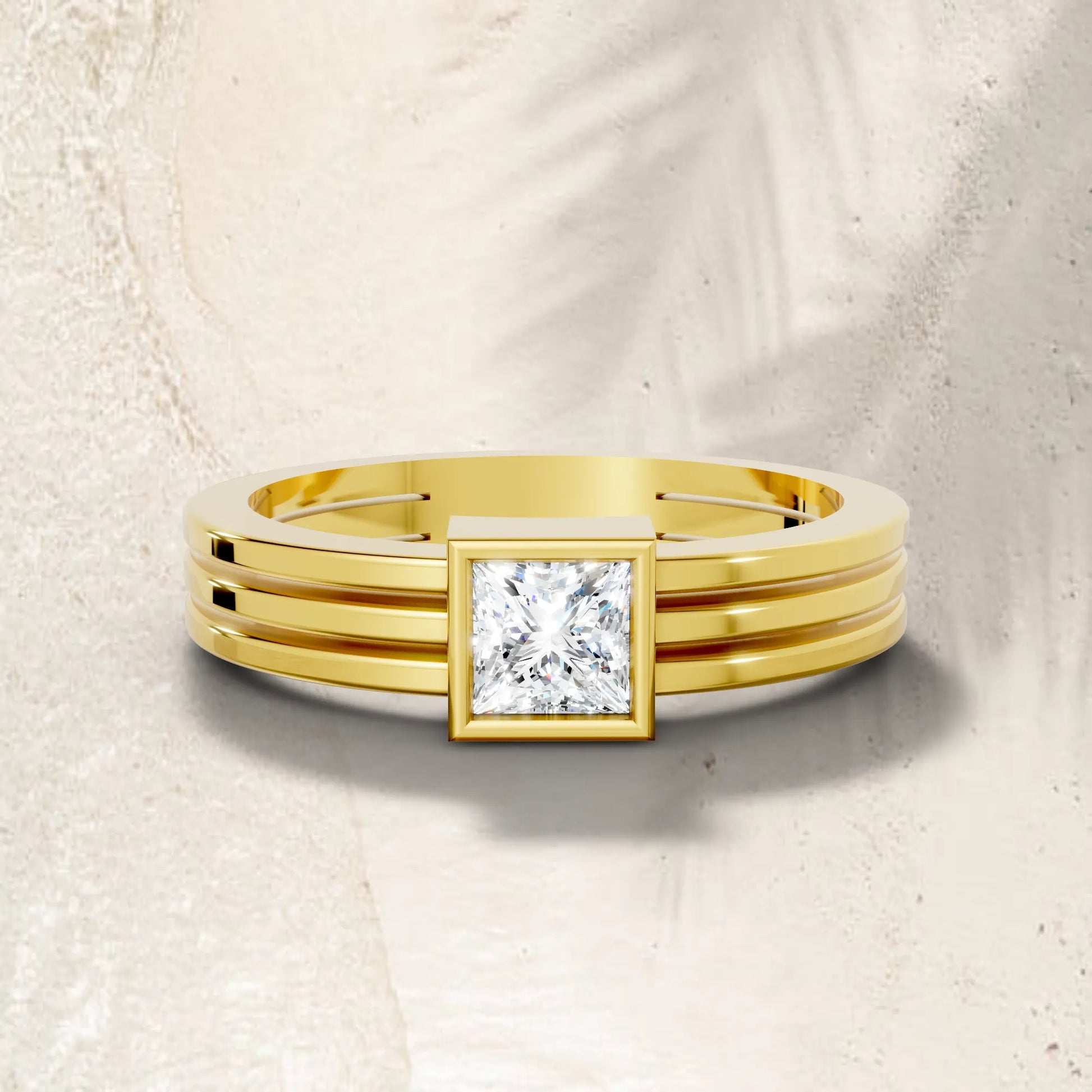 Crafted in solid 14k gold, this engagement ring features a princess cut lab-grown diamond in a refined bezel setting. The modern double band design adds strength and brilliance, symbolizing unity and everlasting love.