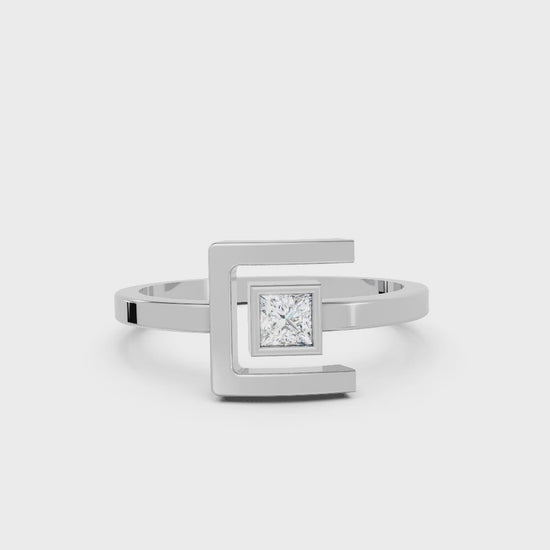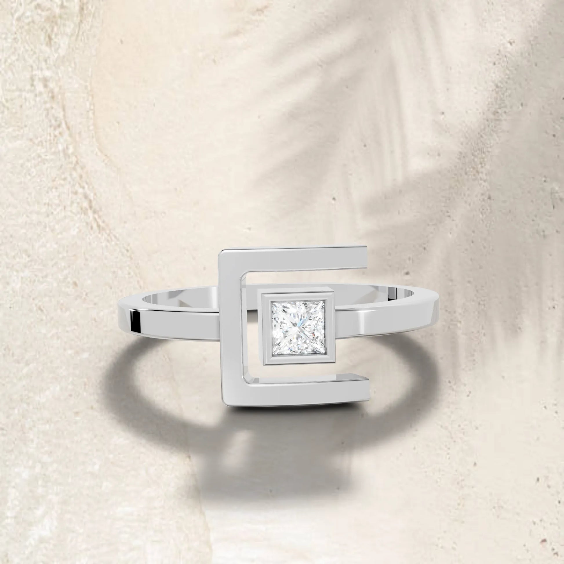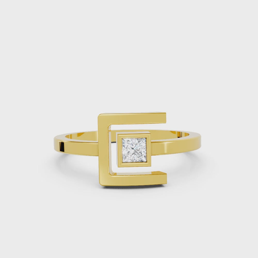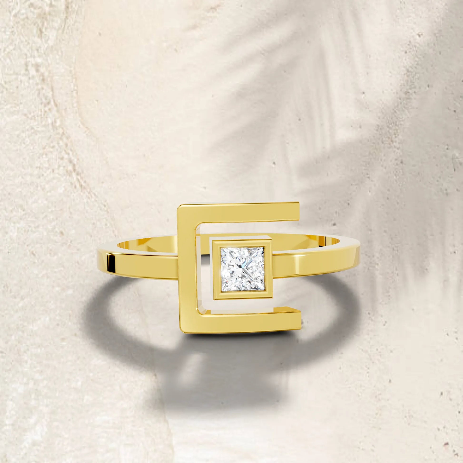 Crafted in solid 14k gold, this engagement ring showcases a princess cut lab-grown diamond in a sleek bezel setting. A modern geometric design that highlights sharp brilliance while symbolizing love and commitment.