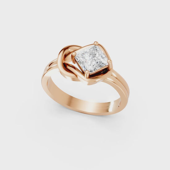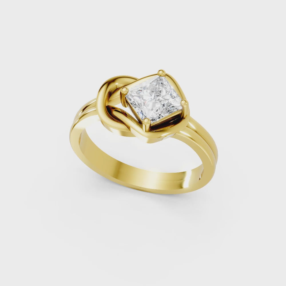 Celebrate everlasting love with this princess cut lab-grown diamond ring, crafted in solid 14k gold. Featuring an IGI-certified diamond and elegant knot design, it symbolizes eternal connection with sustainable brilliance.