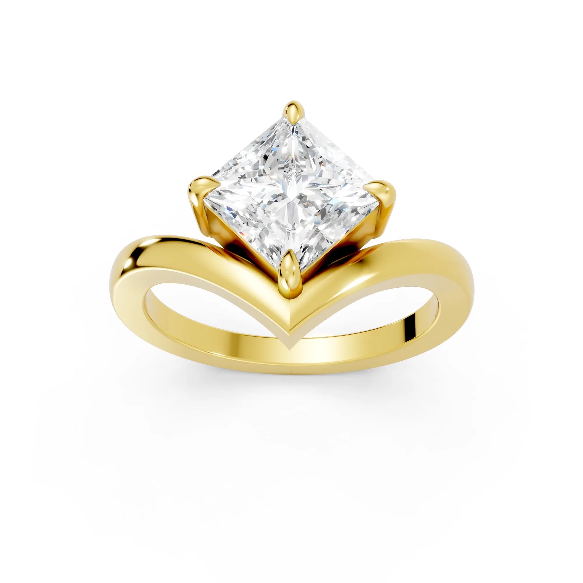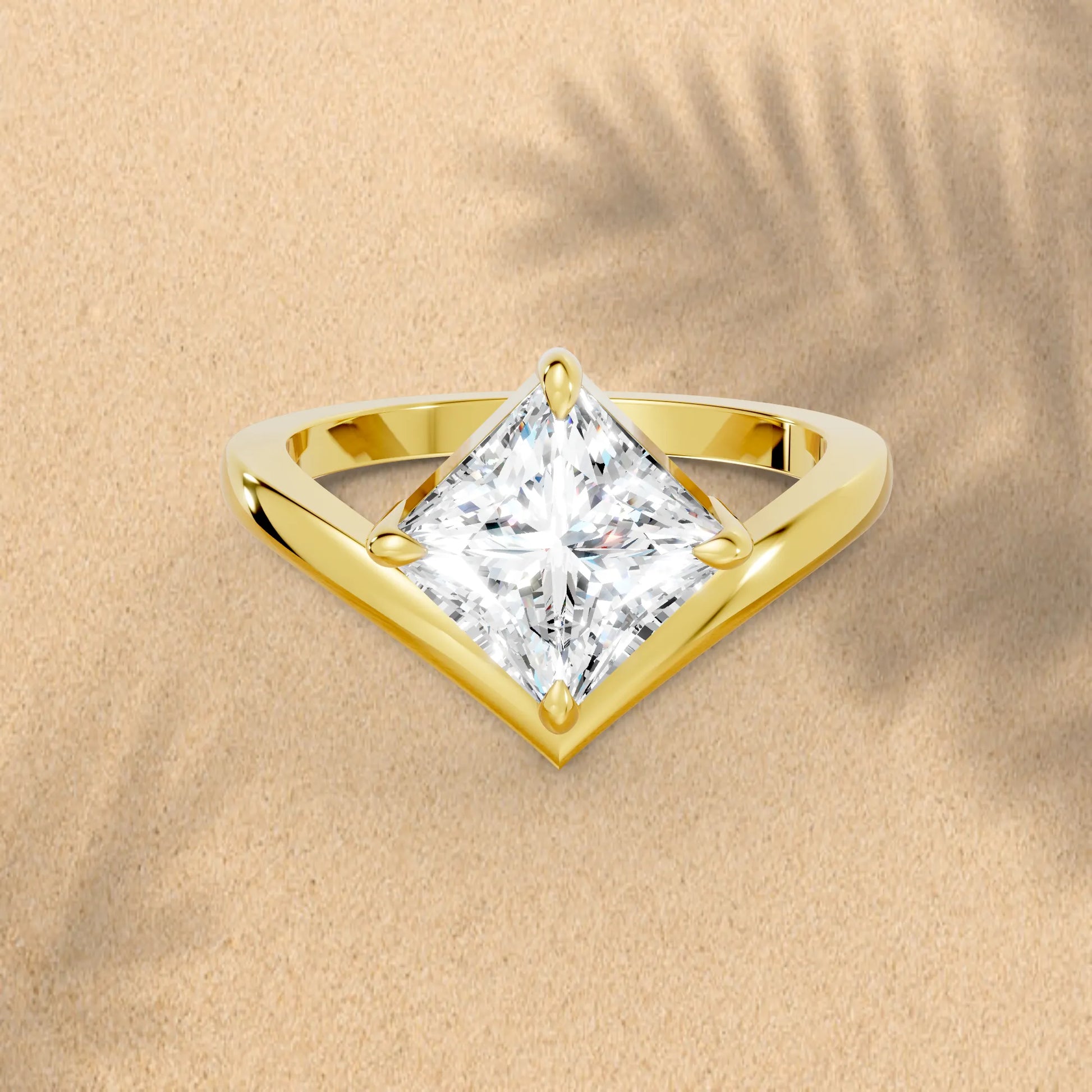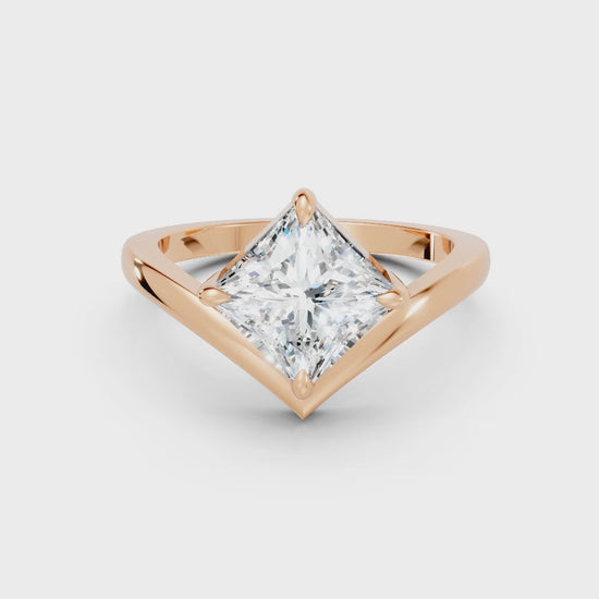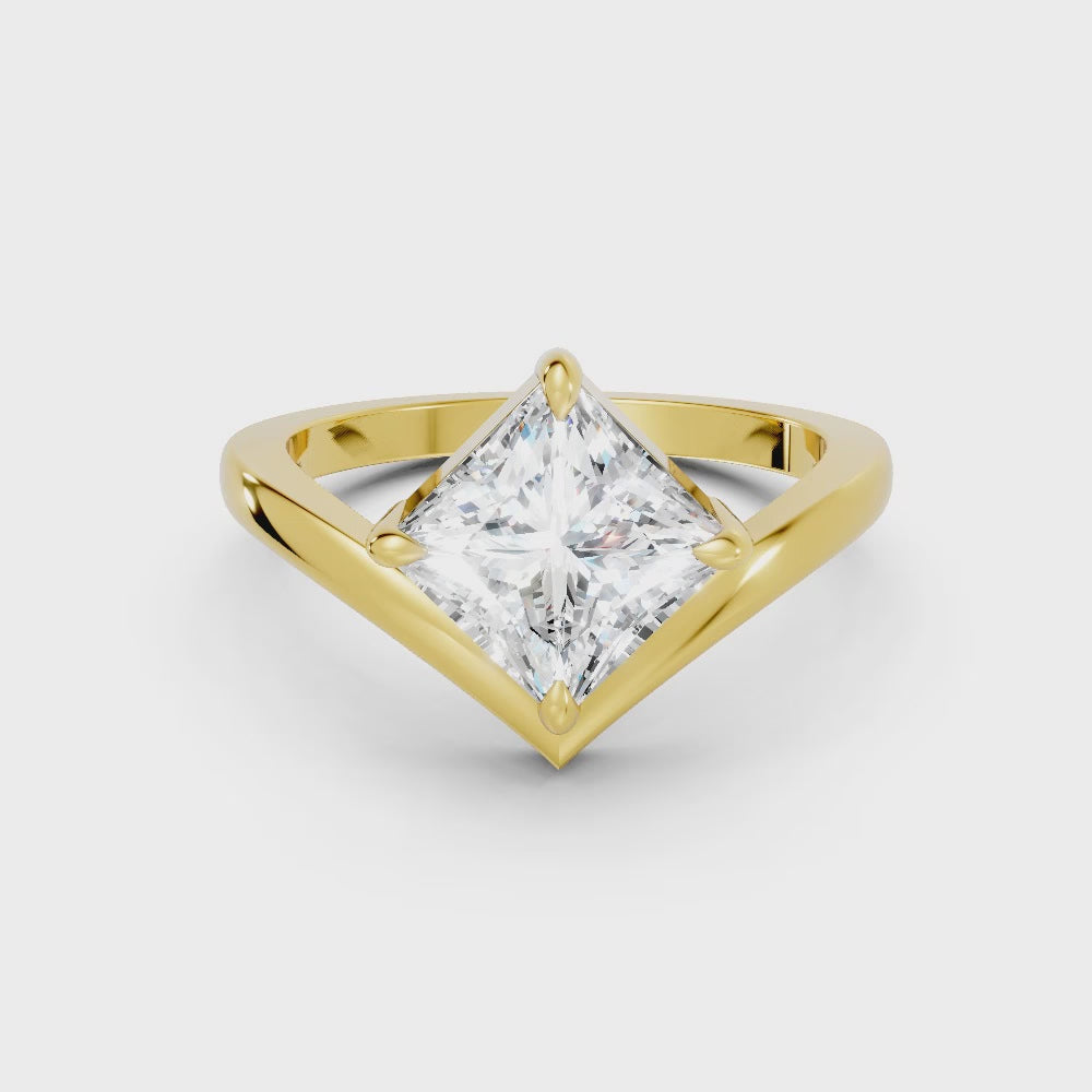 This engagement ring, crafted in solid 14k gold, showcases a dazzling princess cut lab-grown diamond in a refined V-shaped design. A modern classic that symbolizes brilliance, unity, and everlasting love.