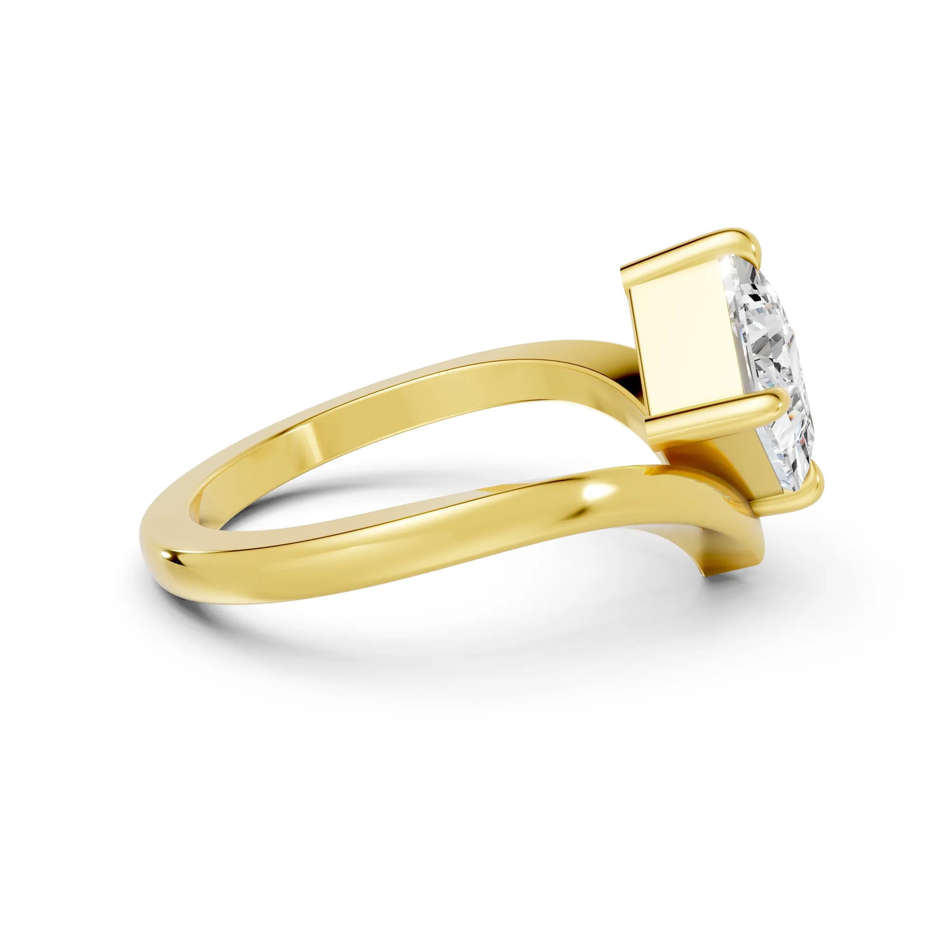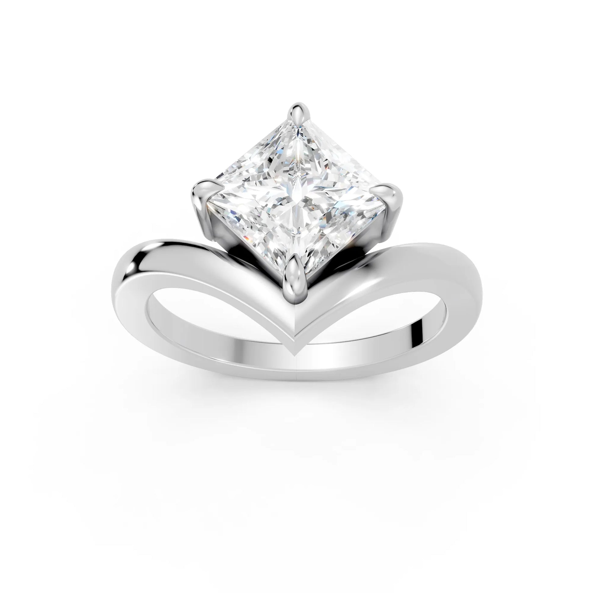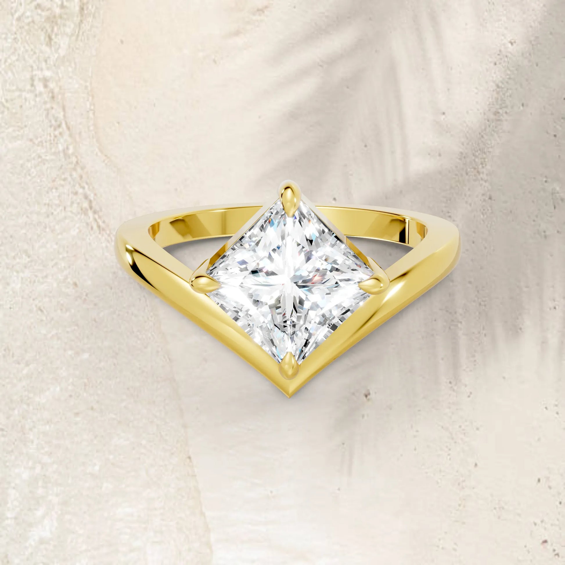 This engagement ring, crafted in solid 14k gold, showcases a dazzling princess cut lab-grown diamond in a refined V-shaped design. A modern classic that symbolizes brilliance, unity, and everlasting love.