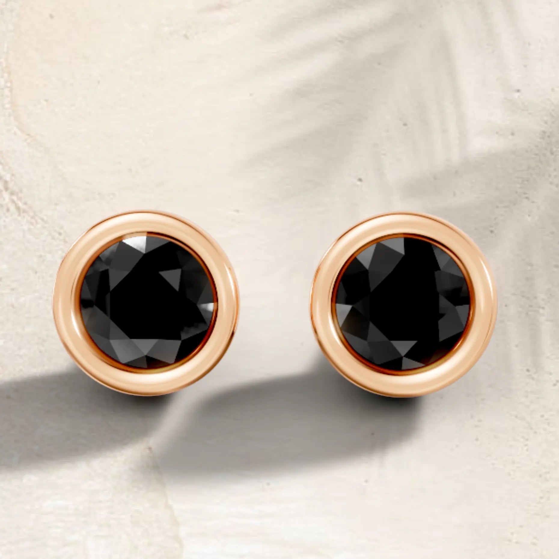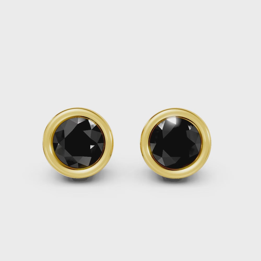 Crafted in solid 14k gold, this stud earring features a brilliant round cut natural black diamond secured in a sleek bezel setting. A versatile design that offers bold sparkle with a modern minimalist touch.