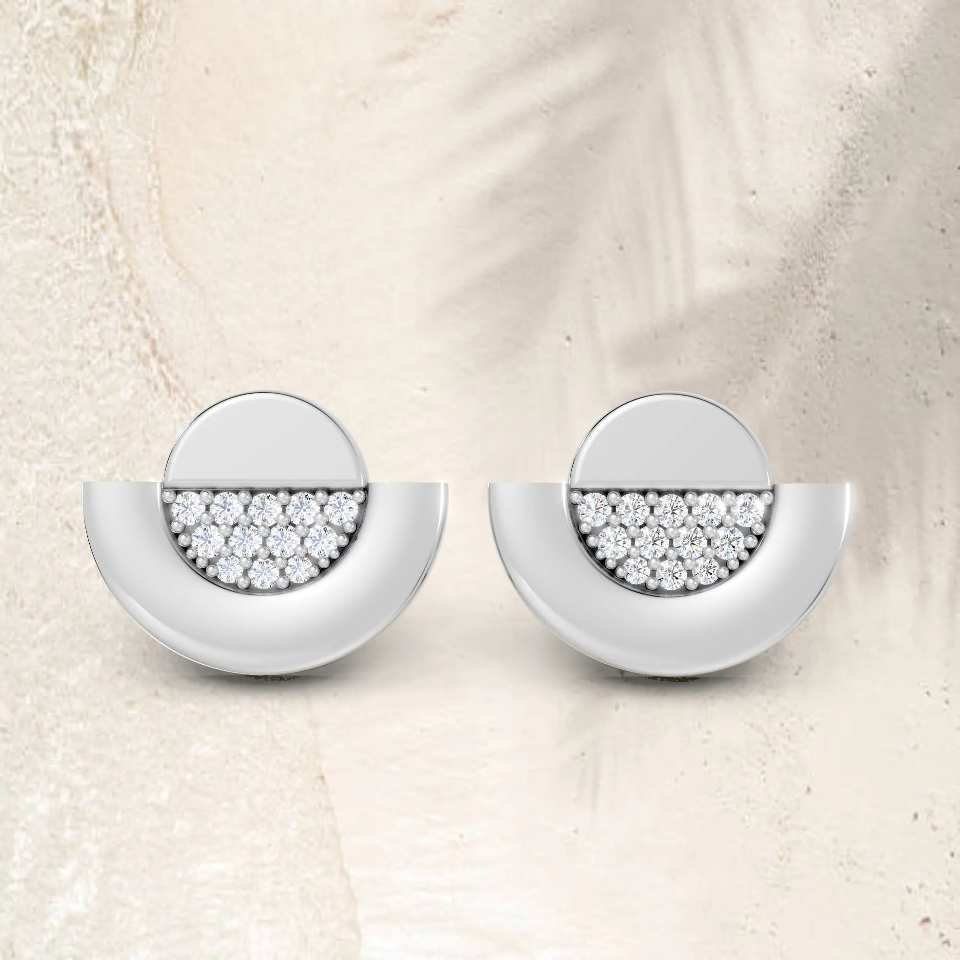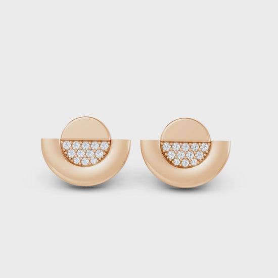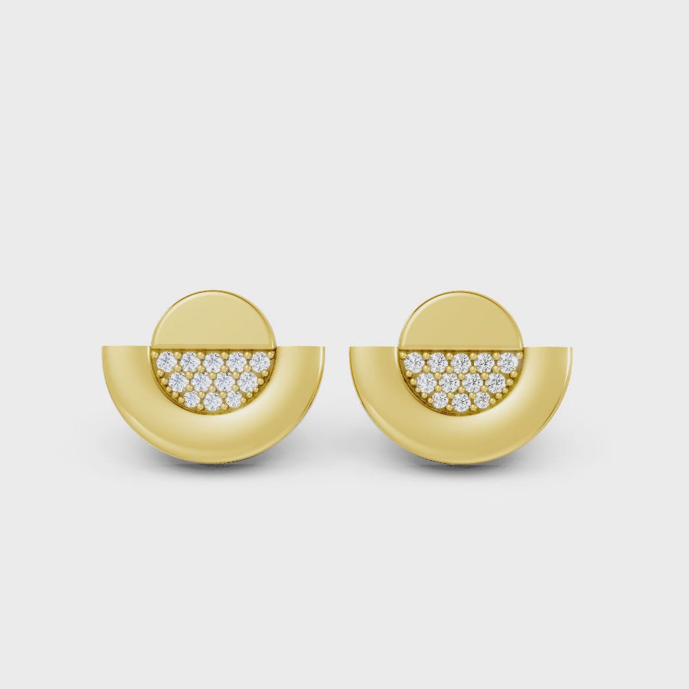 Crafted in solid 14k gold, this stud earring features a brilliant round cut lab-grown diamond framed by a sparkling half moon halo. A celestial-inspired piece that blends radiant sparkle with modern elegance.