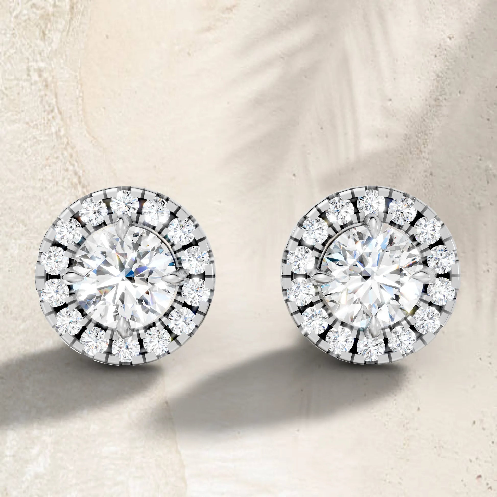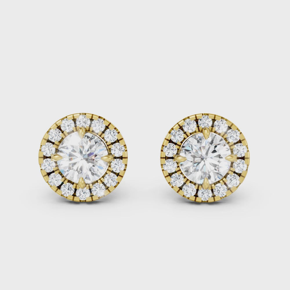 Crafted in solid 14k gold, this round cut lab-grown diamond stud is encircled by a radiant halo for maximum brilliance. A classic design that adds timeless sparkle to both everyday style and special occasions